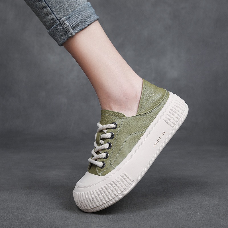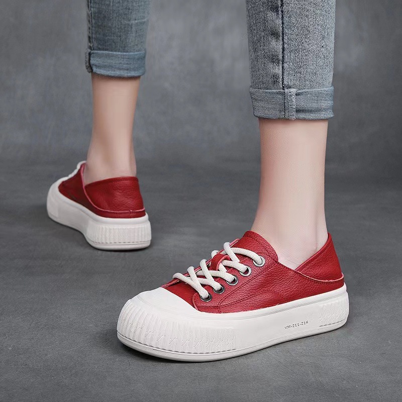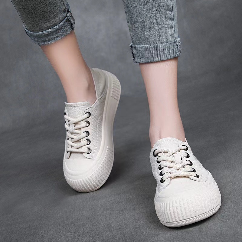 소가죽 2024 의 첫 번째 레이어는 편안한 경량 패션 스포츠 캐주얼 작은 흰색 여성 신발을 덮었습니다.스토어 가기