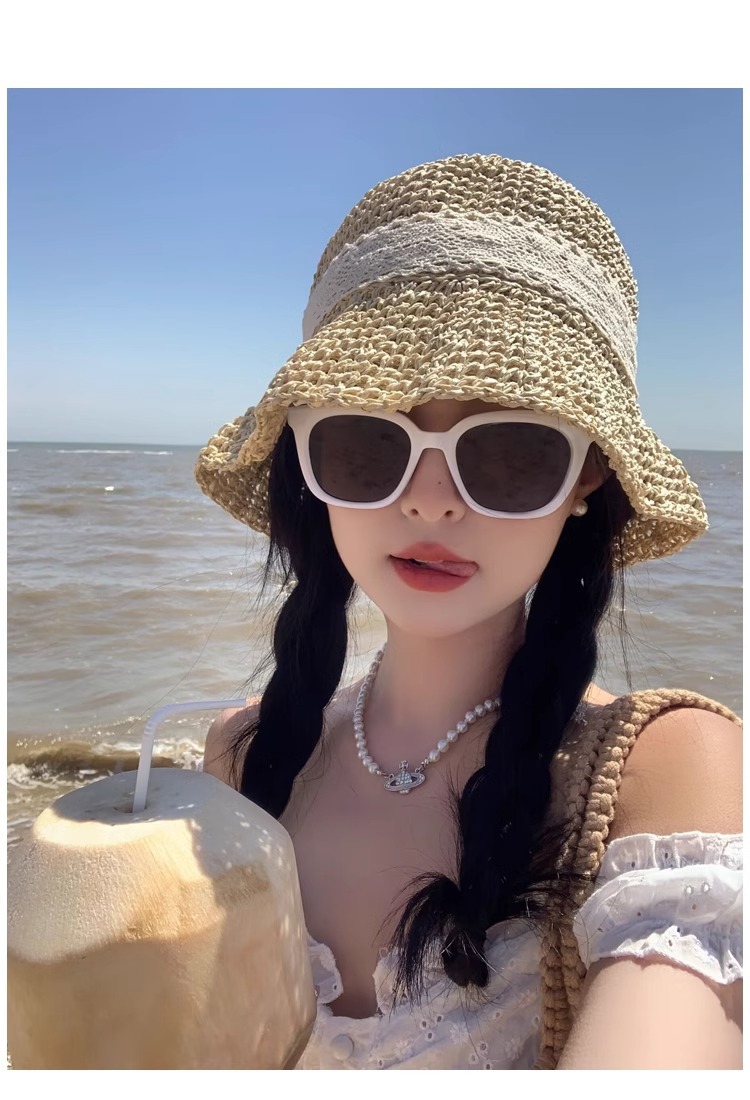 인터넷 축하 어부 밀짚 모자 여성 레이스 업 비치 신선한 스타일 휴일 여름 일본 선 스크린 태양 모자스토어 가기