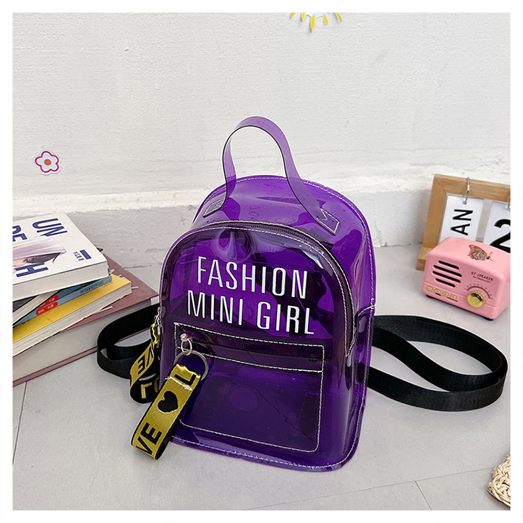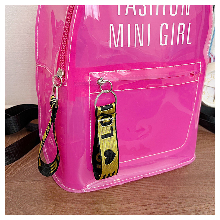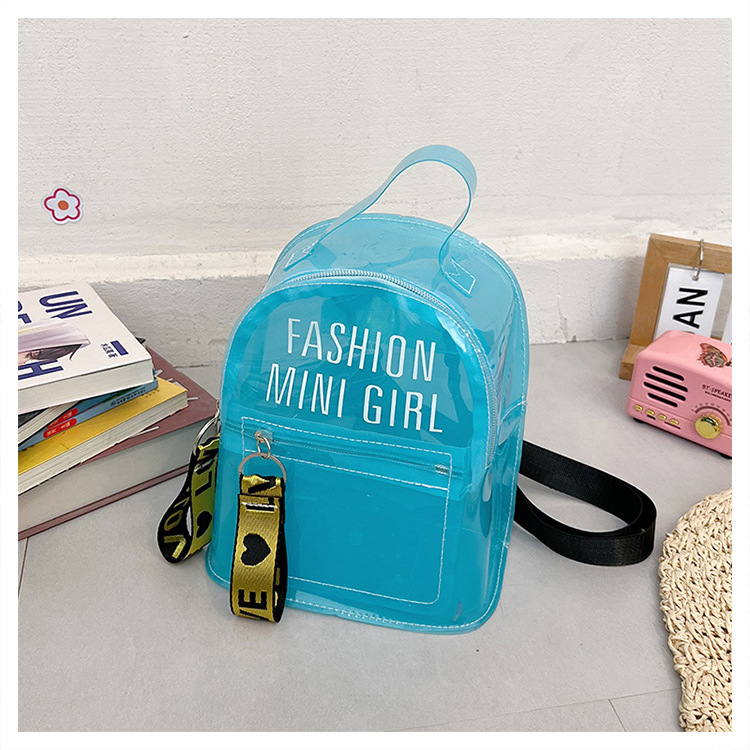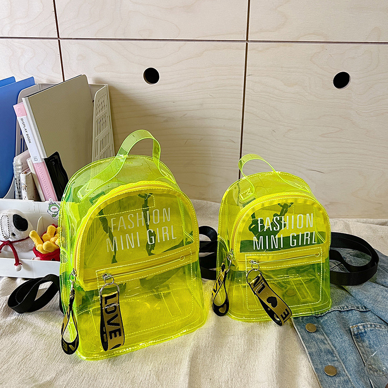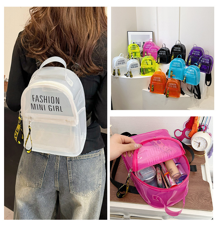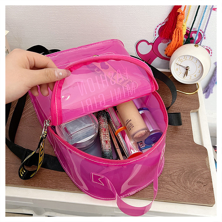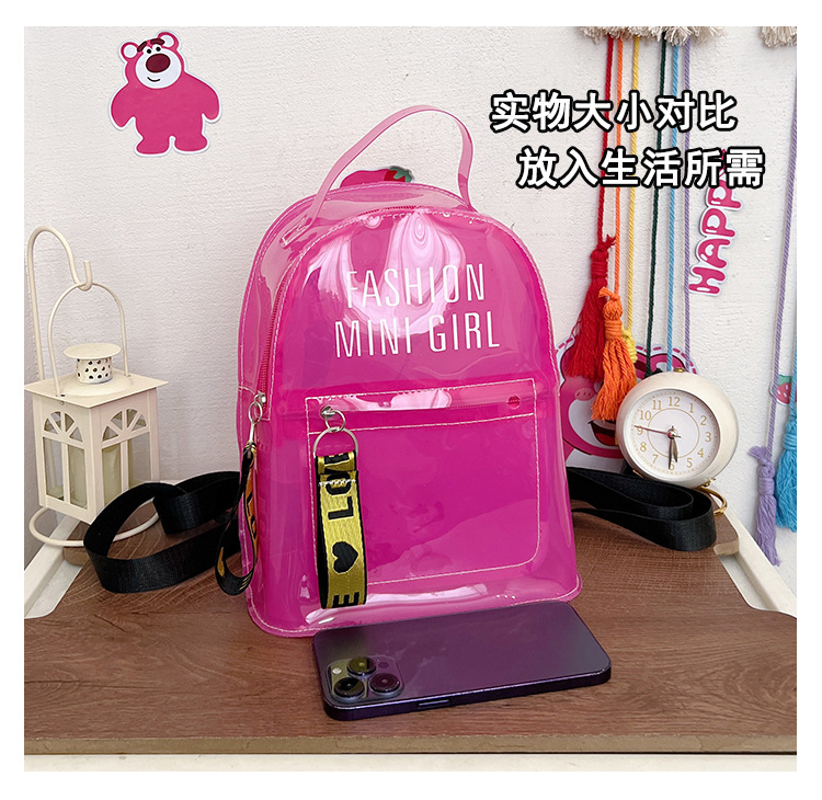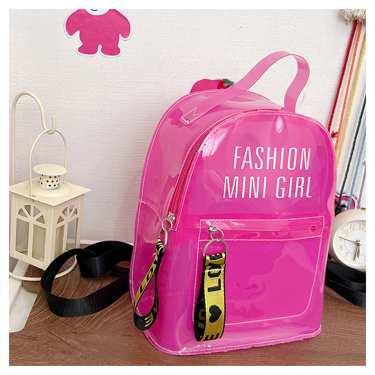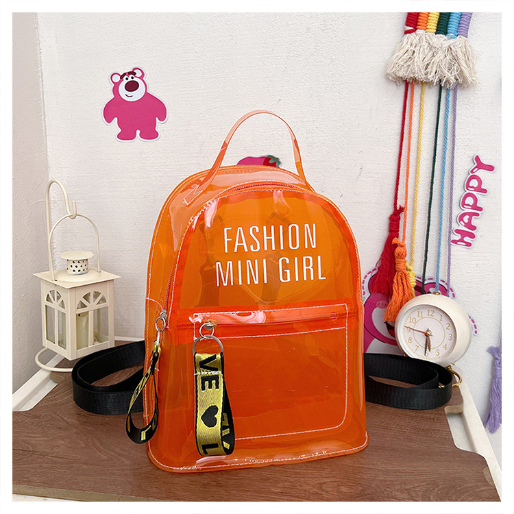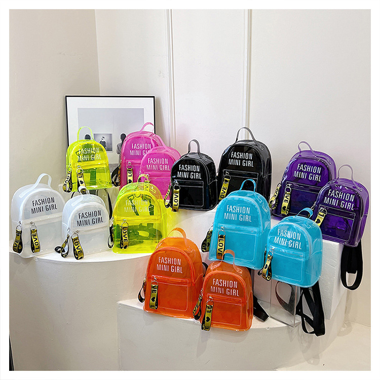 인쇄 된 로고 어린이 젤리 투명 pvc 배낭 여성 가방 미니 배낭 한국 유행 학생 책가방
