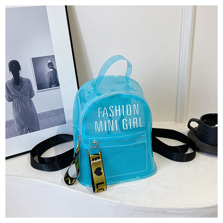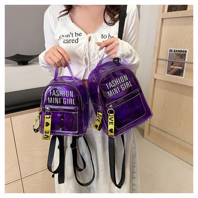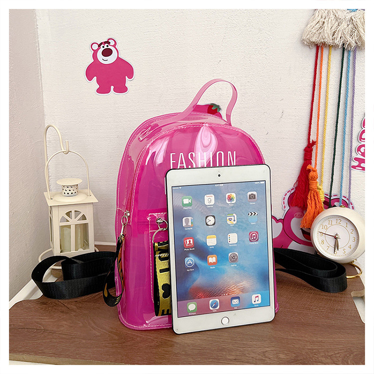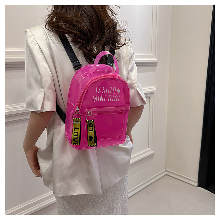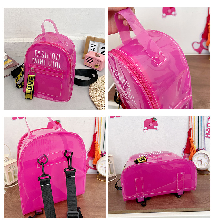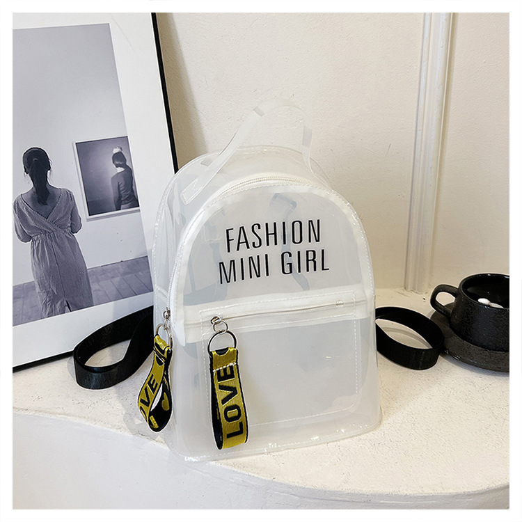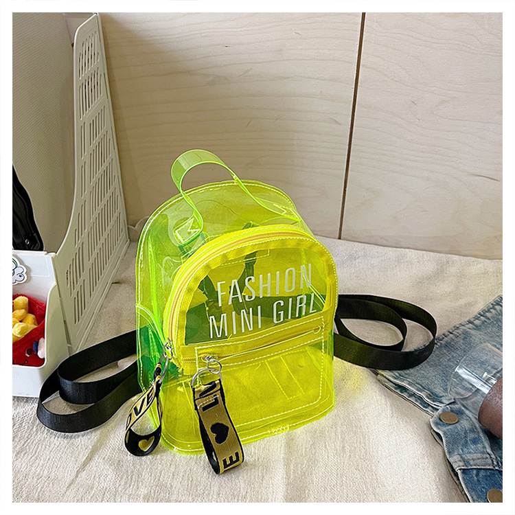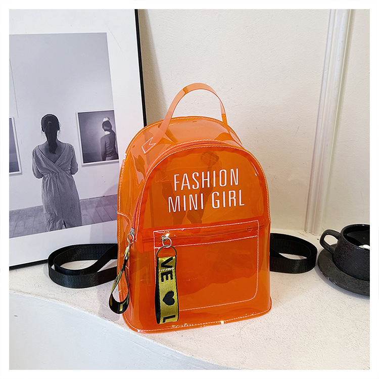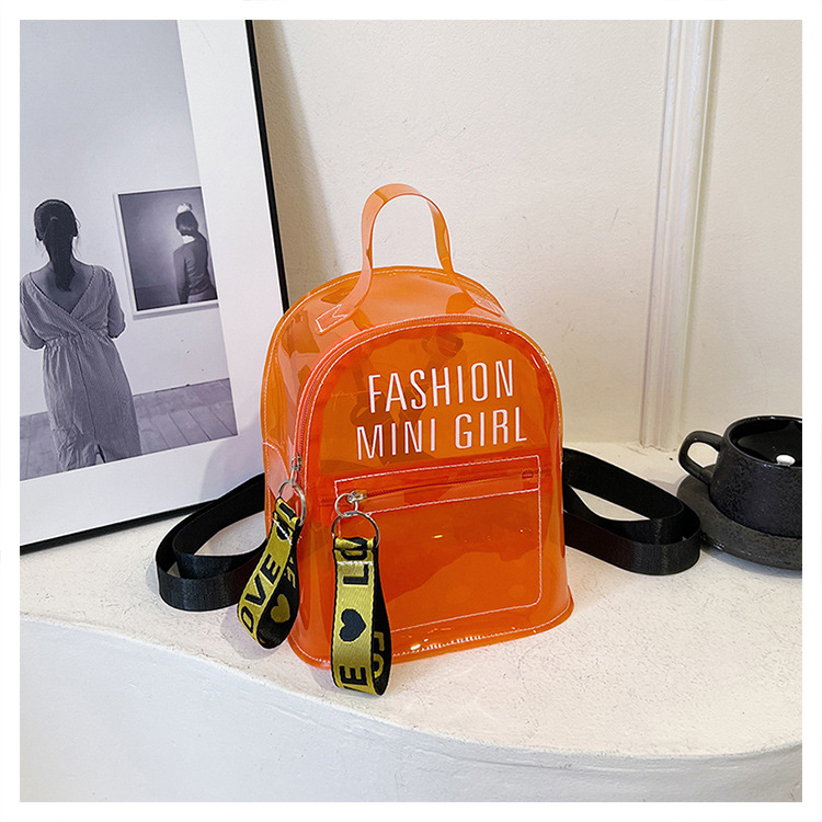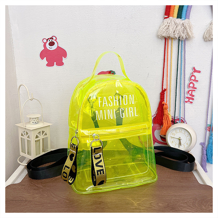 인쇄 된 로고 어린이 젤리 투명 pvc 배낭 여성 가방 미니 배낭 한국 유행 학생 책가방