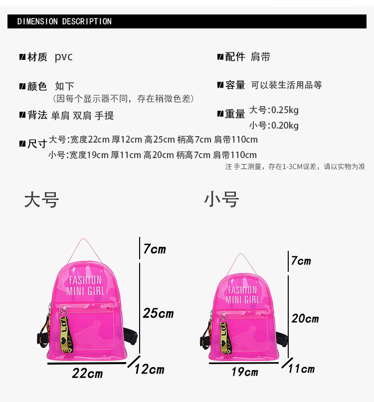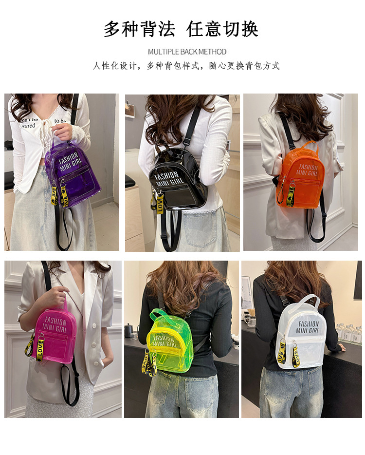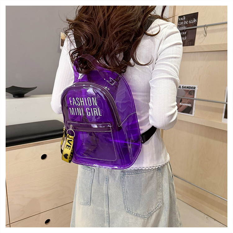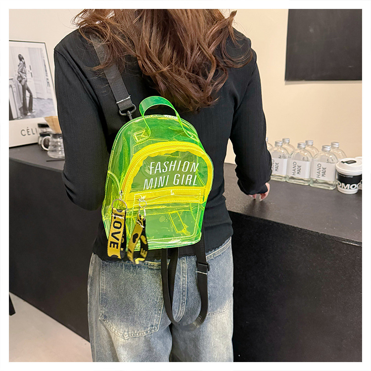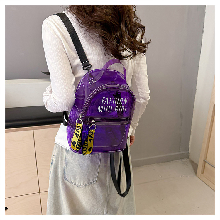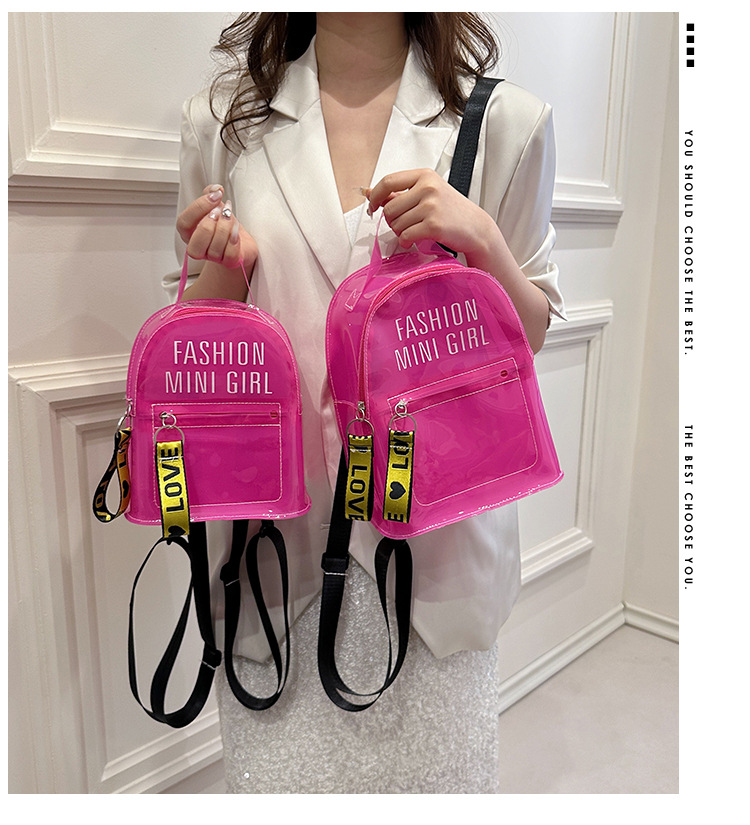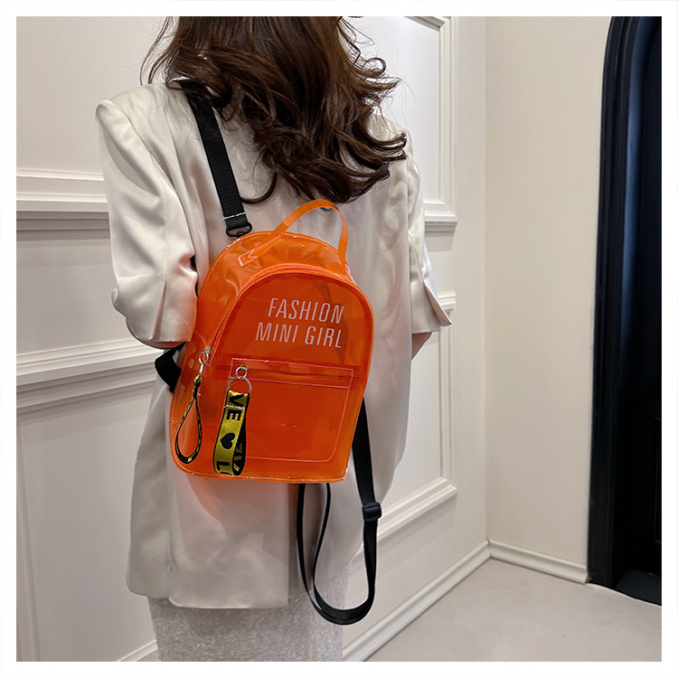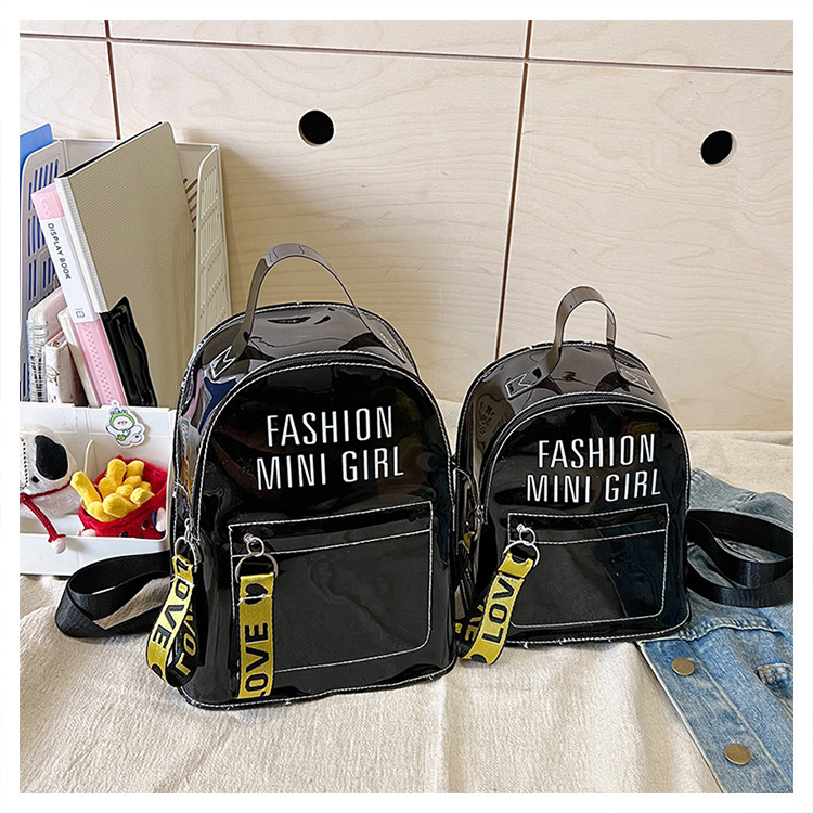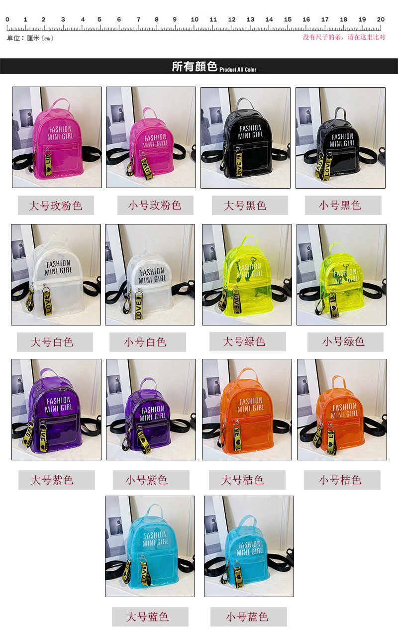 인쇄 된 로고 어린이 젤리 투명 pvc 배낭 여성 가방 미니 배낭 한국 유행 학생 책가방