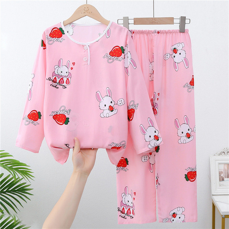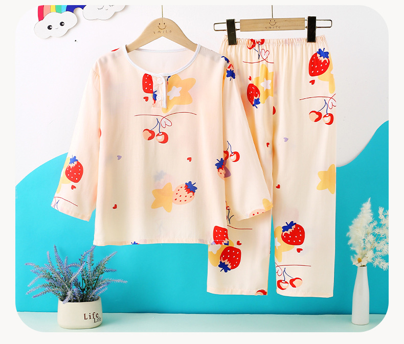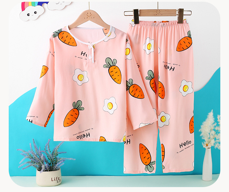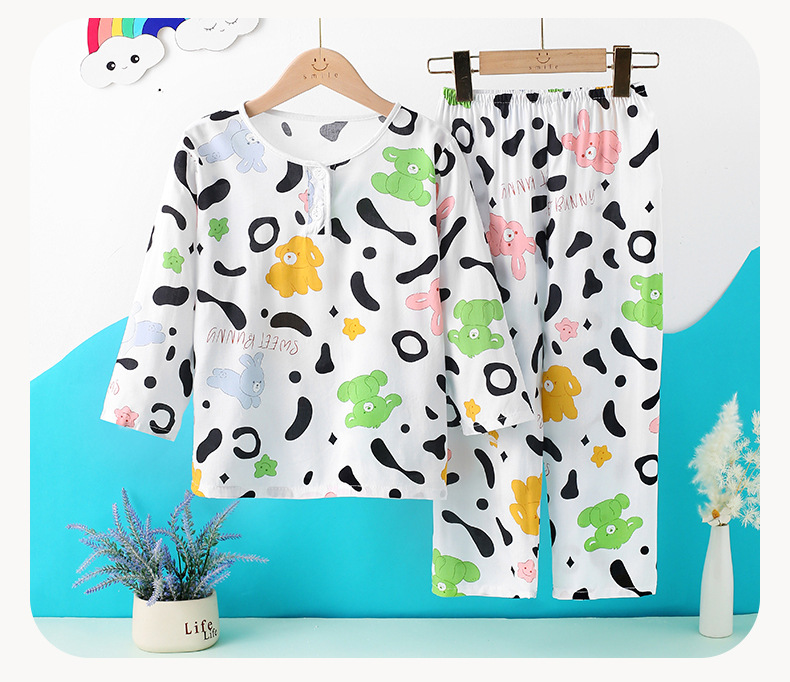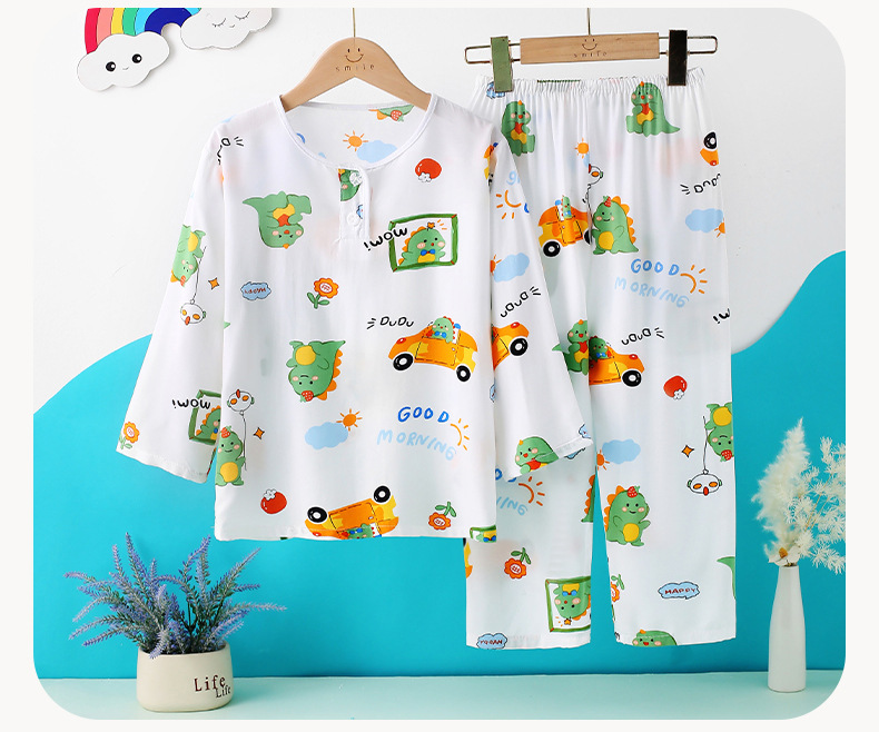 소년 소녀를위한 어린이 면 실크 잠옷 여름 소녀 얇은 소년 인공 면 어린이 아기 에어컨 홈 옷