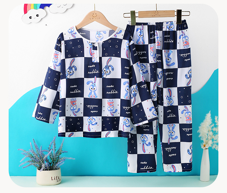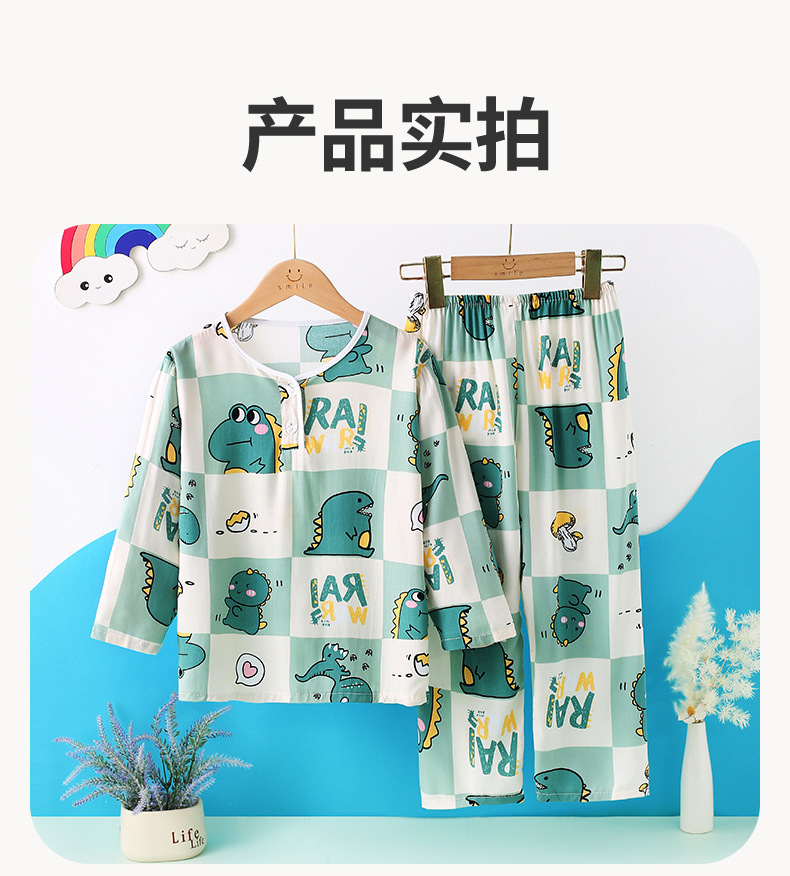 소년 소녀를위한 어린이 면 실크 잠옷 여름 소녀 얇은 소년 인공 면 어린이 아기 에어컨 홈 옷스토어 가기