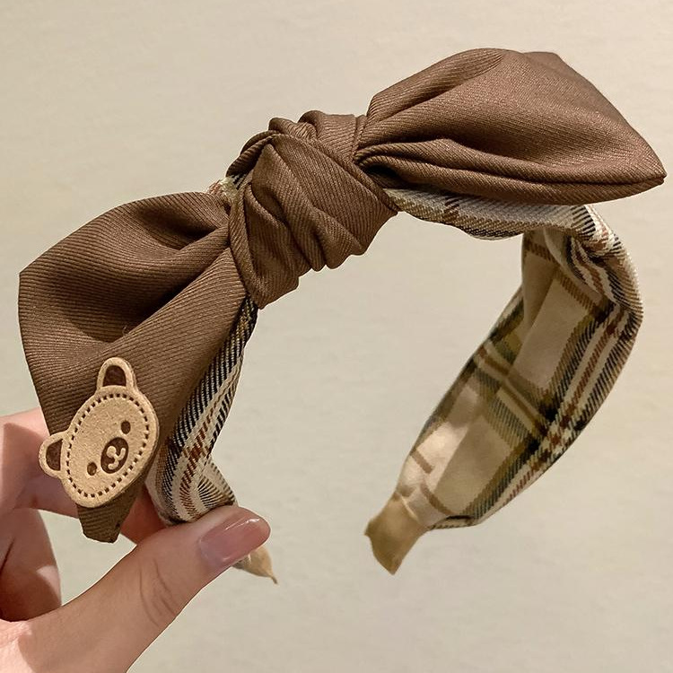 카키 여성 하이 크랜얼 탑 슈퍼 페어리 레트로 헤어 베어 헤어 밴드 카드 헤드웨어 프렌치 보우 모리 스타일 머리띠 헤어 액세서리