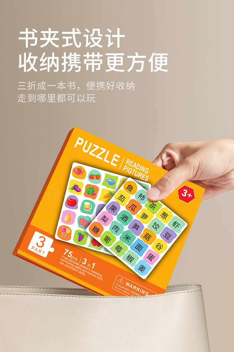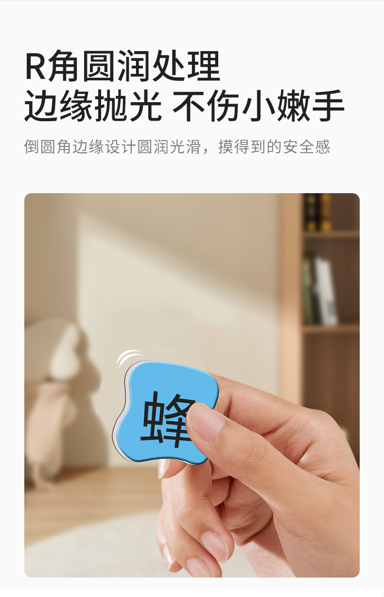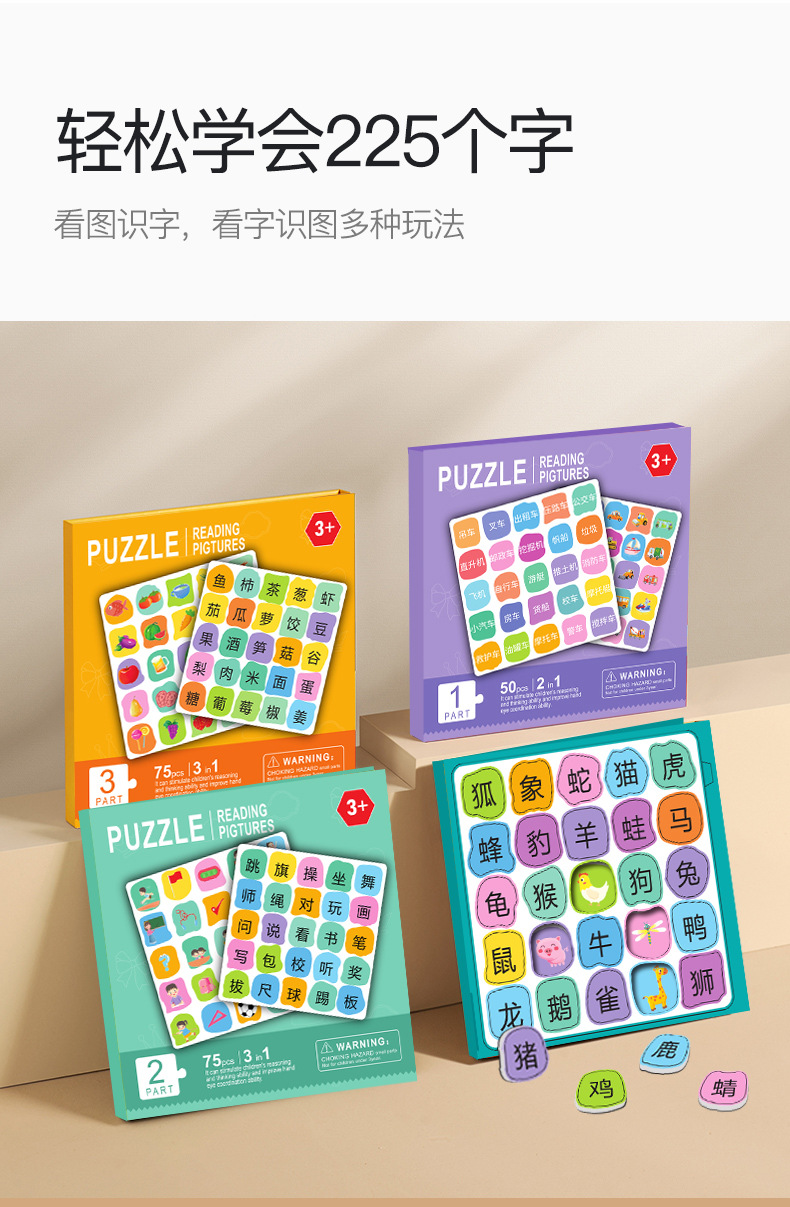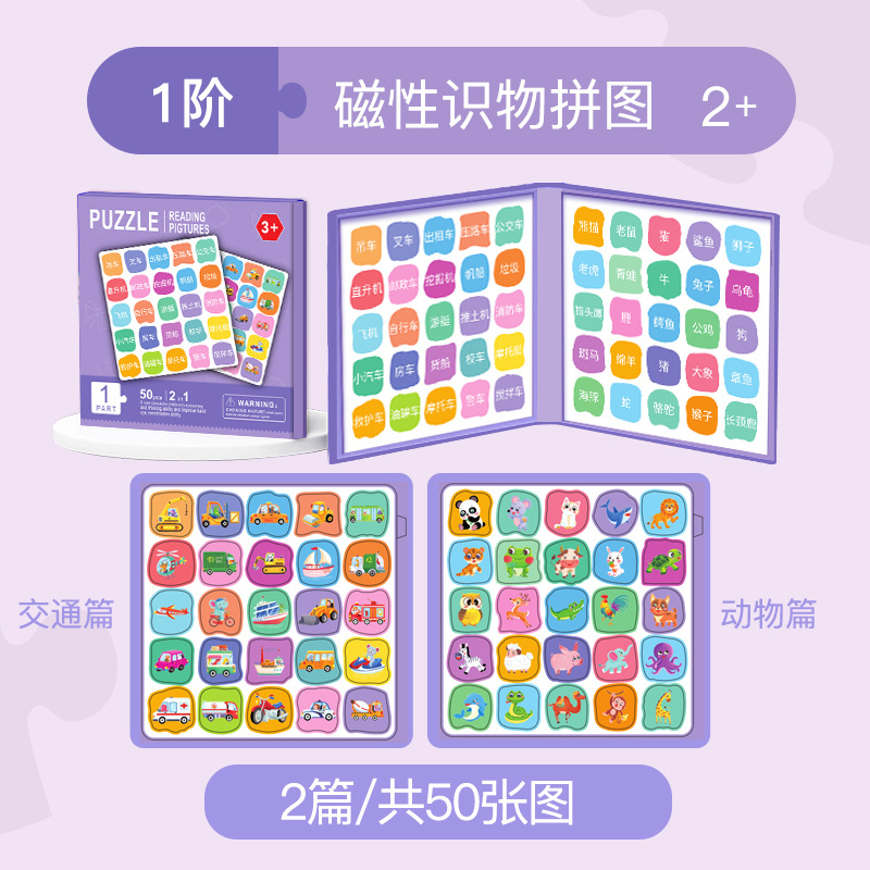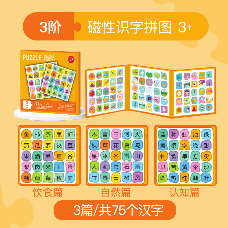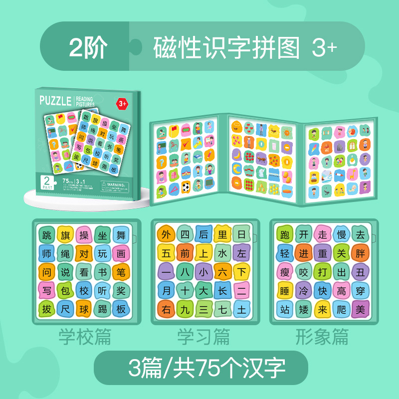 特别提醒:本厂产品激光切割,光滑无毛刺,非常贴合不易开裂,磁性强,放心玩,全套275个常用字体,看图识字,是一款让孩子爱上识字的磁性拼图书。