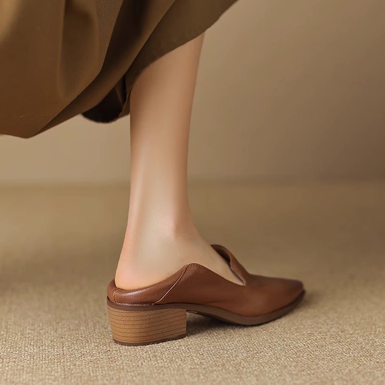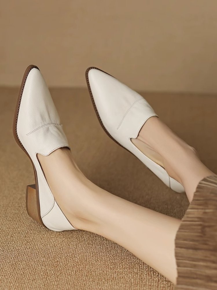 하이힐 2025 봄 신상 여성화 뾰족코 굵은 굽 중간 굽 패션화 얕은 굽 단화 로우컷 슈즈 가죽 신발스토어 가기