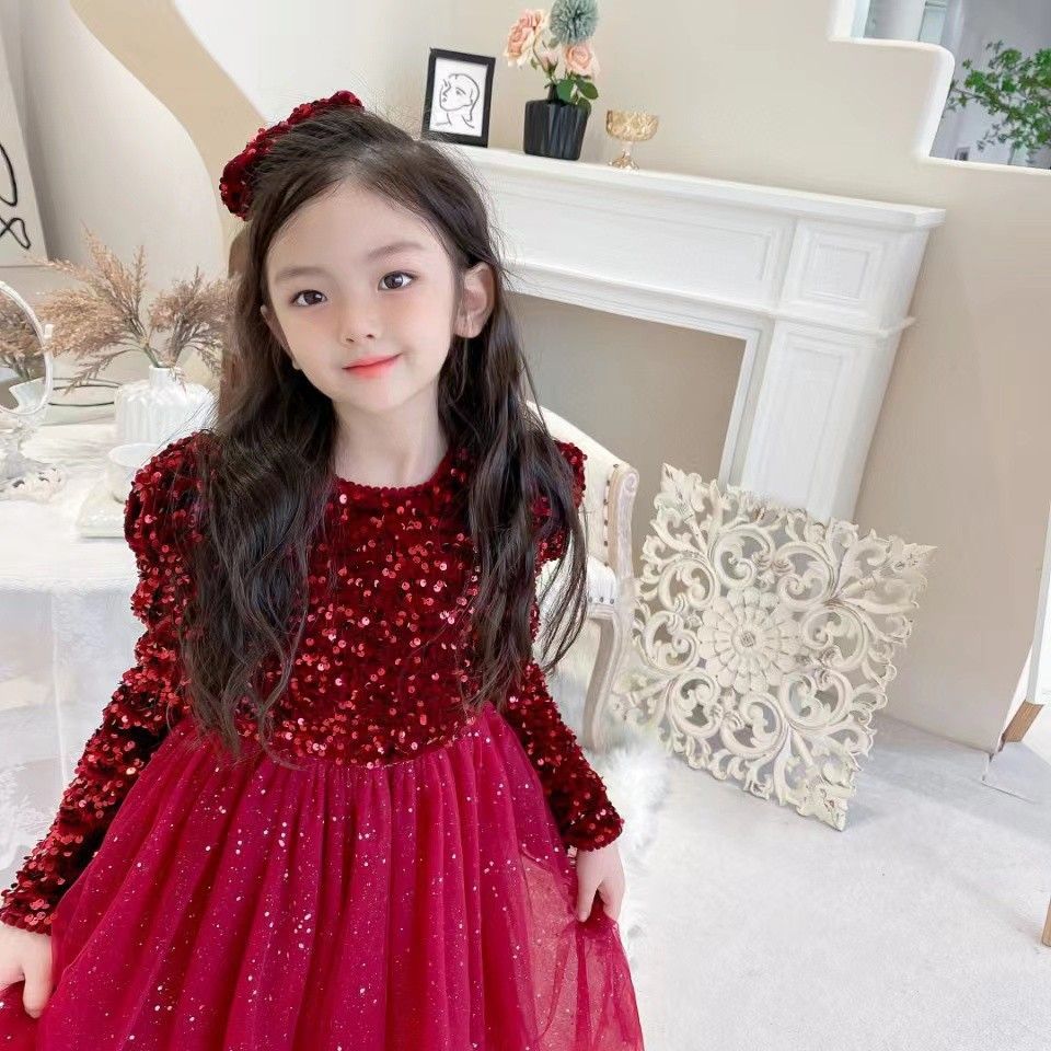 2024 봄과 가을 새 여아 Sequins 공주 원피스 세련된 생일 크리스마스 원피스 어린 소녀의 새해 원피스스토어 가기