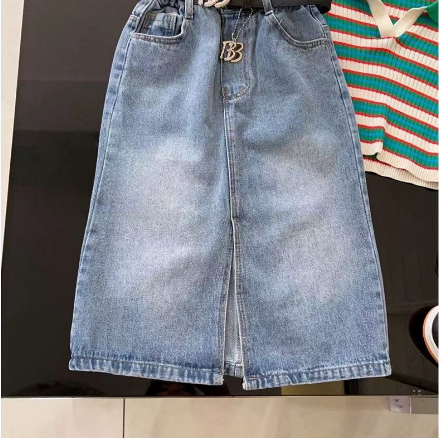아동복 2025 신착 여아 패션 한국식 슬릿 데님 스커트 아동 스커트 인기 귀여운 기능