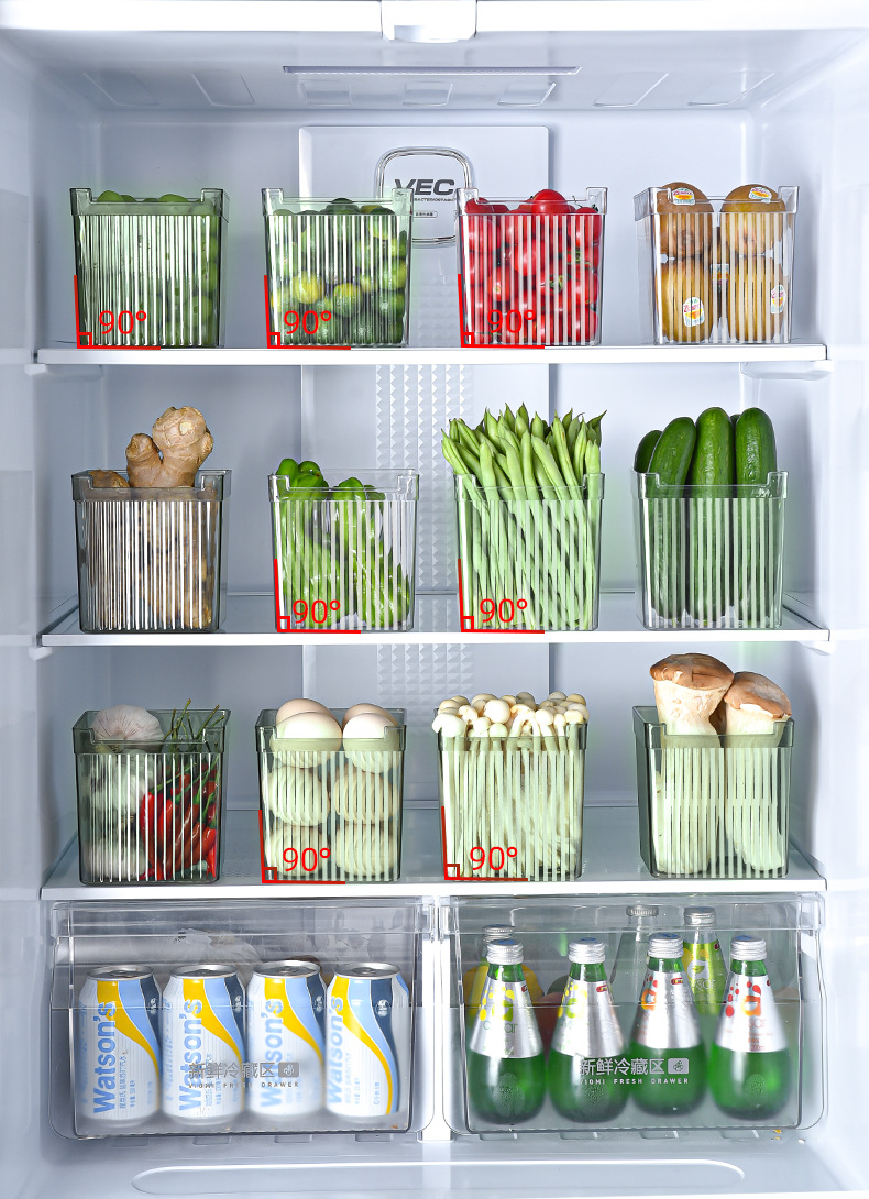 냉장고 옆 문 광장 저장 상자 주방 투명한 애완 동물 신선한 보관 상자 저장 과일 및 야채 상자