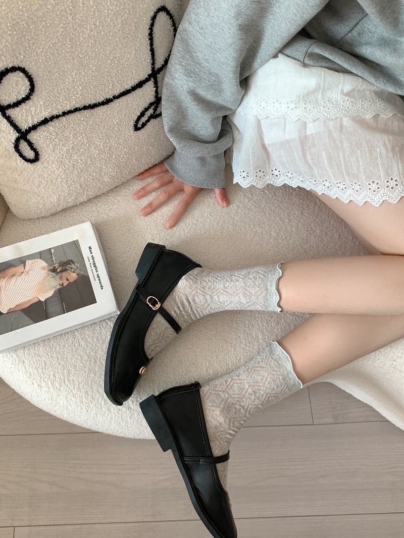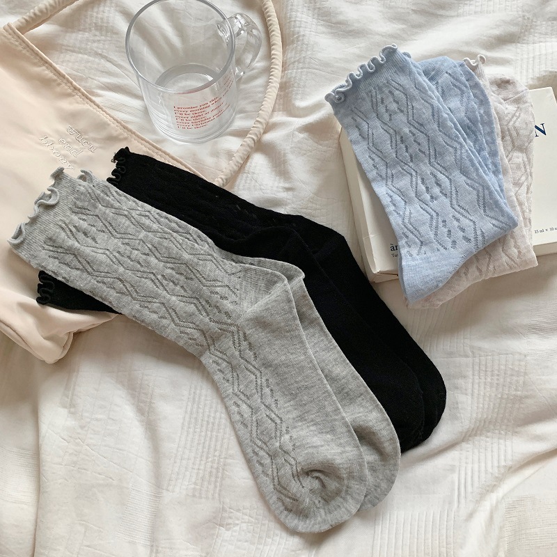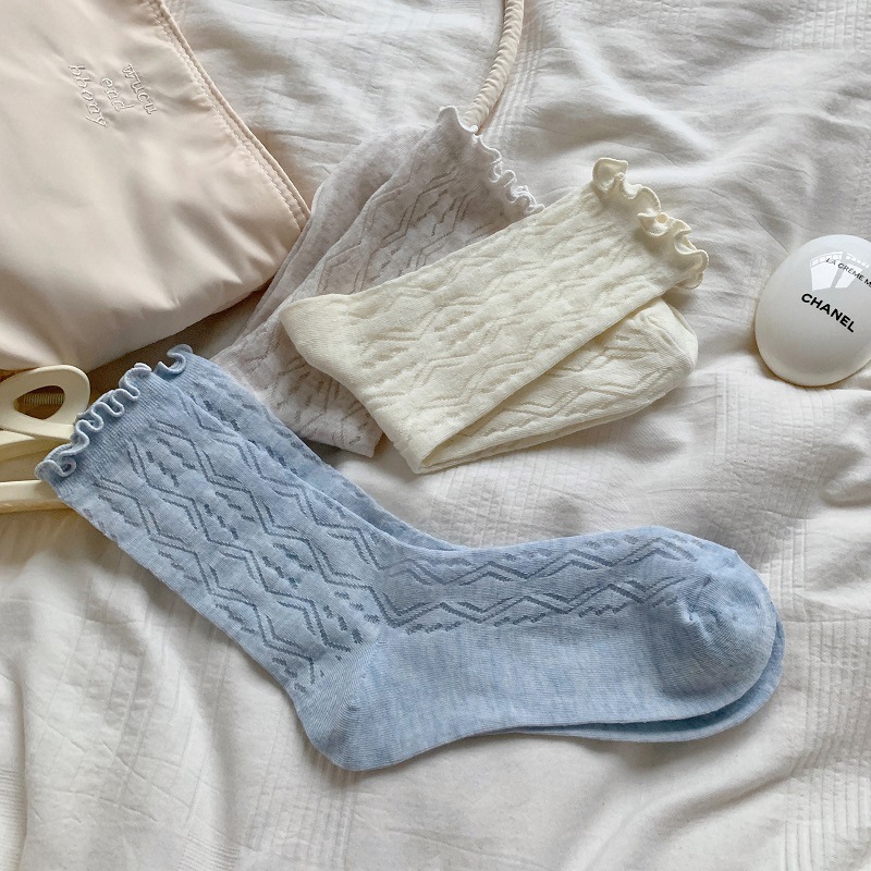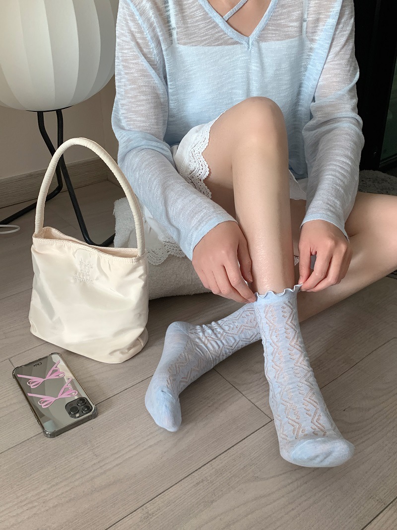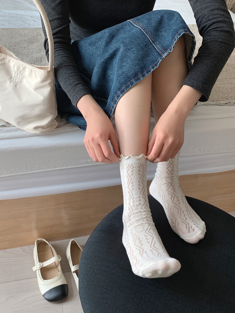 단색 일본 달콤한 나무 귀 양말 여성의 봄과 여름 얇은 통기성 레이스 Jk 힙 미드 튜브 양말 로리타스토어 가기