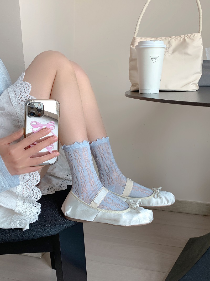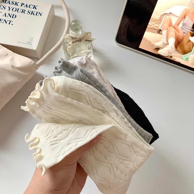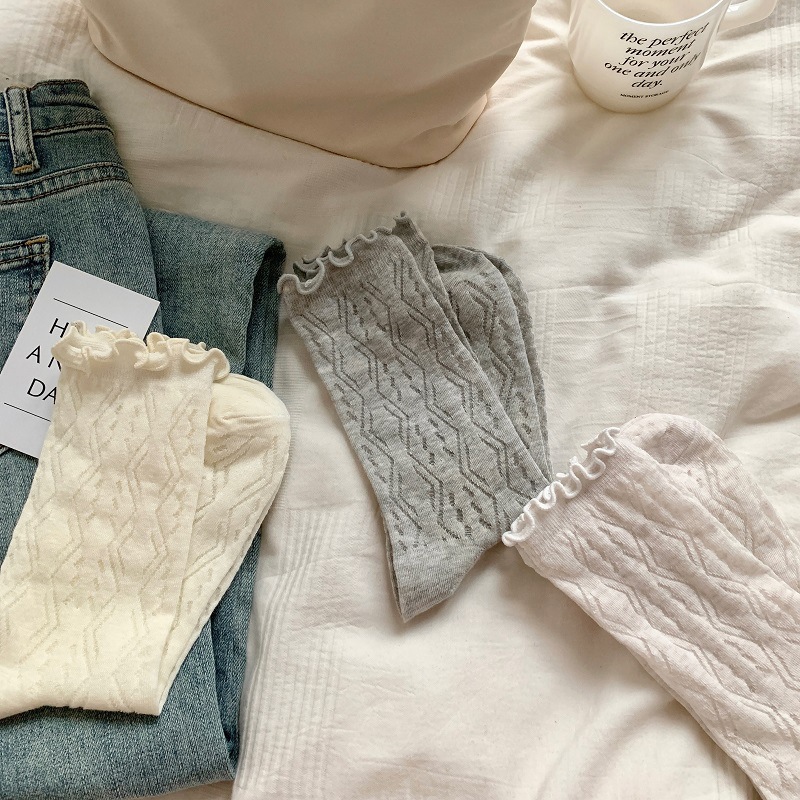 단색 일본 달콤한 나무 귀 양말 여성의 봄과 여름 얇은 통기성 레이스 Jk 힙 미드 튜브 양말 로리타