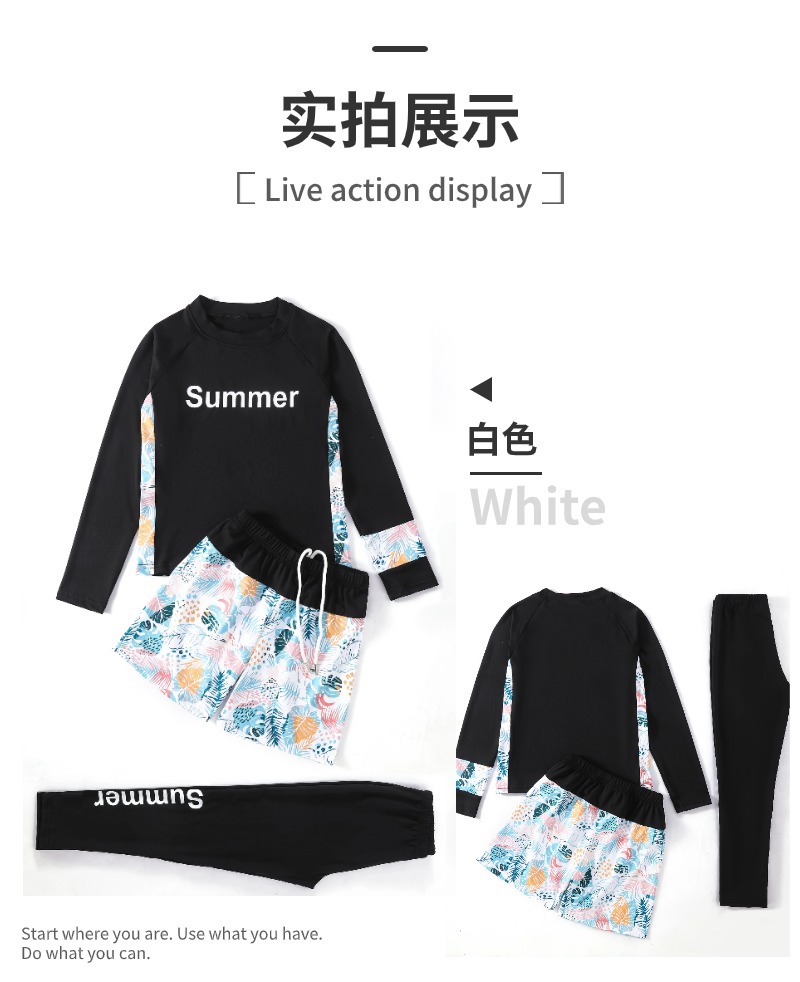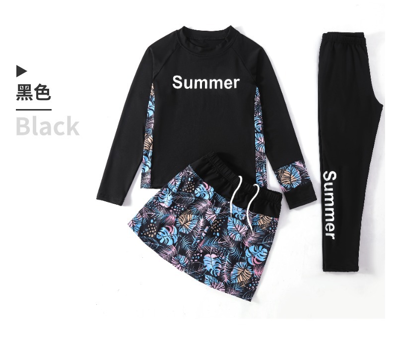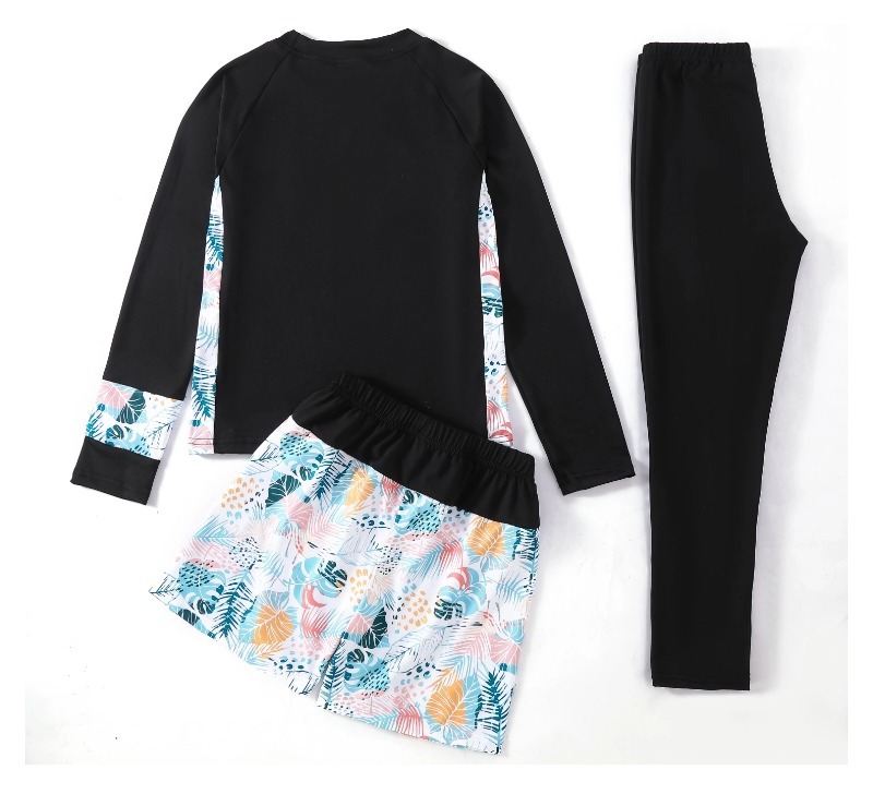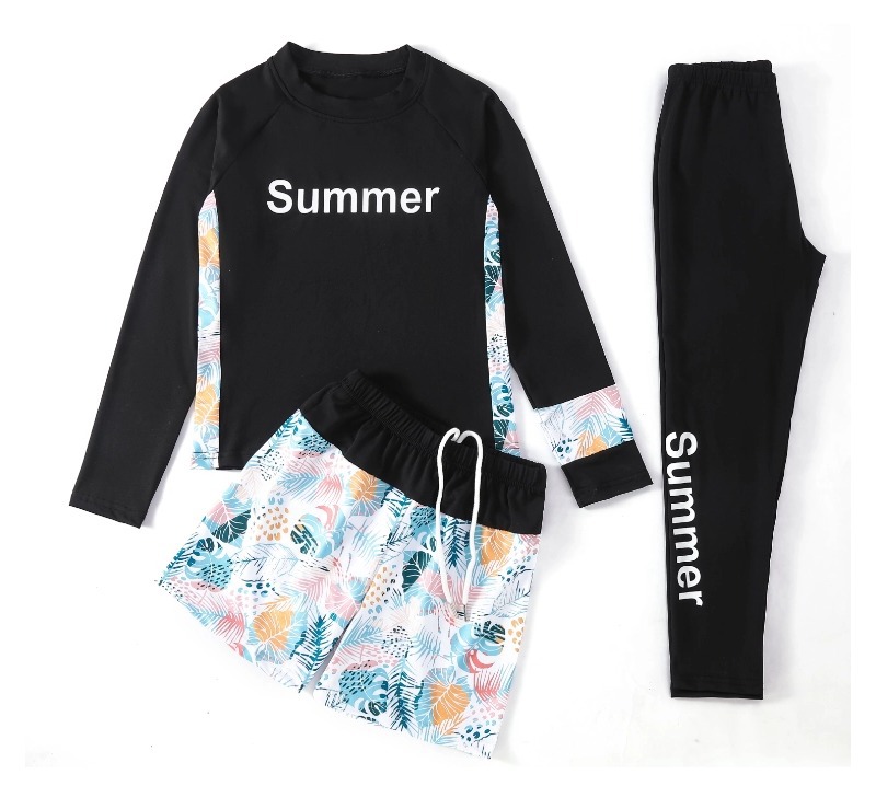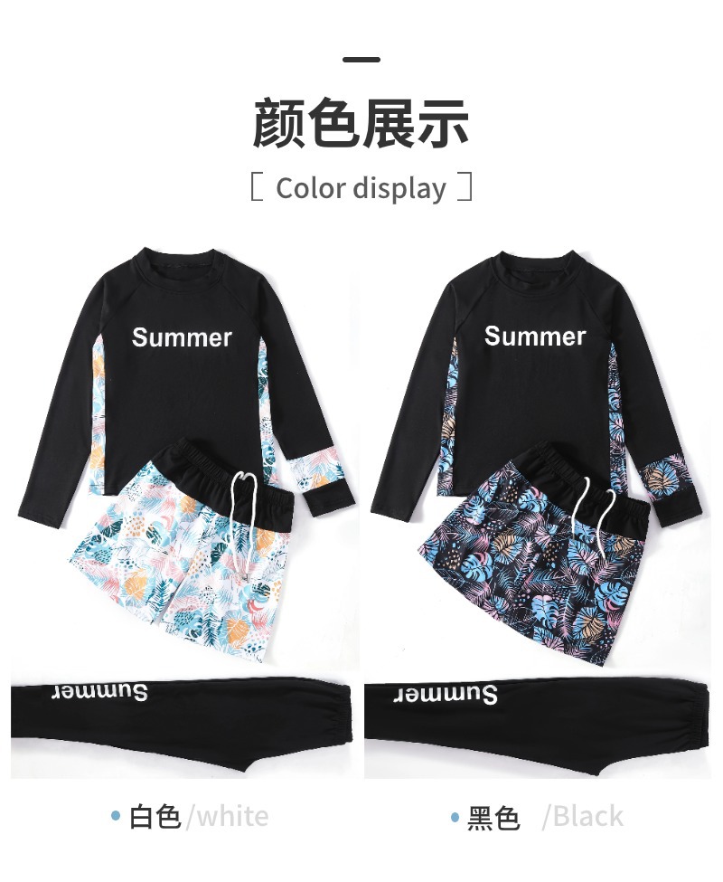 어린이 새로운 소형, 중 및 대형 어린이 긴팔 트렁크 수영복 여성 및 남성 학생을위한 썬 스크린 분할 수영복 여름용 온천 3 피스 세트