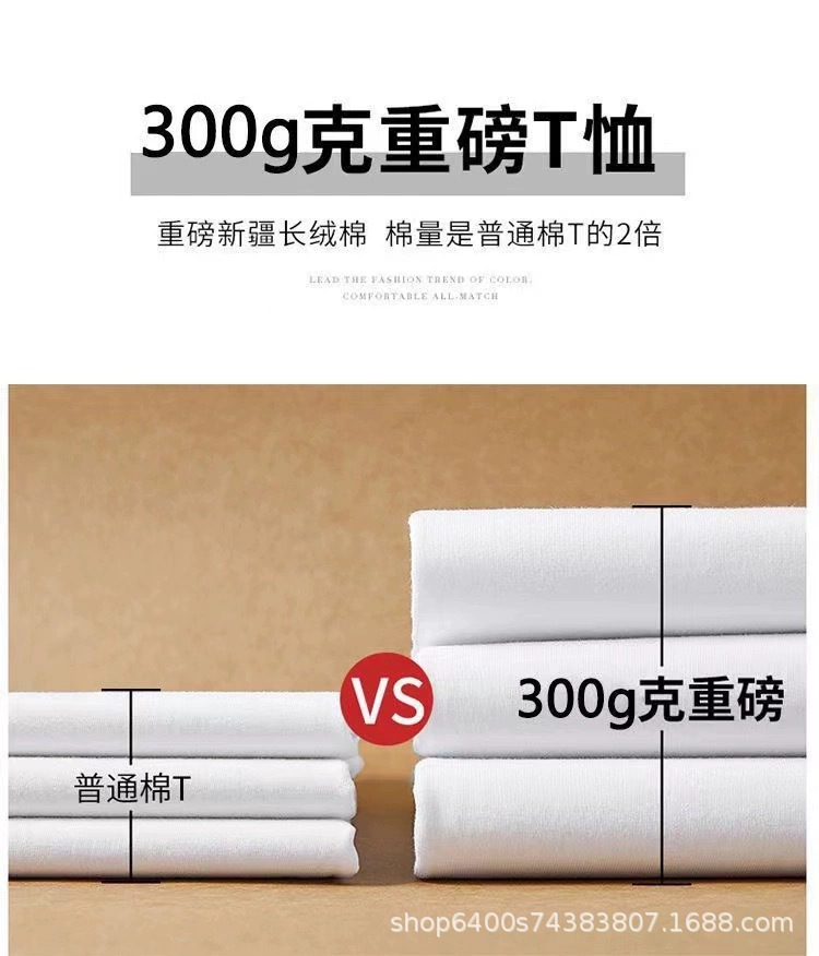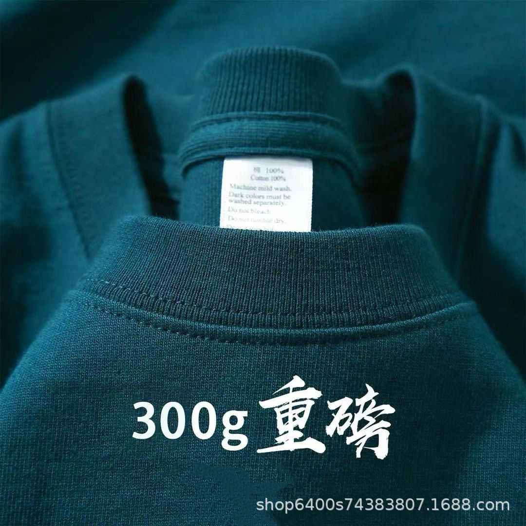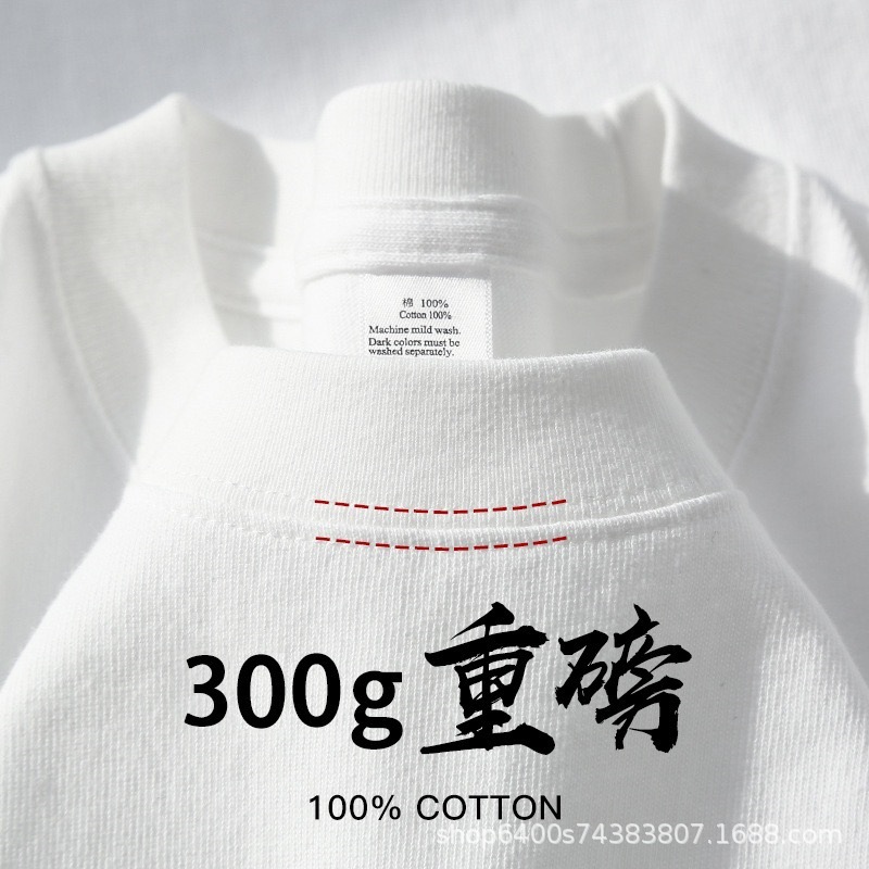 신장 면 300 무거운 무게 순수한 흰색 티셔츠 반팔 남성과 여성 단색 느슨한 대형 캐주얼베이스 셔츠 탑 여름스토어 가기