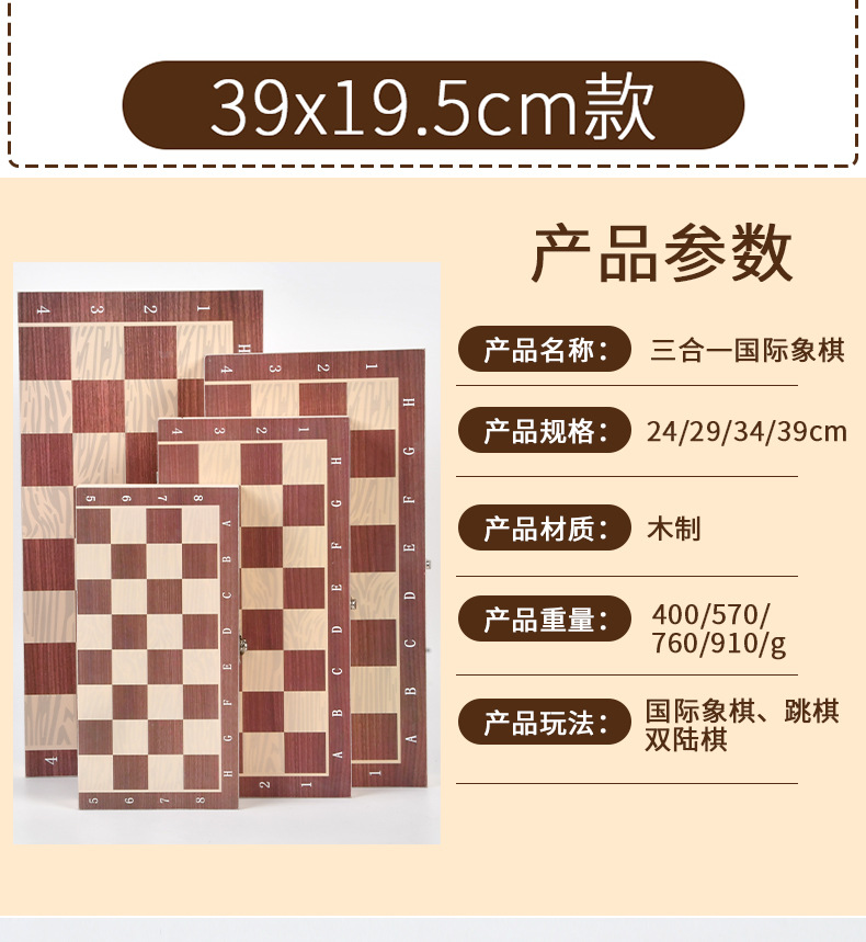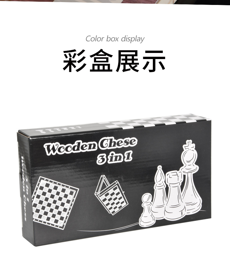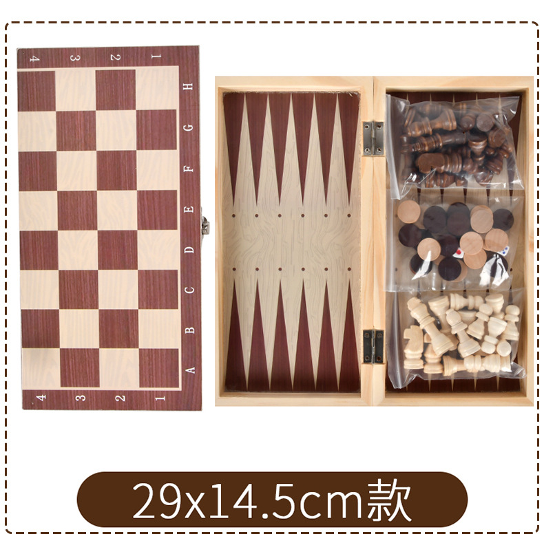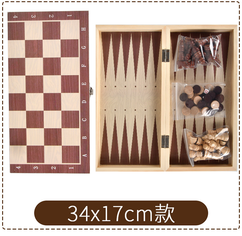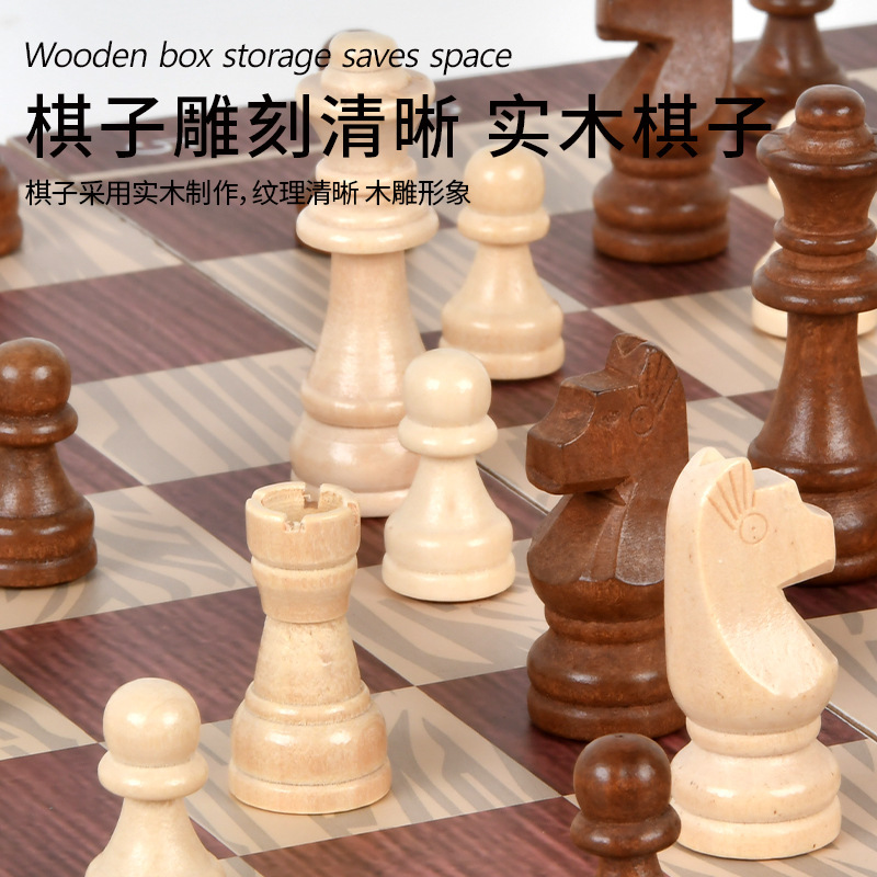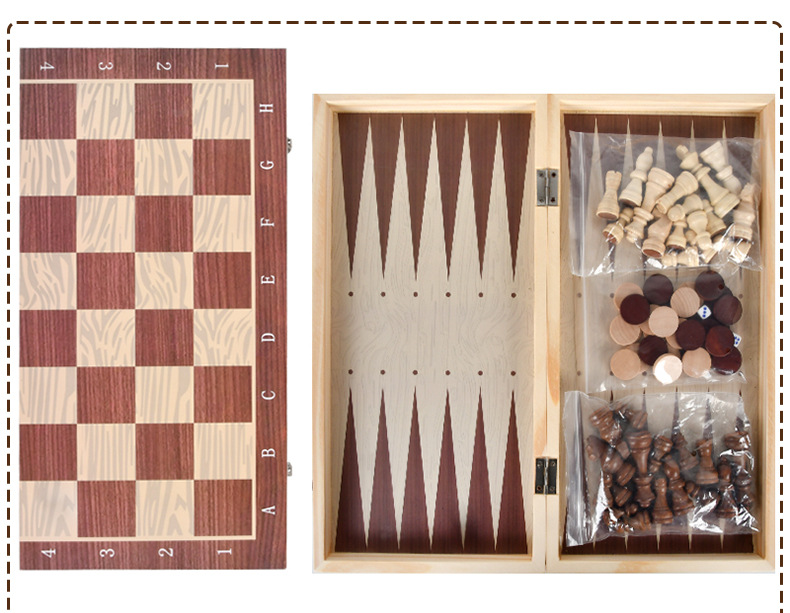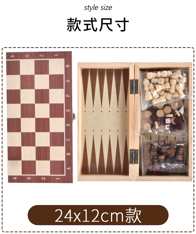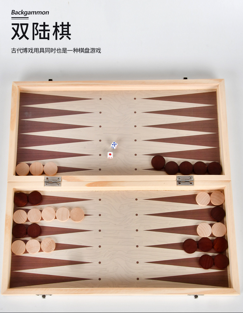 나무 체스 주사위 놀이 체커 3 대 1 휴대용 접이식 나무 상자 국경 세트