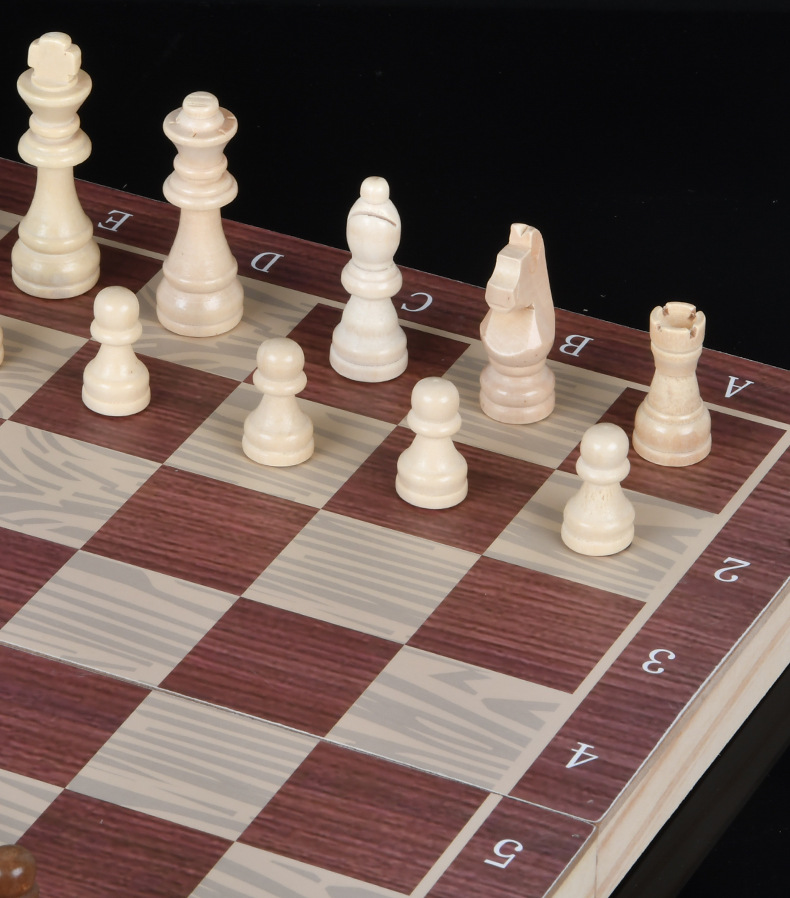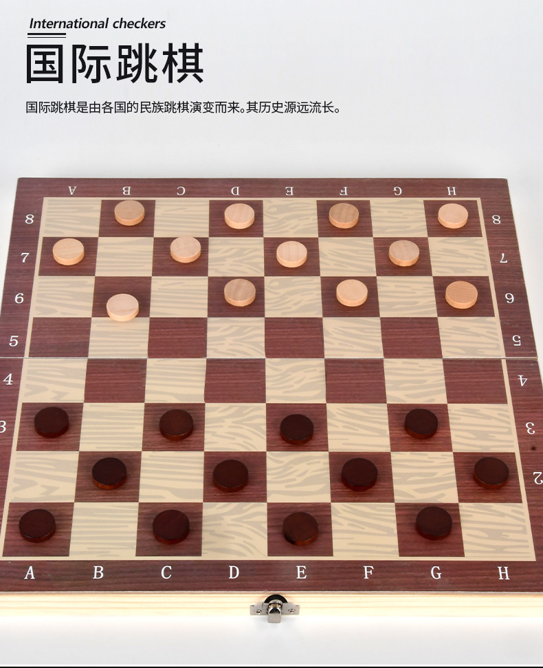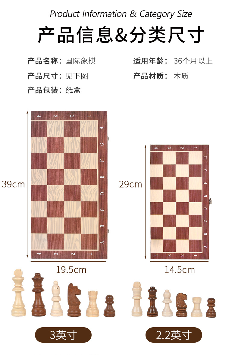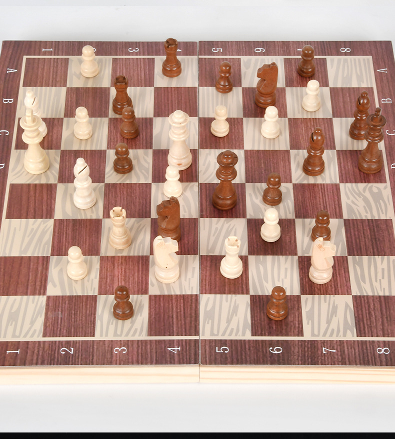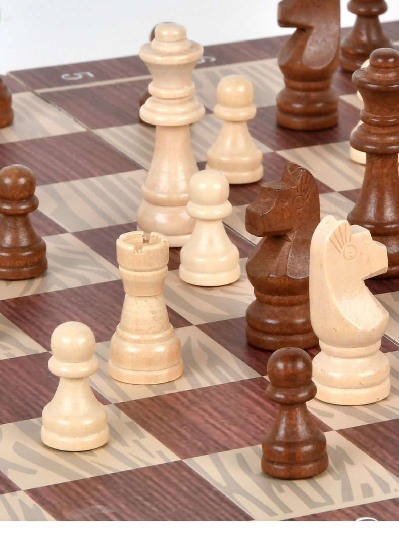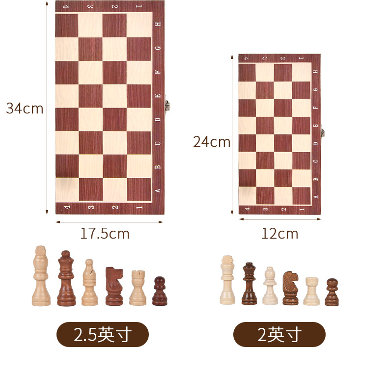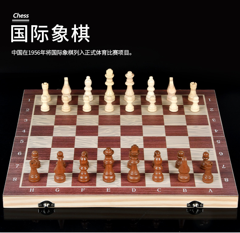 나무 체스 주사위 놀이 체커 3 대 1 휴대용 접이식 나무 상자 국경 세트