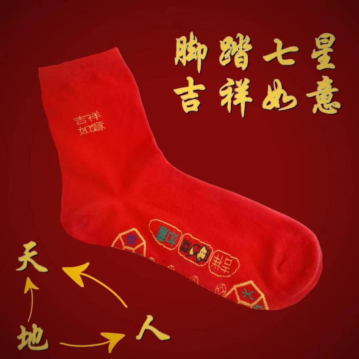 Tieru Bird's Foot Seven Star Socks 출생 축제 붉은 땀 흡수 탈취제 두꺼운 미드 튜브 양말 커플