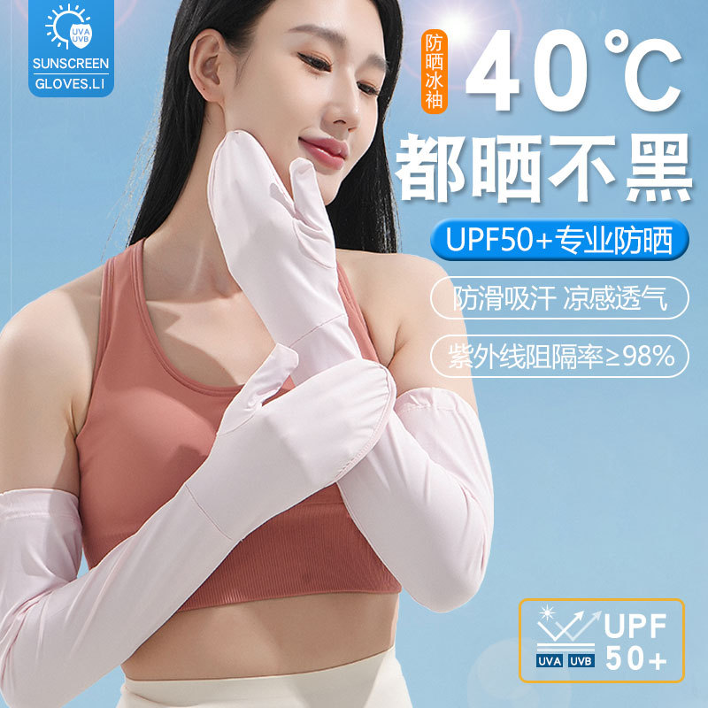 선스크린 아이스 슬리브 여성용 쿨 아이스 실크 통기성 빈 팜 UV 장벽 야외 승마 소매 조절 가능스토어 가기