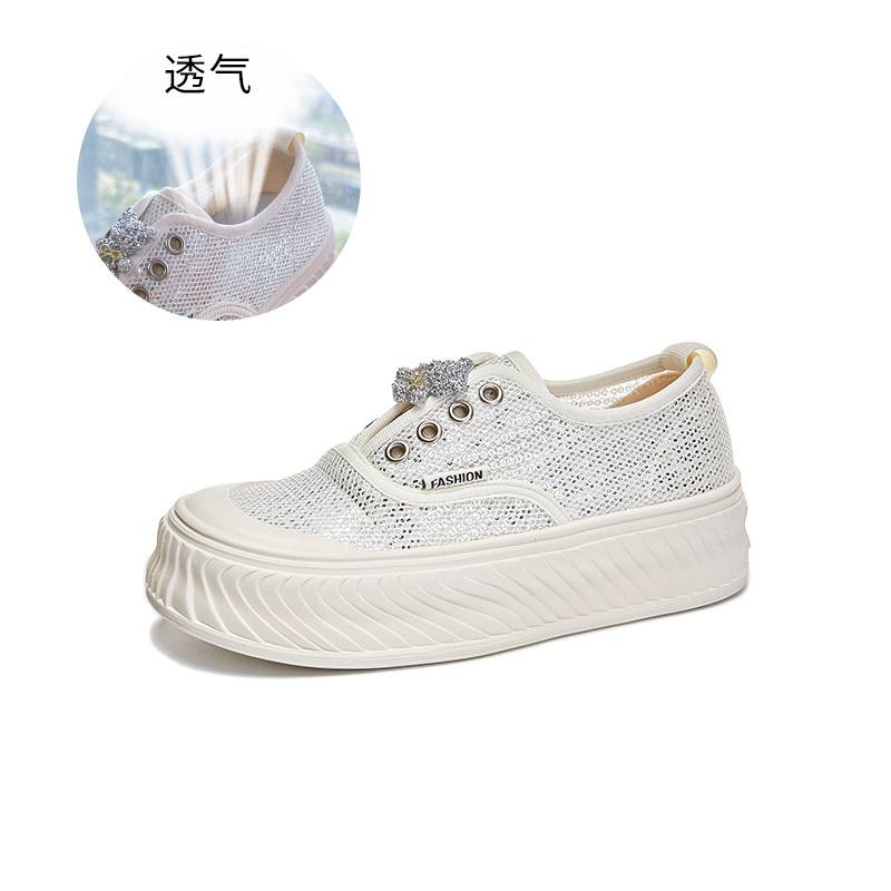 레이스 메쉬 피셔맨 슈즈 여성용 2025 여름 신상 두꺼운 밑창 다용도 통기성 캐주얼 슈즈 슬립온 화이트 슈즈 여성용스토어 가기