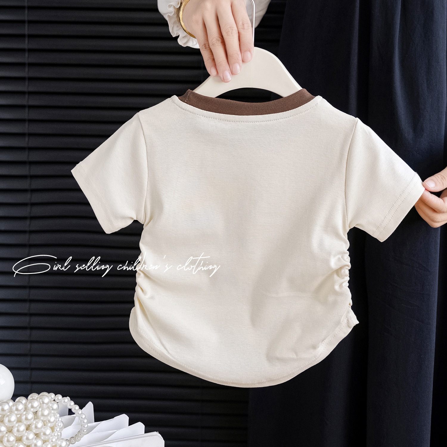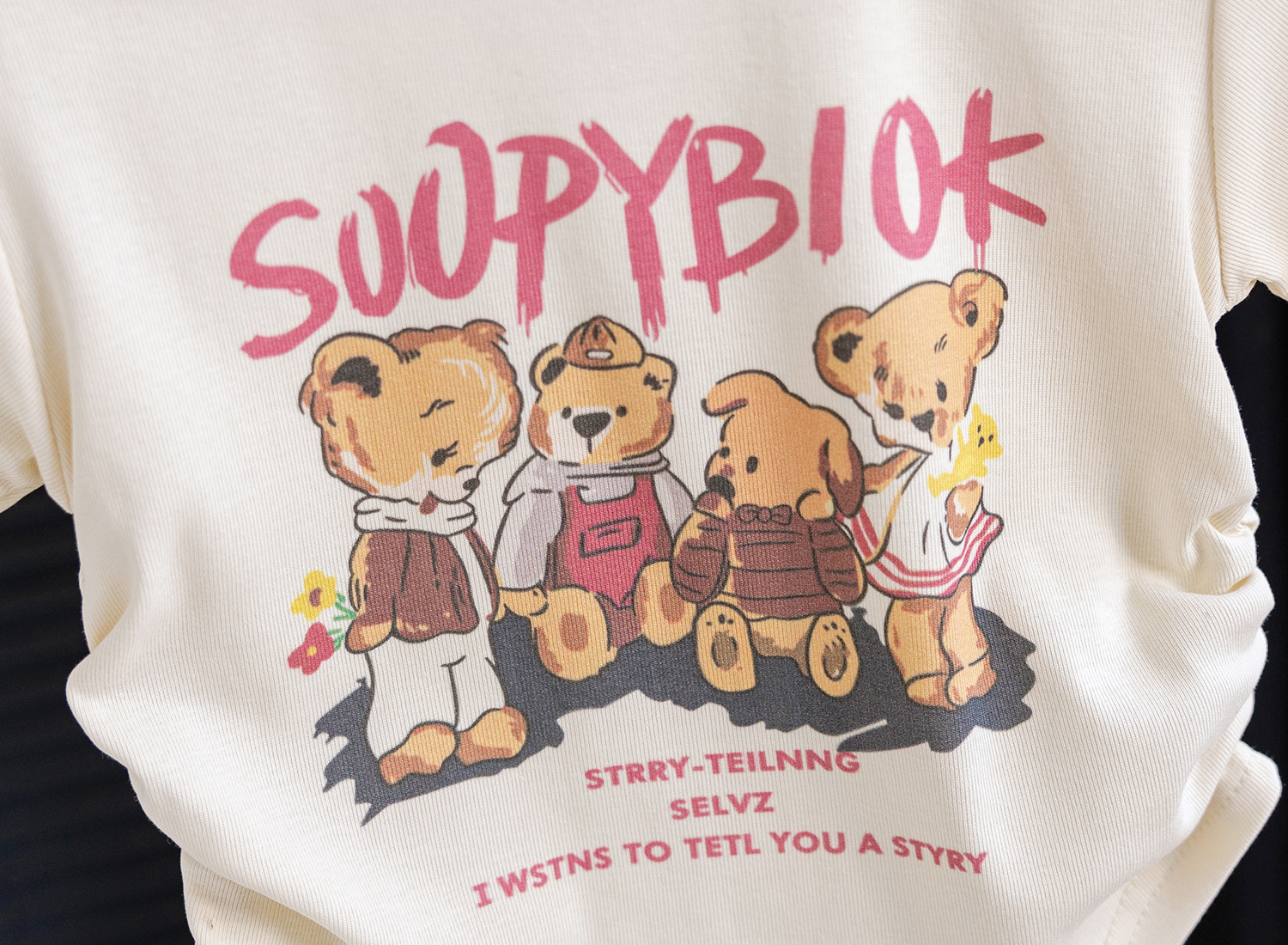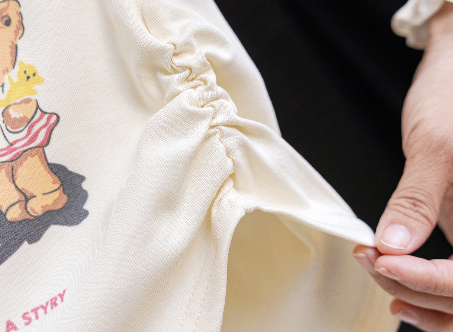2024 소녀의 새로운 여름 한국 스타일 올 매치 유치한 스타일 4 곰 인쇄 러플 반팔 사이버 인기 티셔츠 트렌디스토어 가기