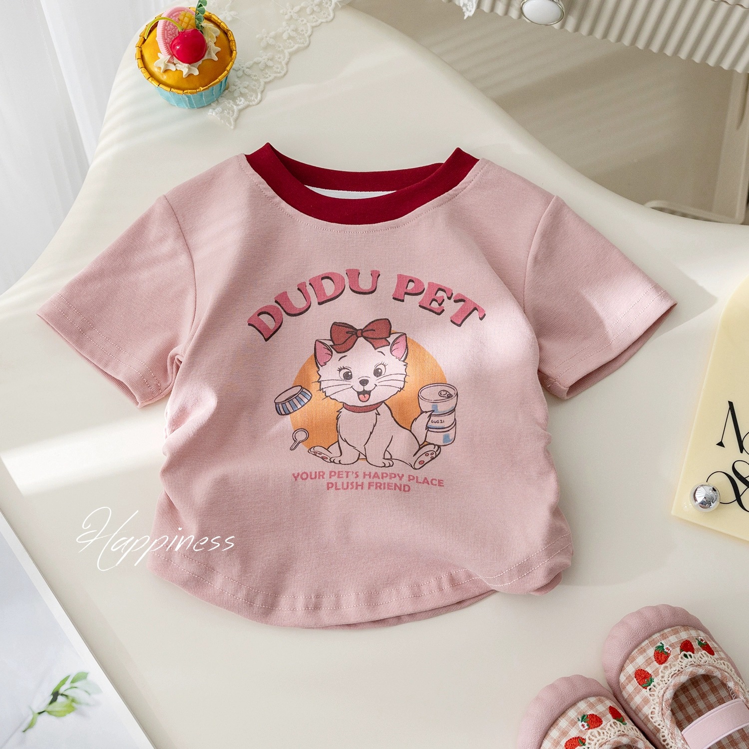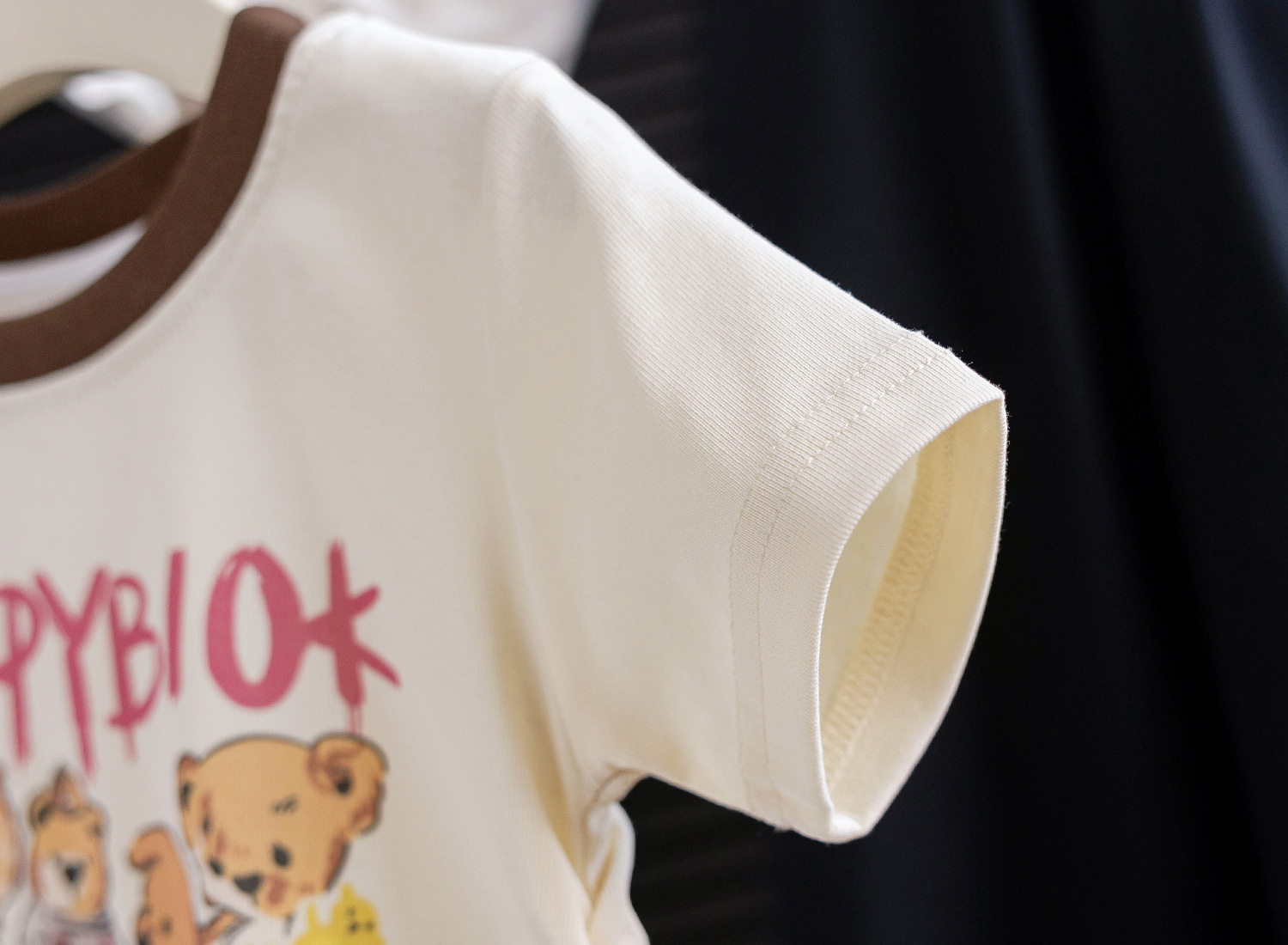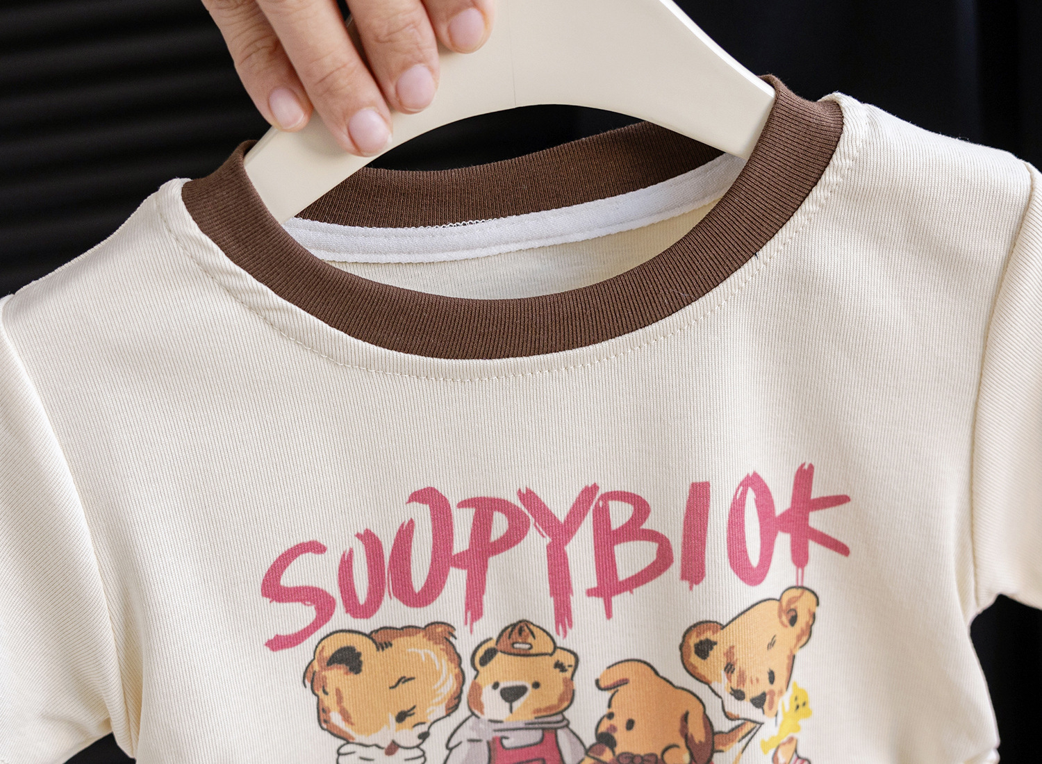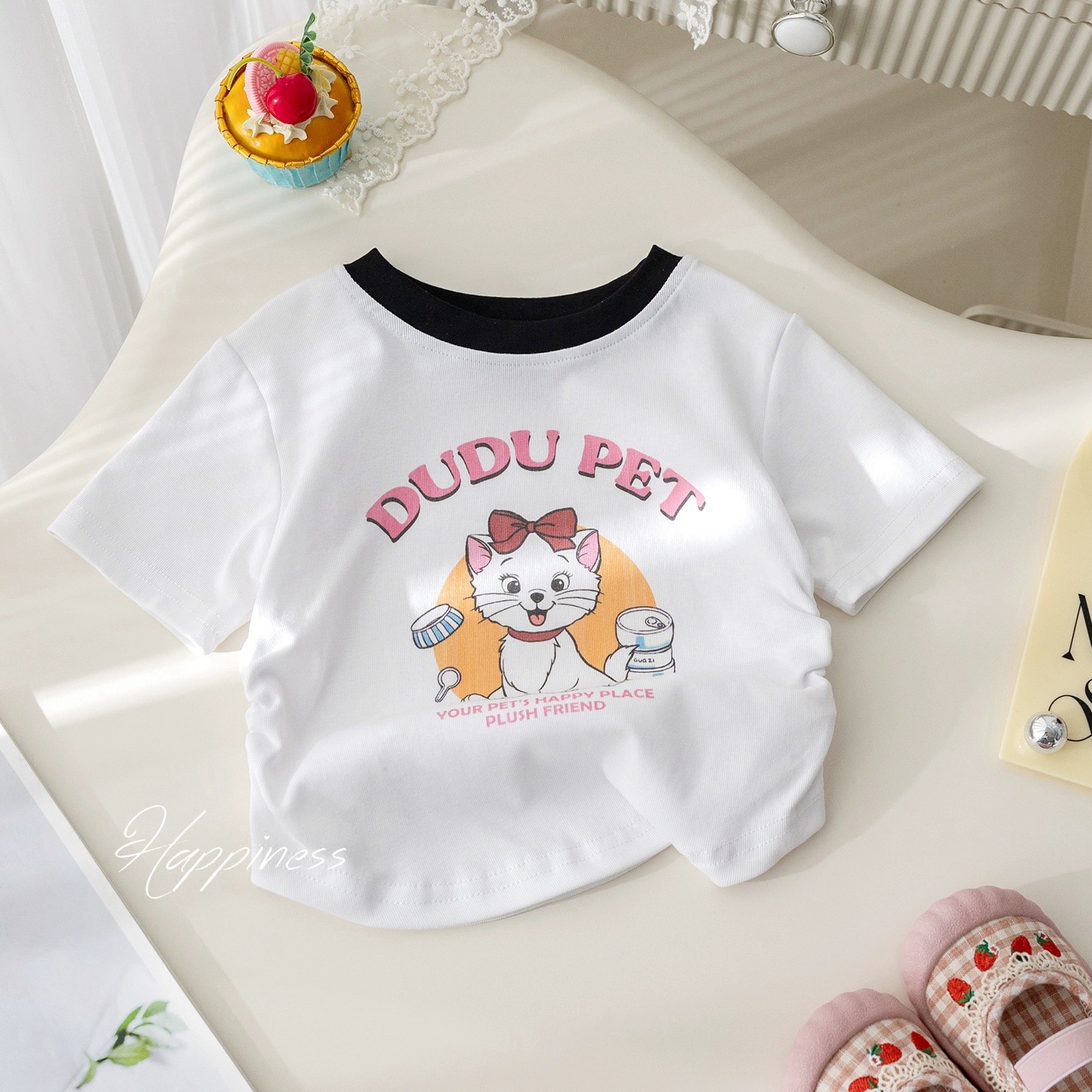 2024 소녀의 새로운 여름 한국 스타일 올 매치 유치한 스타일 4 곰 인쇄 러플 반팔 사이버 인기 티셔츠 트렌디스토어 가기