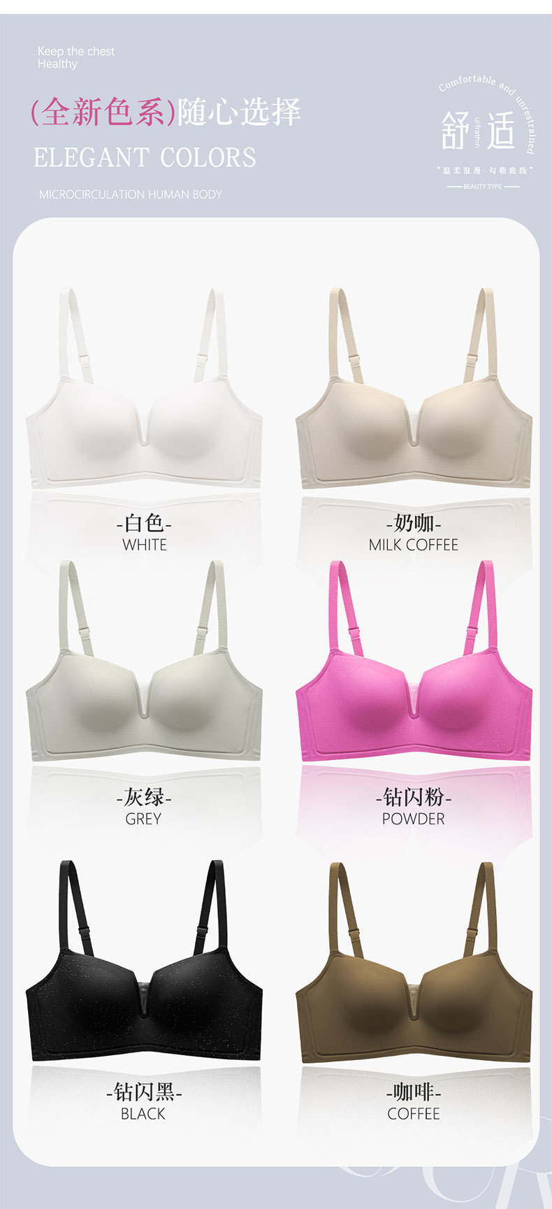 009 다이아몬드 플래시 깊은 v 원활한 소프트 지원 속옷 여성의 부드러운 작은 가슴은 벌거 벗은 단일 브래지어 스팬을 모았습니다.스토어 가기