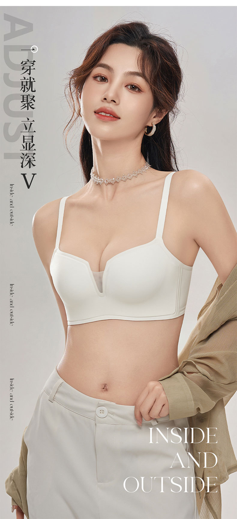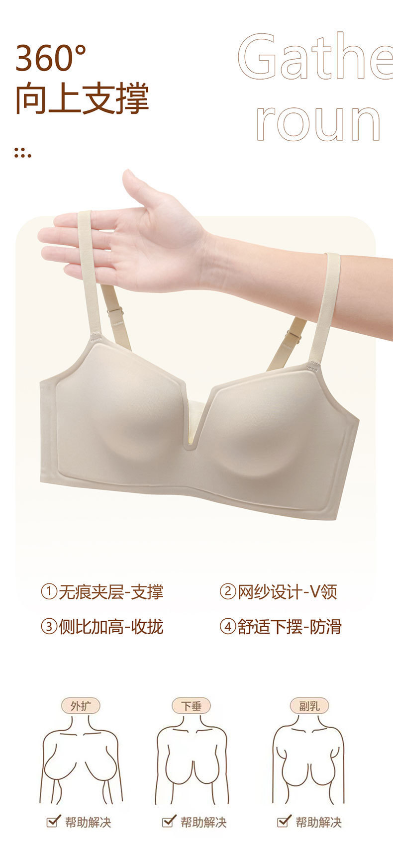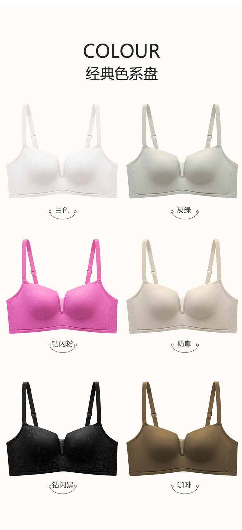 2024原版钻闪深V无痕软支撑内衣女 光面小胸聚拢裸感文胸罩跨境外