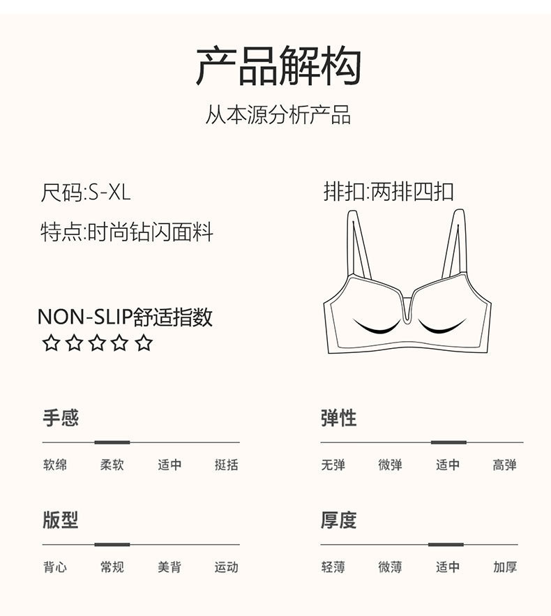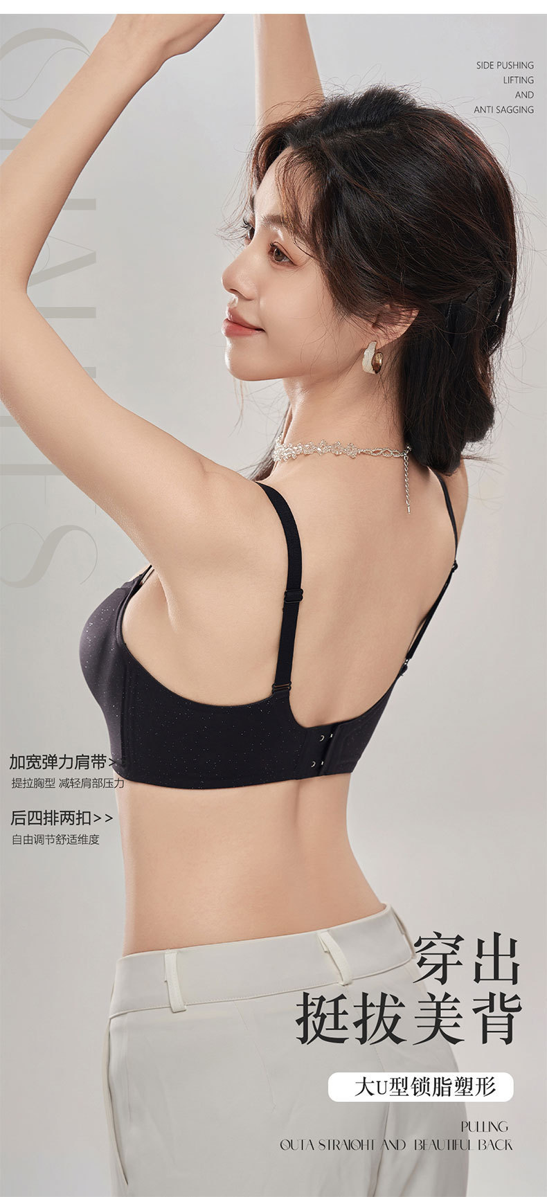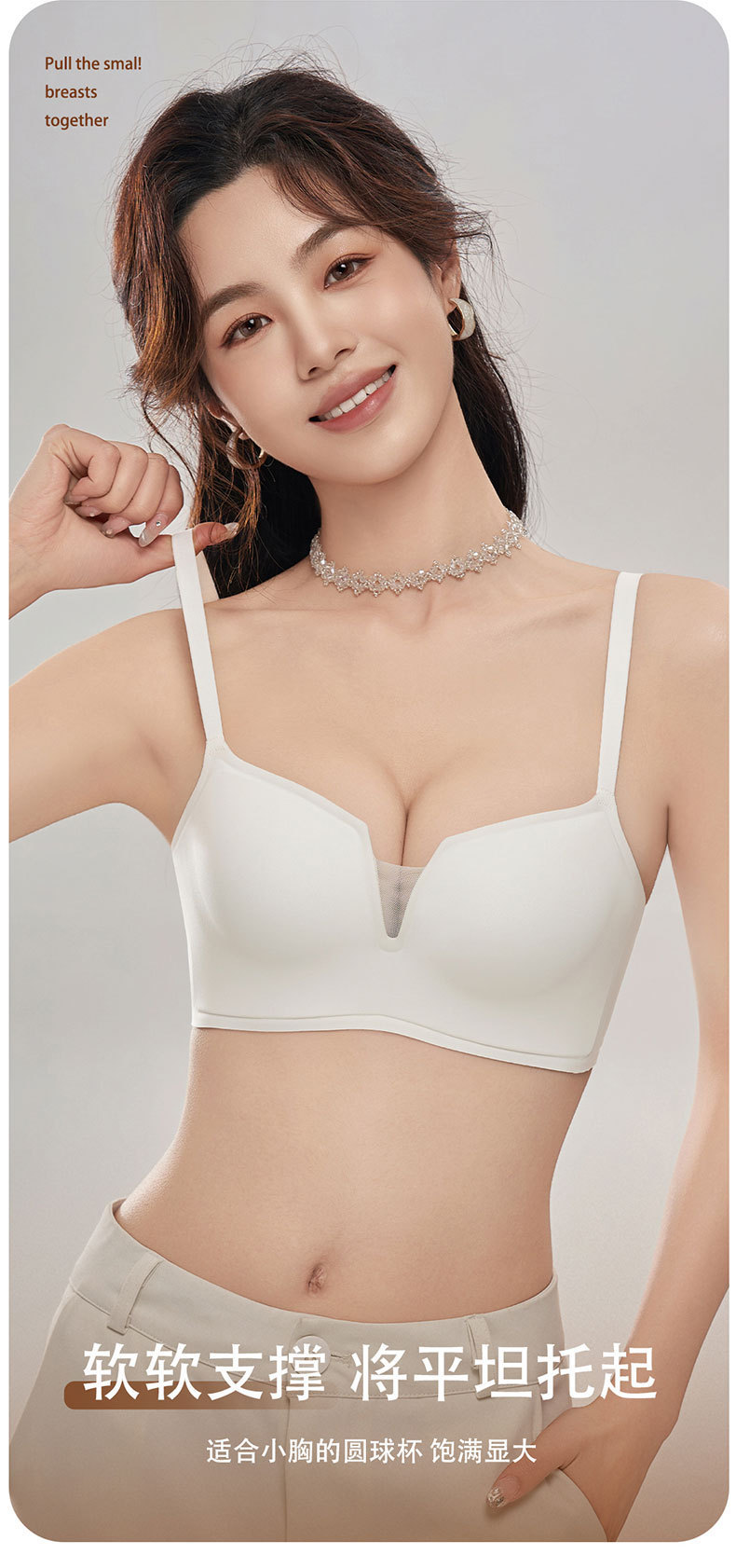 2024原版钻闪深V无痕软支撑内衣女 光面小胸聚拢裸感文胸罩跨境外