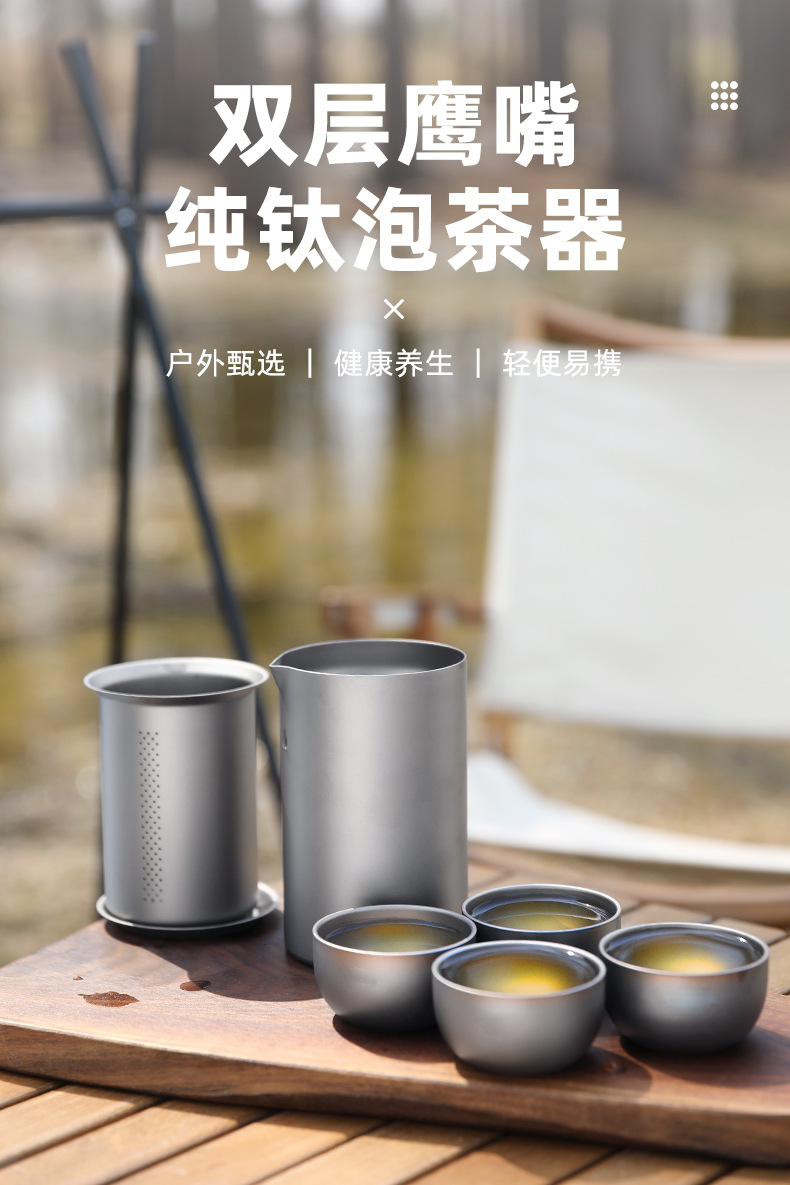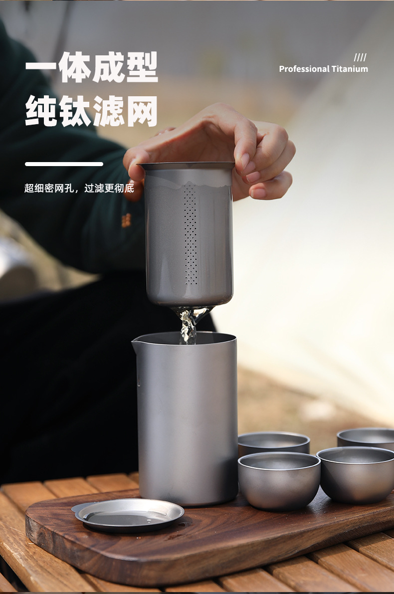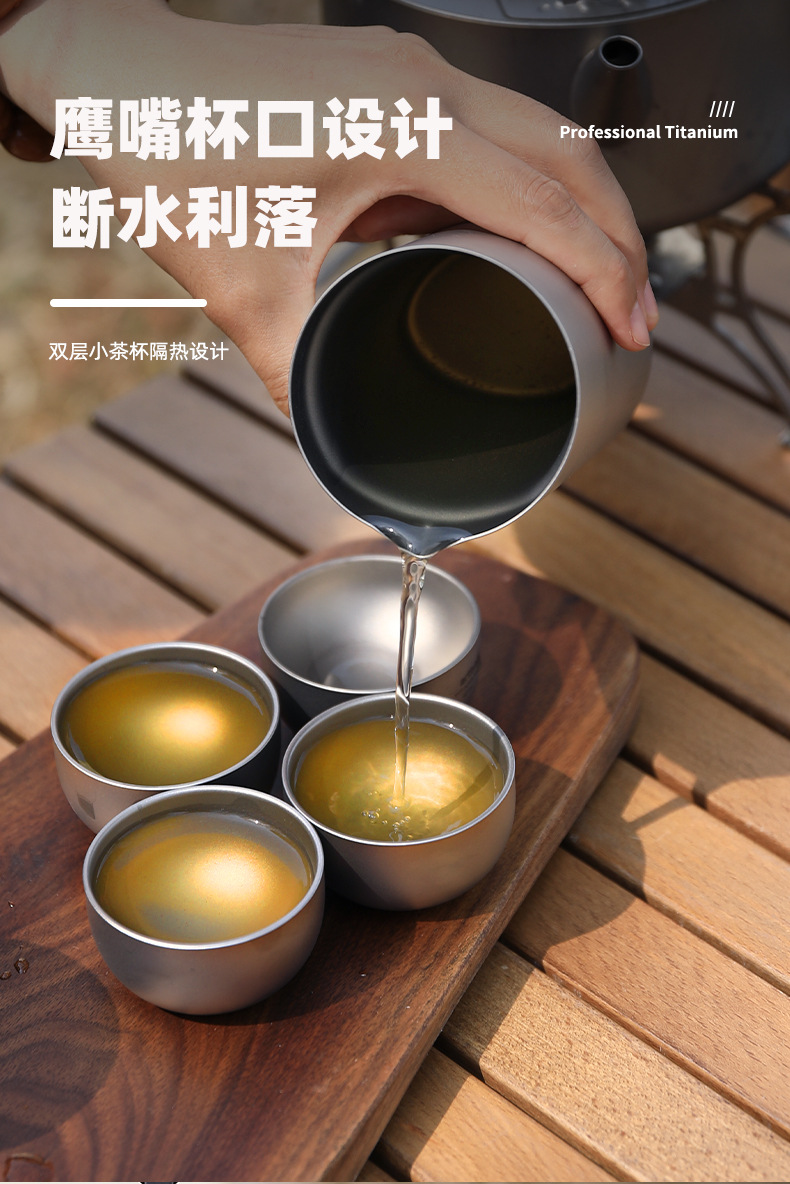 야외 순수 티타늄 차 메이커 세트 티타늄 여행 차 세트 차 냄비 휴대용 세트 캠핑 여행 티타늄 티 컵