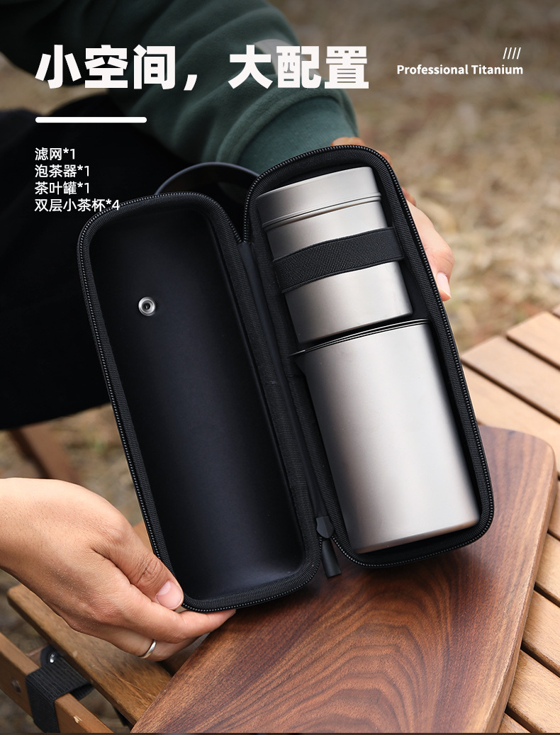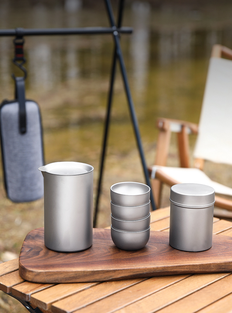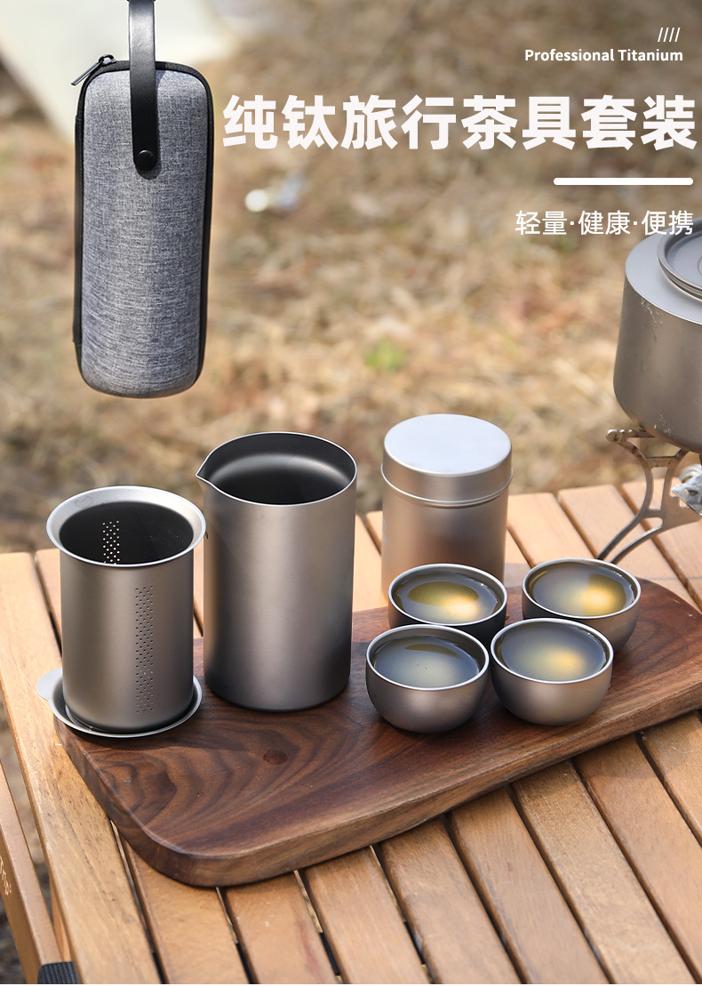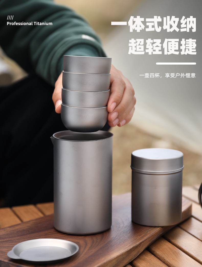 야외 순수 티타늄 차 메이커 세트 티타늄 여행 차 세트 차 냄비 휴대용 세트 캠핑 여행 티타늄 티 컵