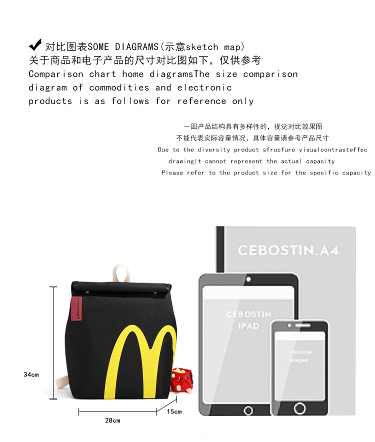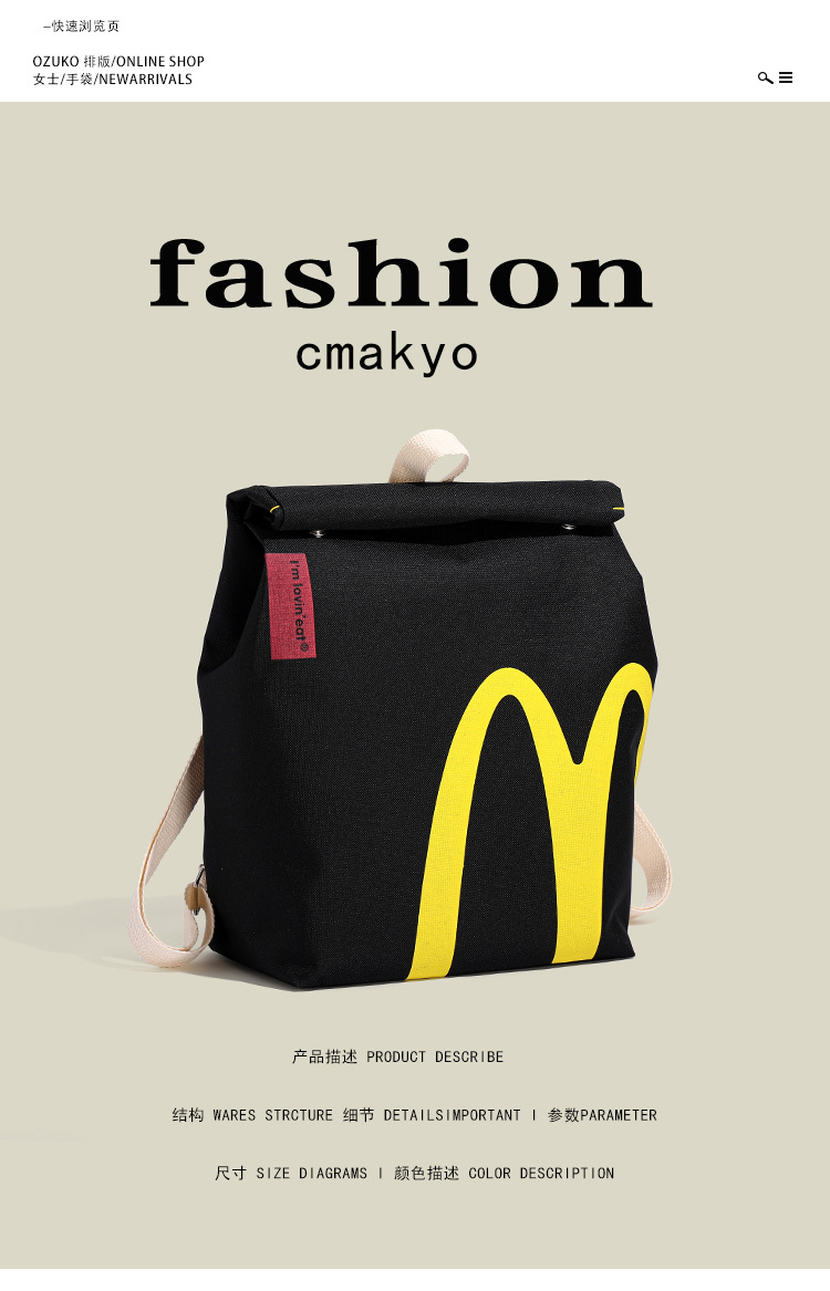 블랙 맥도날드 책가방 2025 신상 트렌디 종이백 백팩 여성용 대용량 학생용 방수 가방스토어 가기