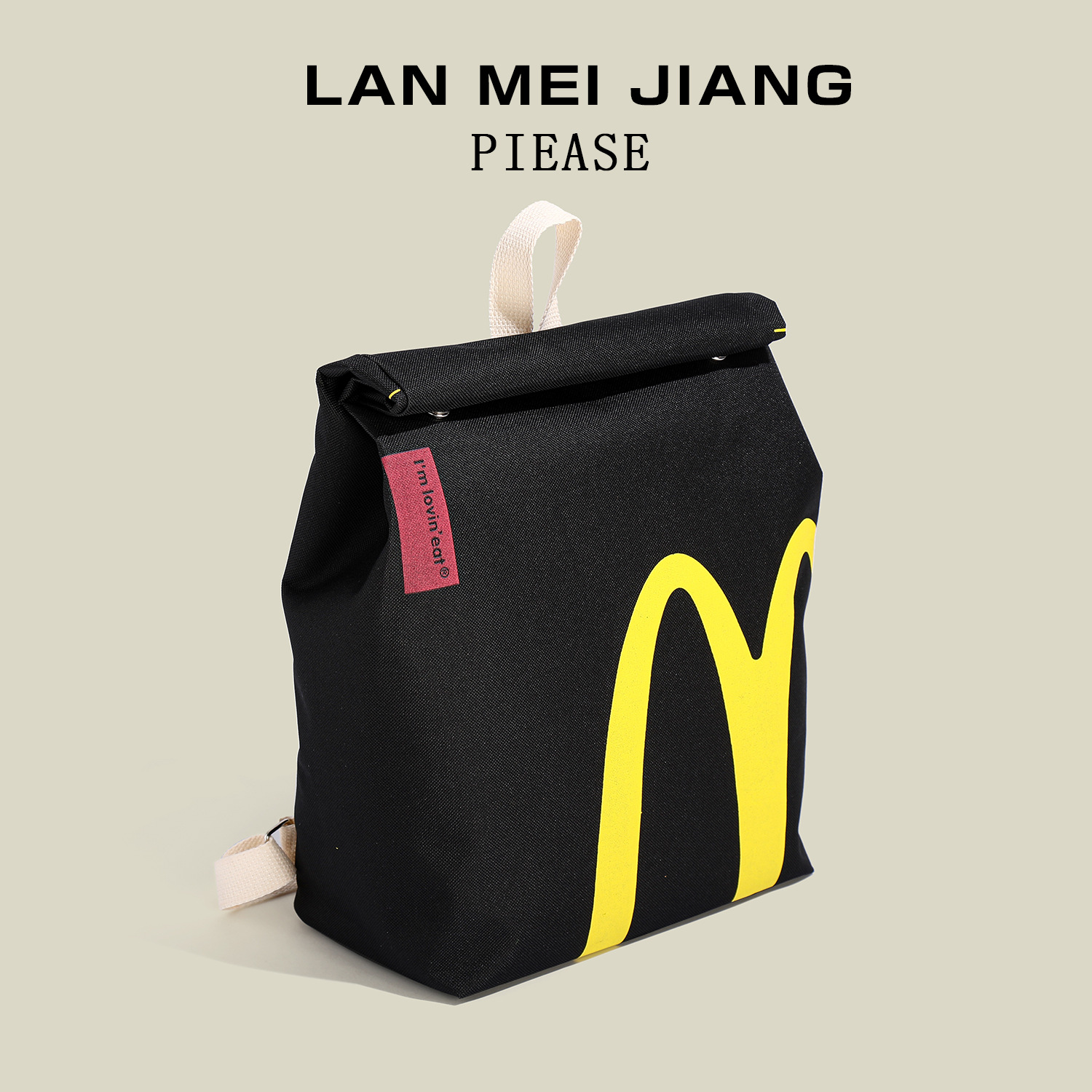 블랙 맥도날드 책가방 2025 신상 트렌디 종이백 백팩 여성용 대용량 학생용 방수 가방