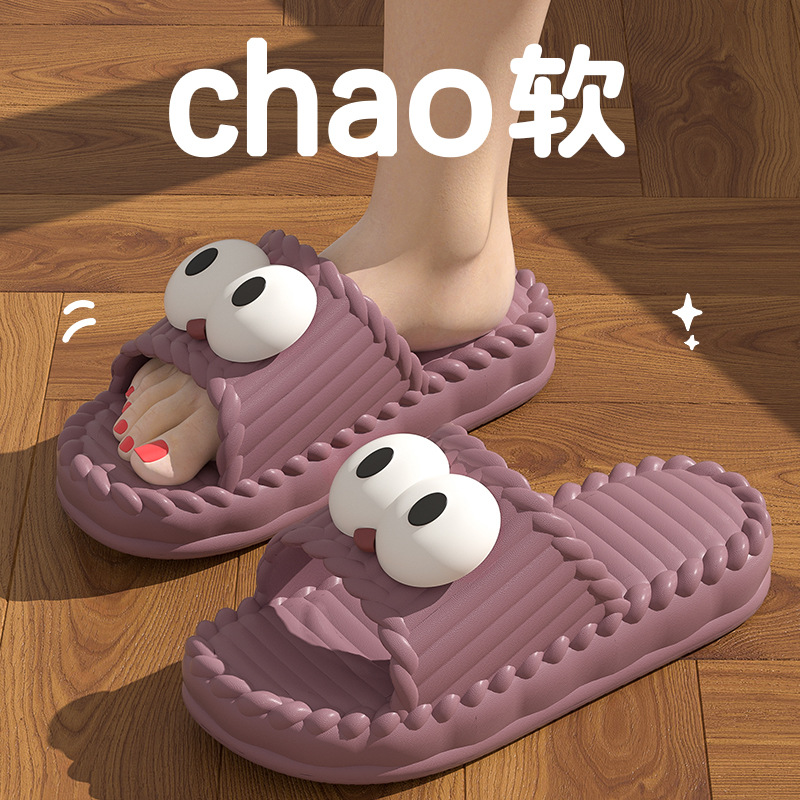 귀여운 곰 슬리퍼 여성의 여름 착용 2024 새로운 두꺼운 바닥 미끄럼 커플의 홈 실내 셔츠 슬리퍼