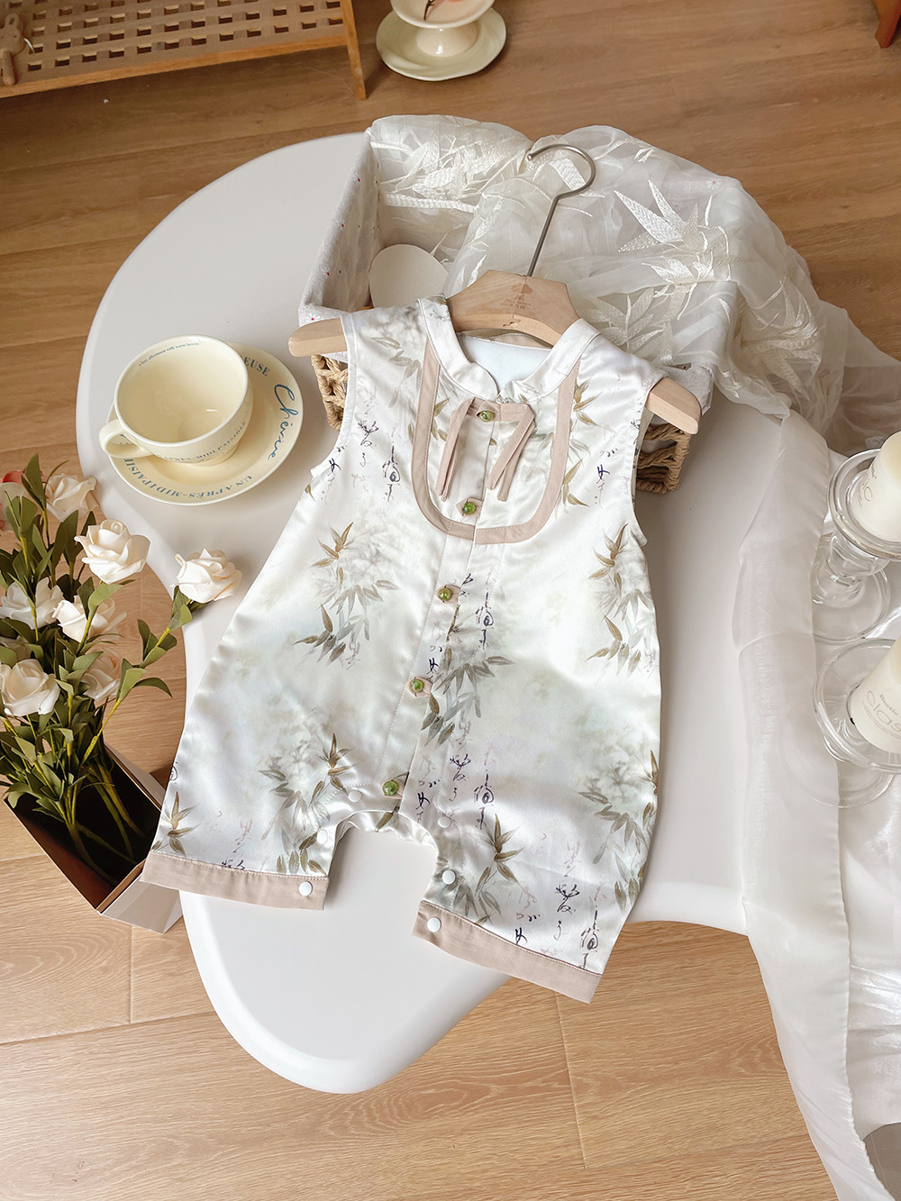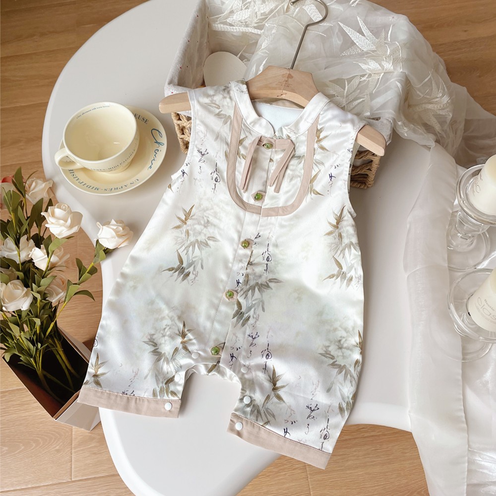 XP246672 어린이 점프 수트 여름 새로운 중국 스타일 등반 세트 신생아 세트 골동품 민소매 해그 가운