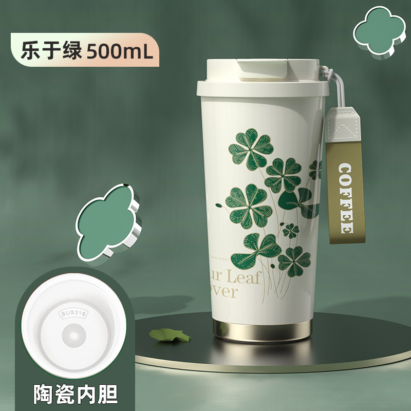 보온병 컵 세라믹 라이너 커피 컵 소년과 소녀를위한 고급스러운 밀짚 컵 학생 새로운 동반 컵 선물스토어 가기