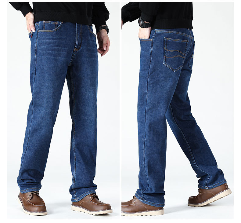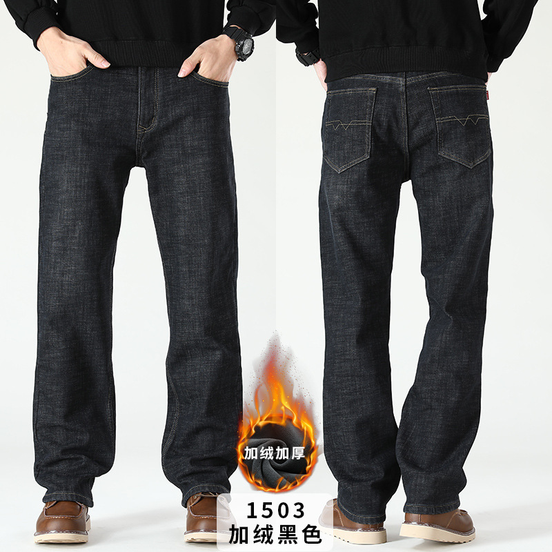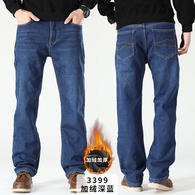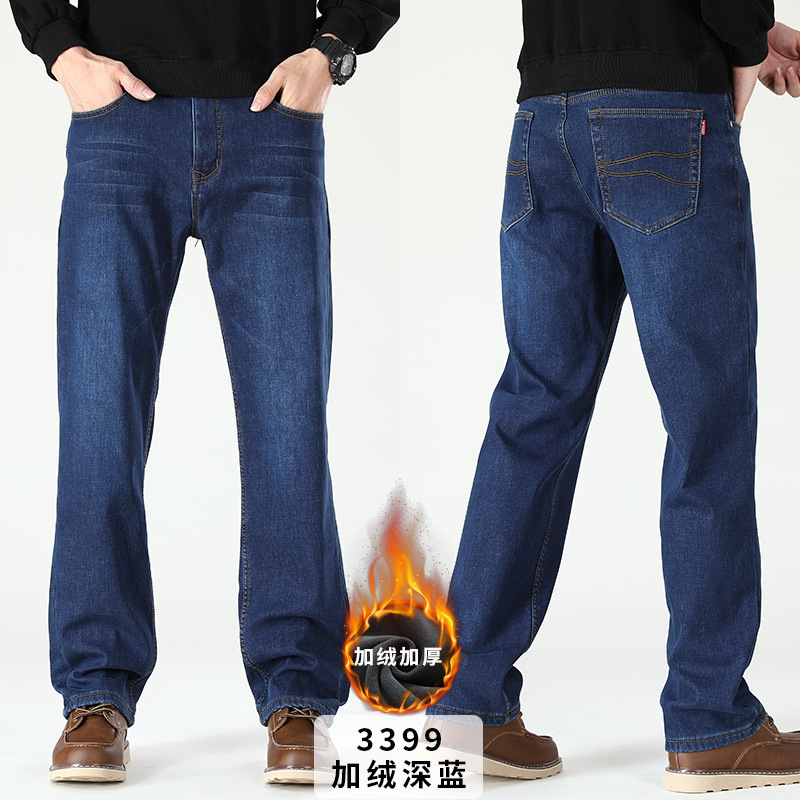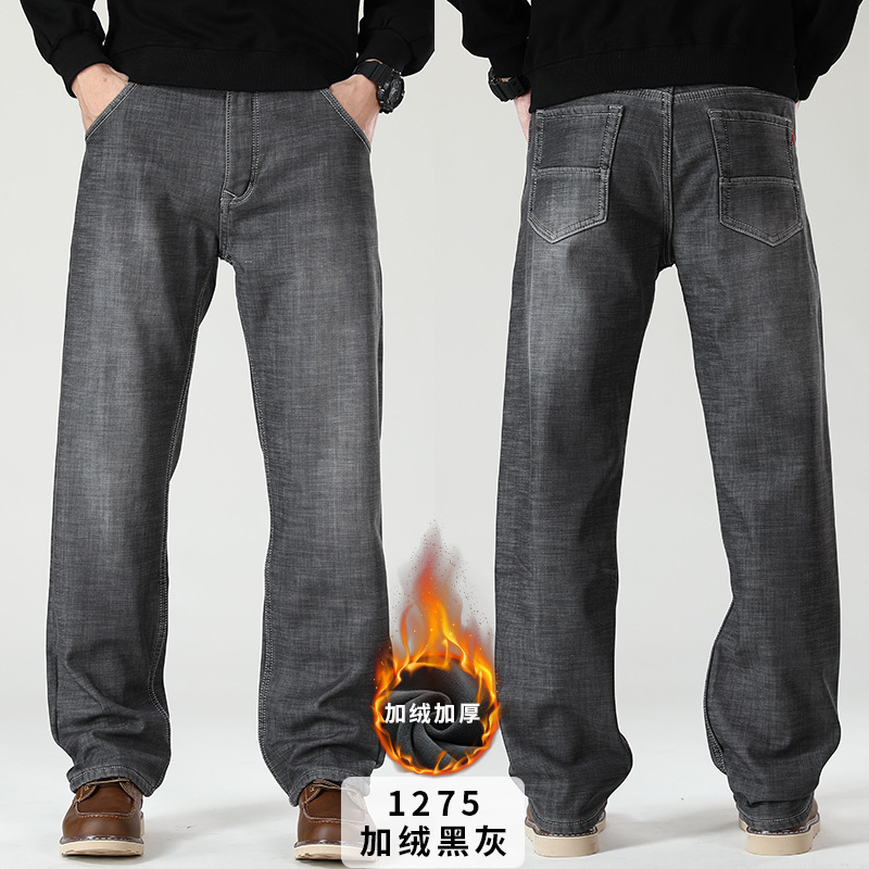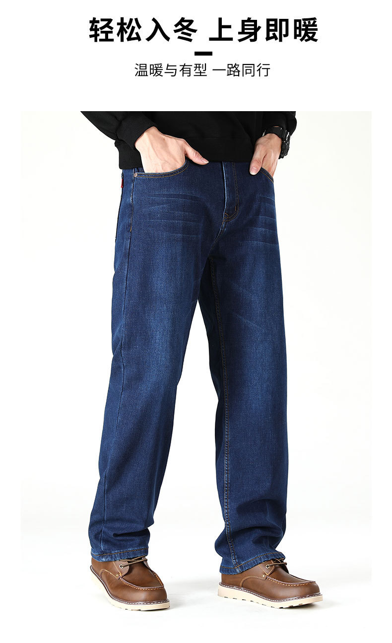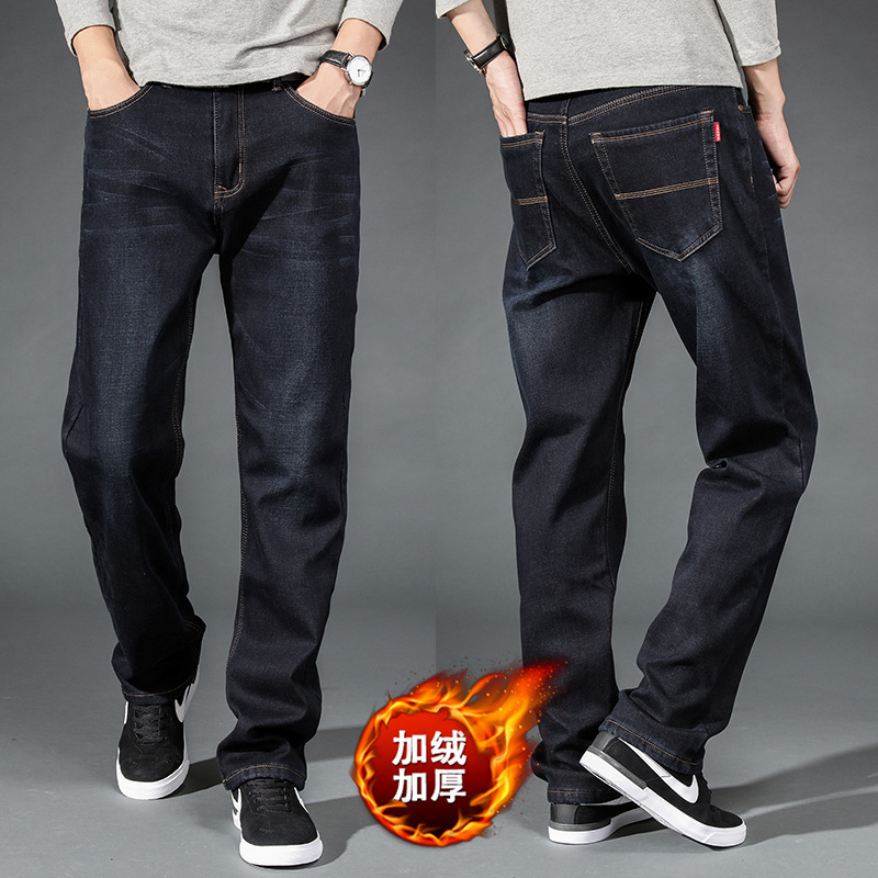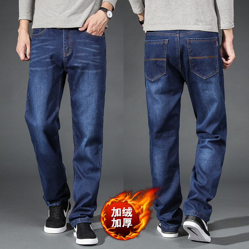 기모 두꺼운 따뜻한 청바지 남성용 느슨한 대형 스트레이트 긴 바지 면화 된 겨울 기모 스트레치 넓은 다리스토어 가기