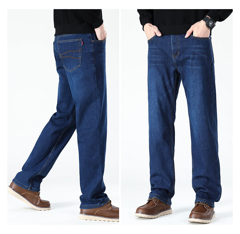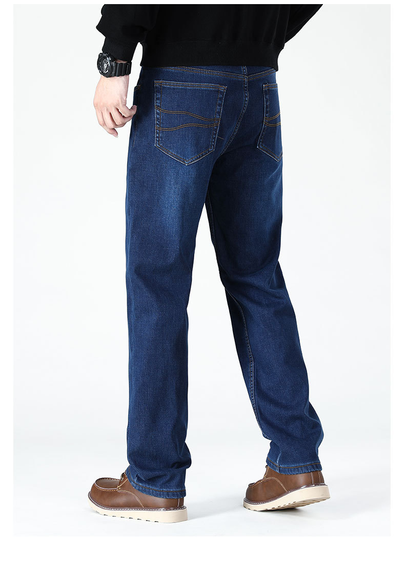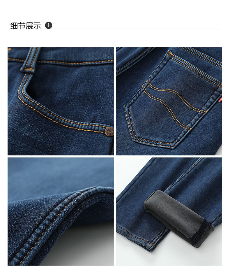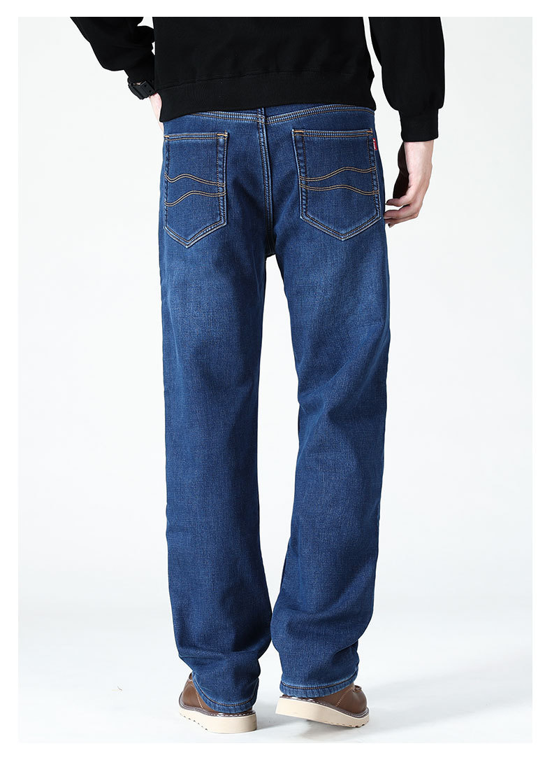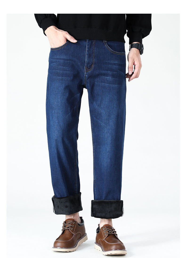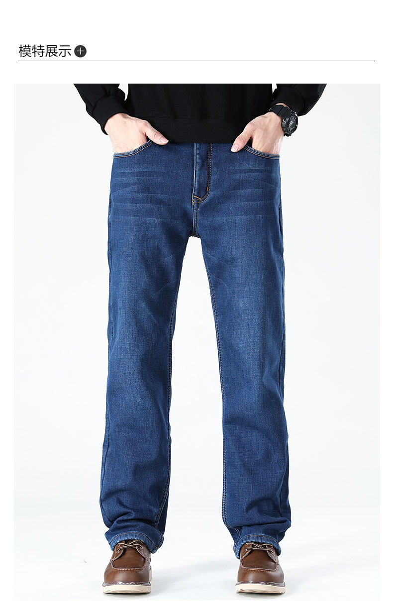기모 두꺼운 따뜻한 청바지 남성용 느슨한 대형 스트레이트 긴 바지 면화 된 겨울 기모 스트레치 넓은 다리스토어 가기