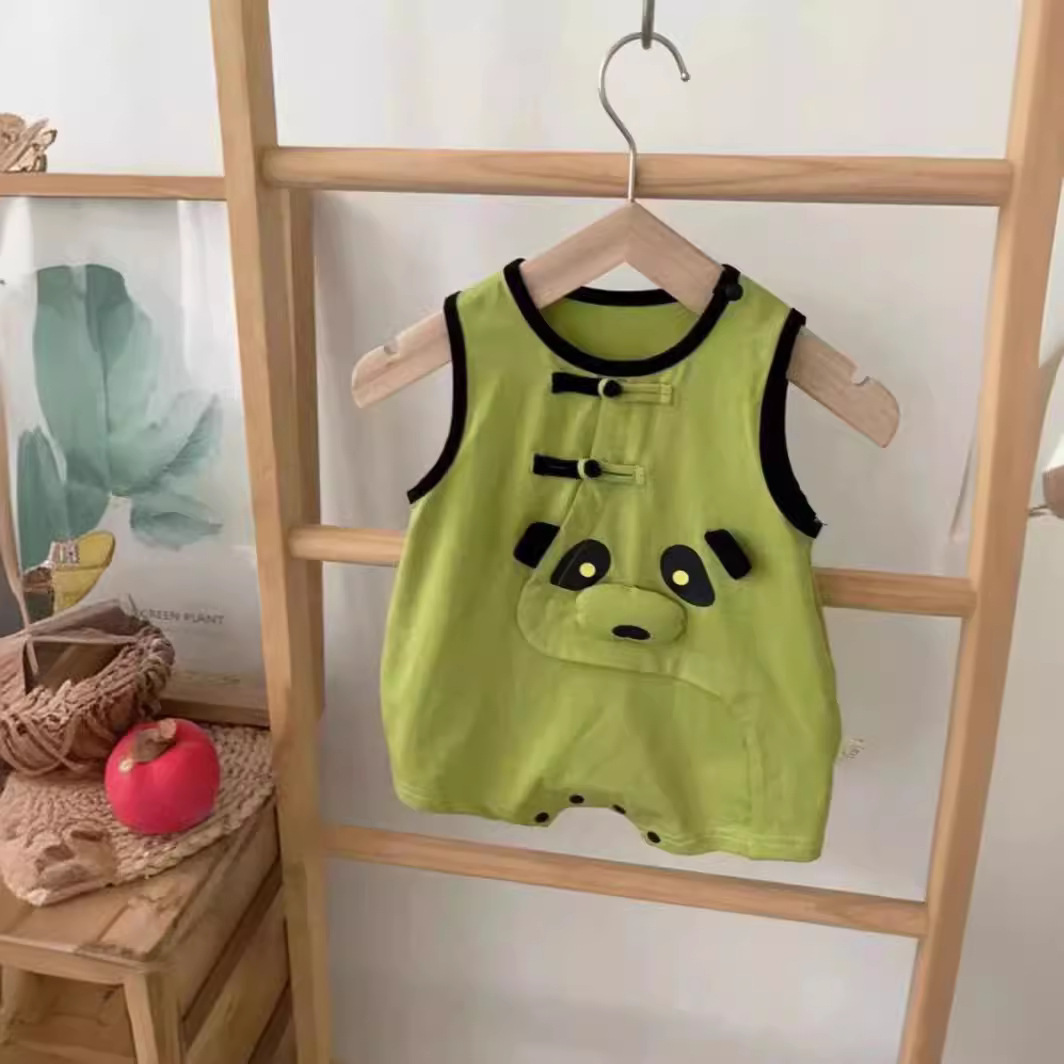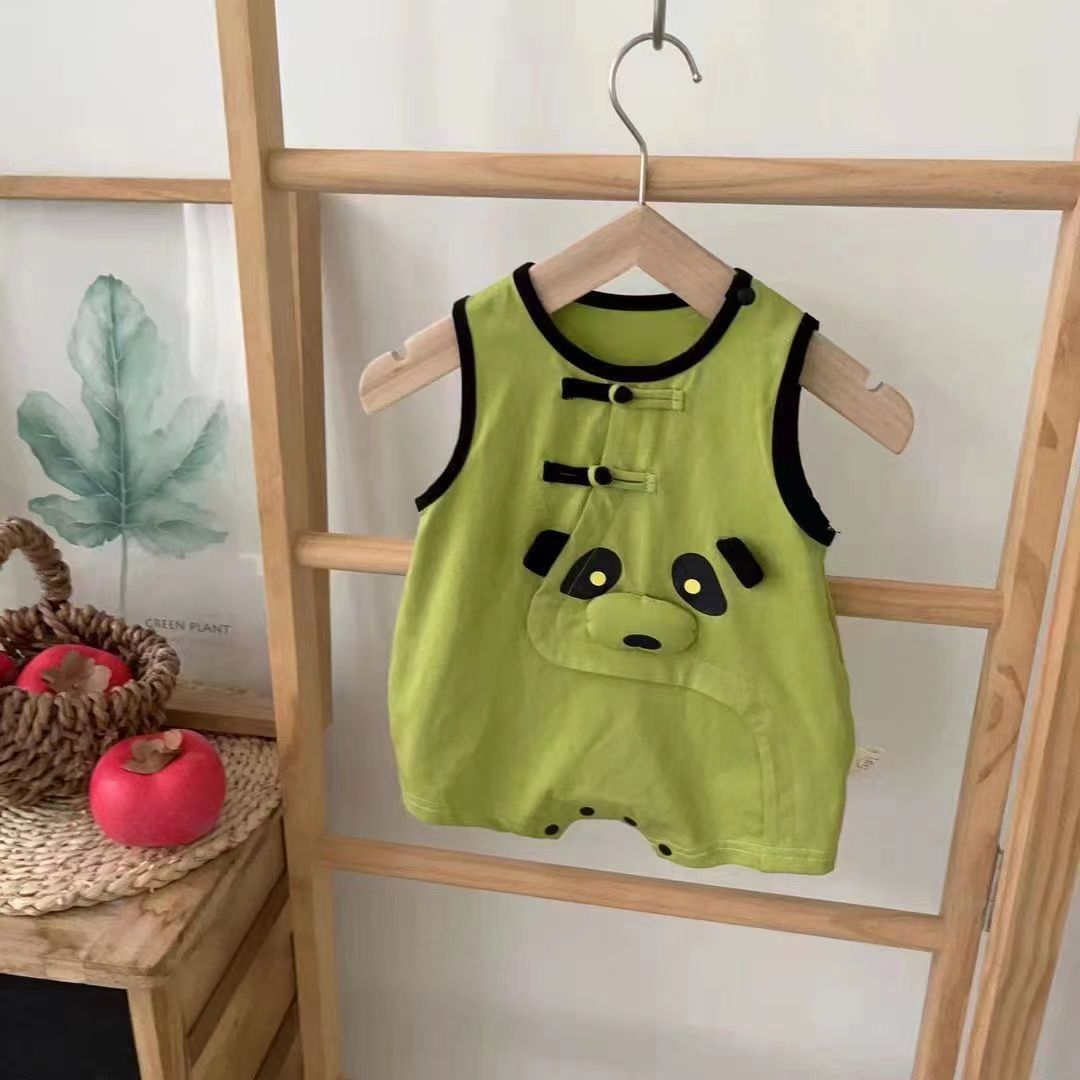 아기 여름 옷 민소매 가방 뚱뚱한 옷 남자와 아기를위한 조끼 만화 신생아 삼각형 등반을위한 얇은 원피스 하카 옷스토어 가기