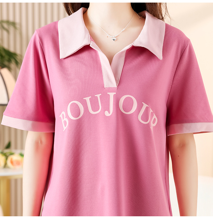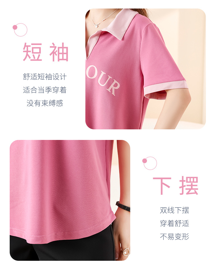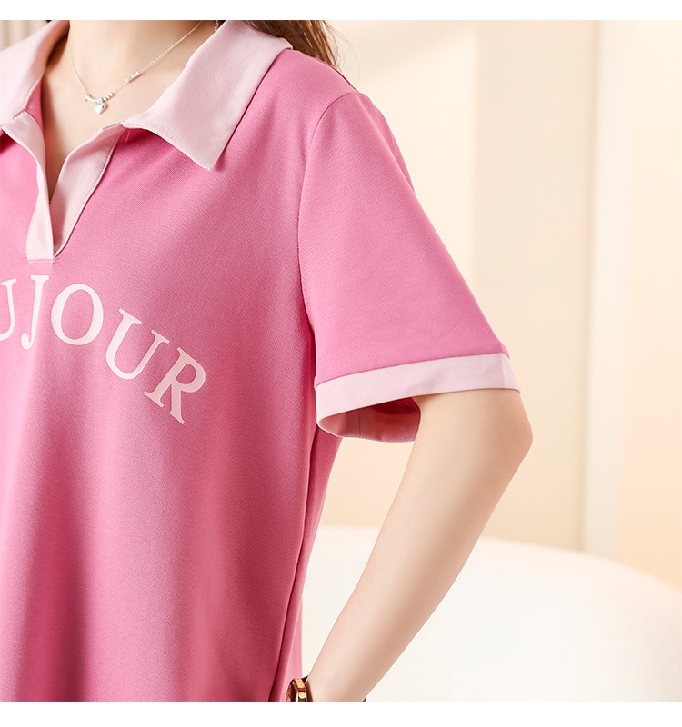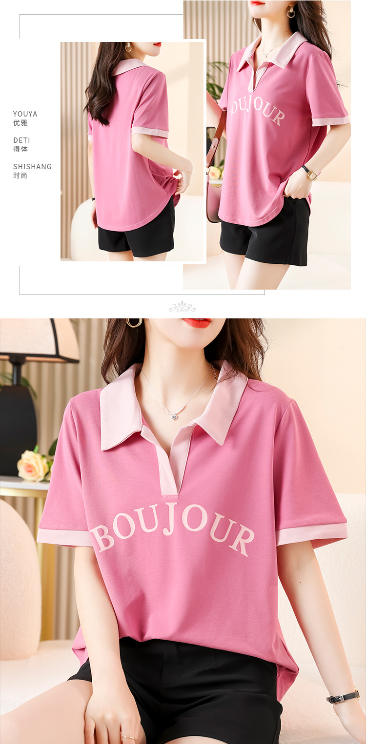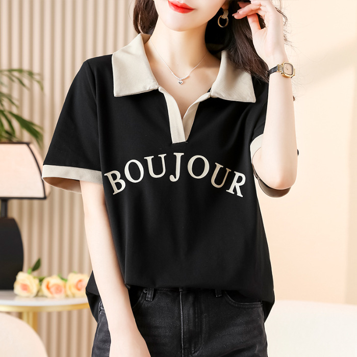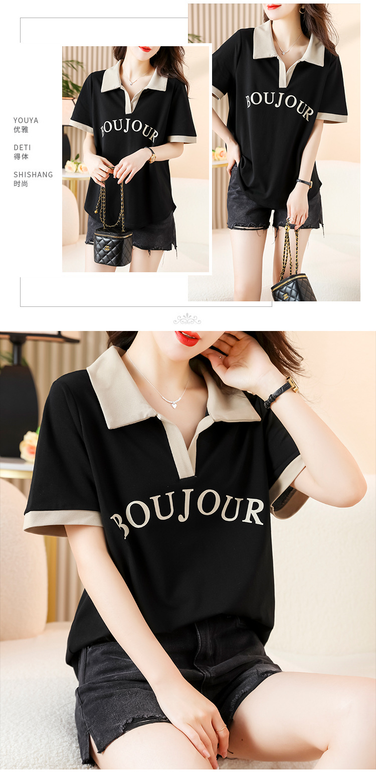 D08 # 뚱뚱한 자매 폴로 셔츠 큰 크기 여성의 2024 여름 느슨한 슬림 대비 컬러 어깨 티셔츠의 새로운 한국어 버전