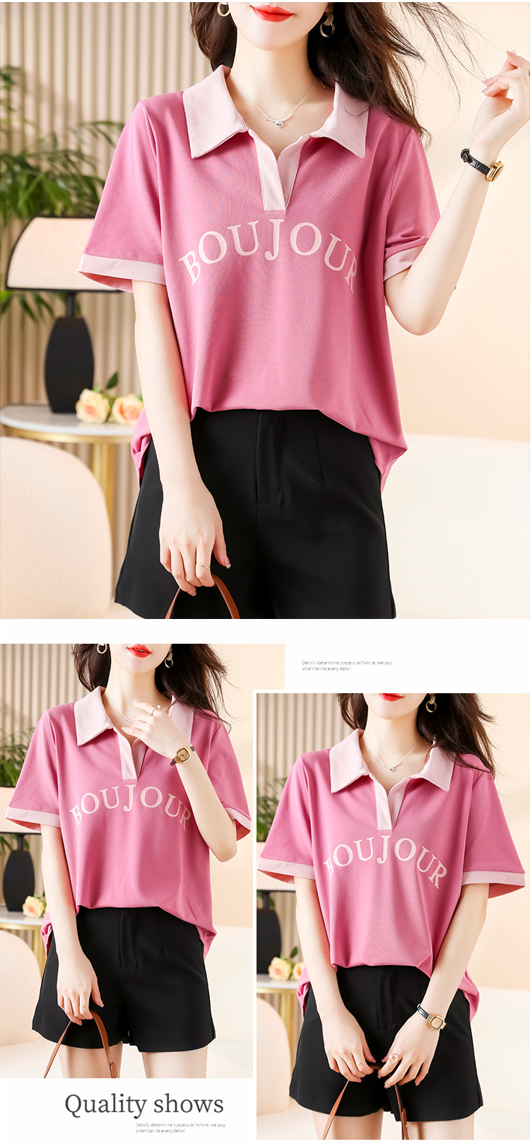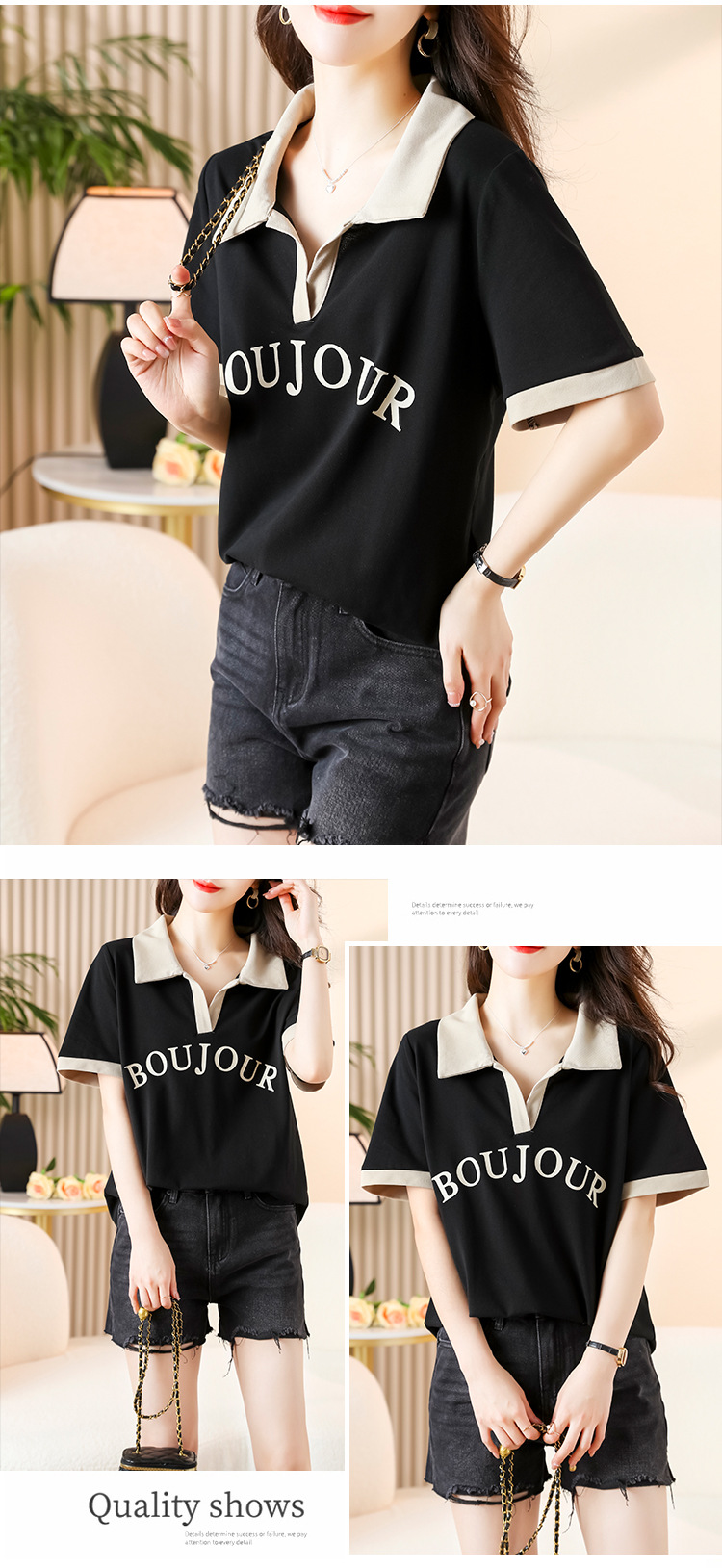 D08 # 뚱뚱한 자매 폴로 셔츠 큰 크기 여성의 2024 여름 느슨한 슬림 대비 컬러 어깨 티셔츠의 새로운 한국어 버전스토어 가기