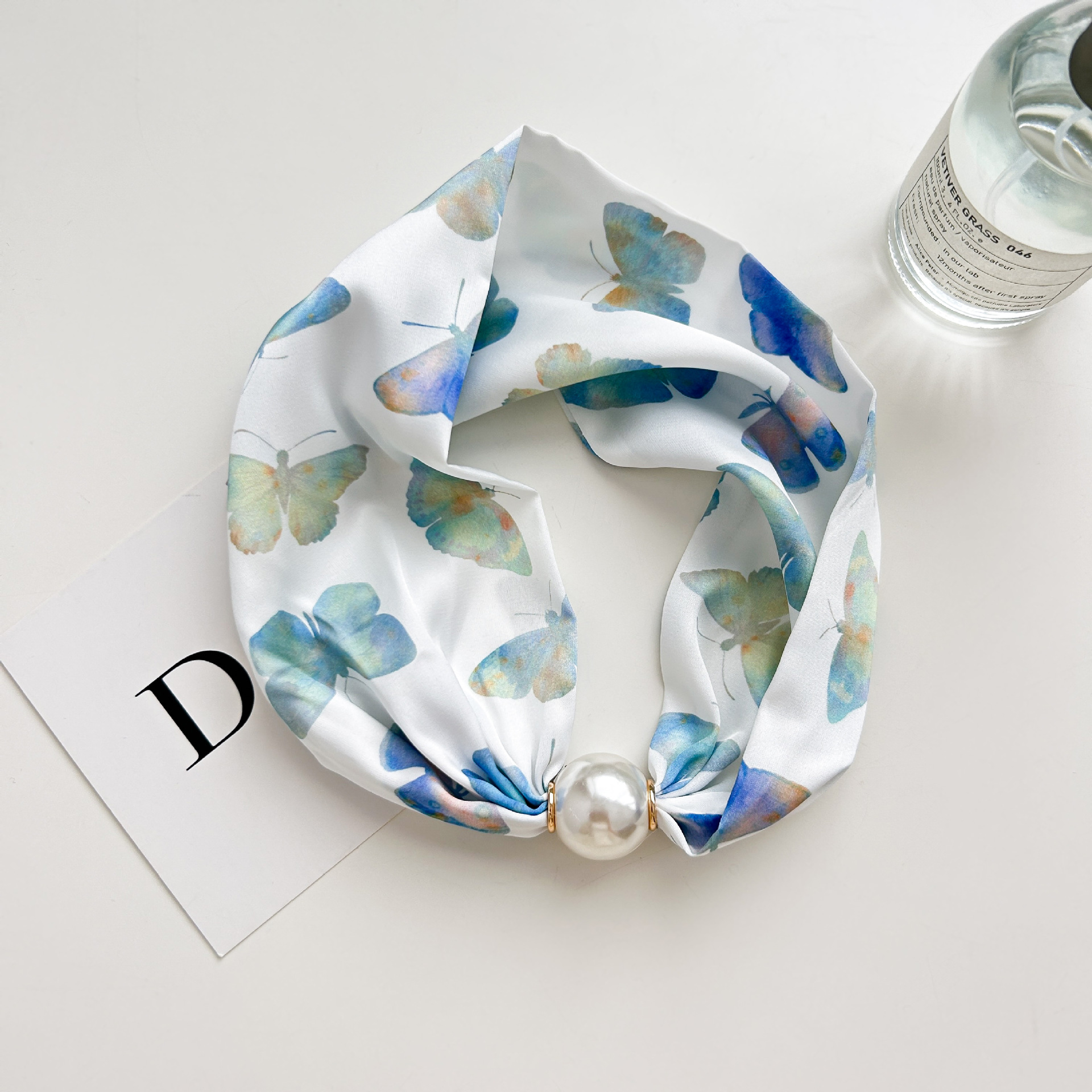 새로운 한국식 마그네틱 버클 진주 목걸이 작은 긴 스카프 여성 순수한 핑크 봄과 가을 얇은 스카프스토어 가기