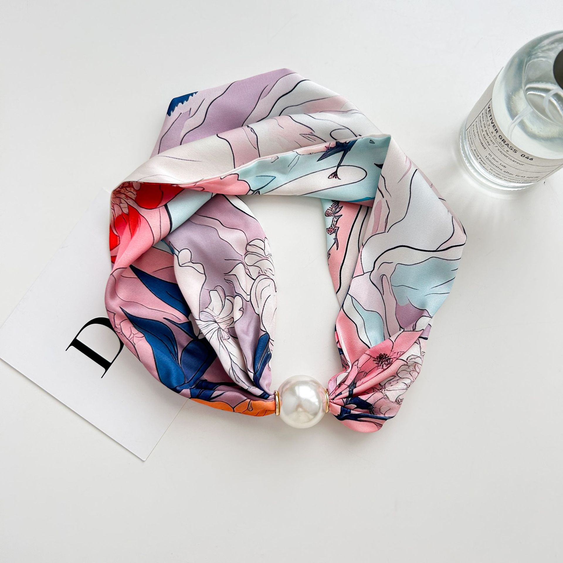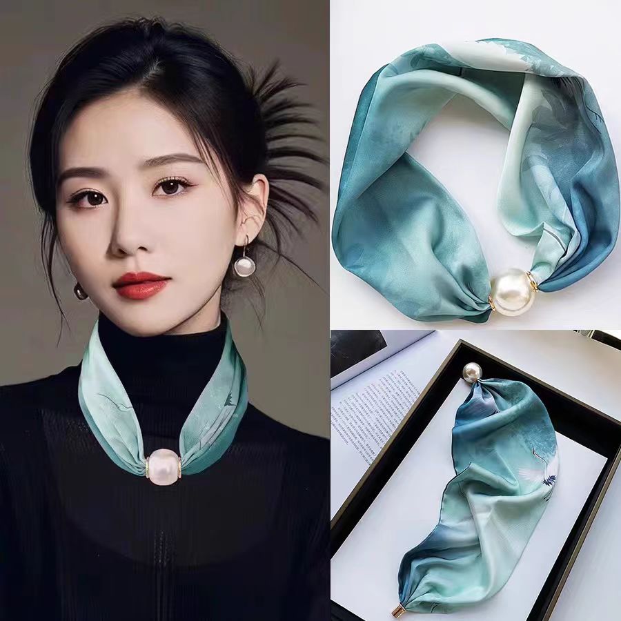새로운 한국식 마그네틱 버클 진주 목걸이 작은 긴 스카프 여성 순수한 핑크 봄과 가을 얇은 스카프