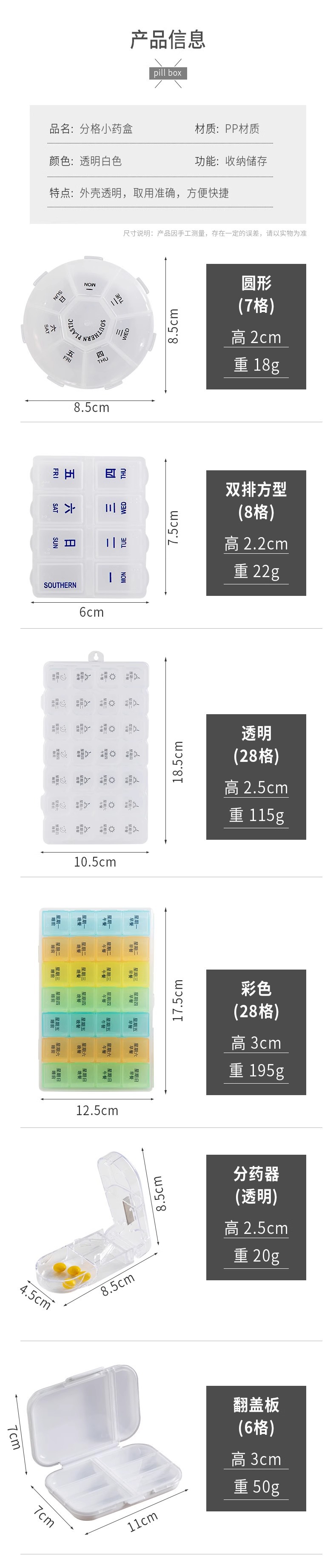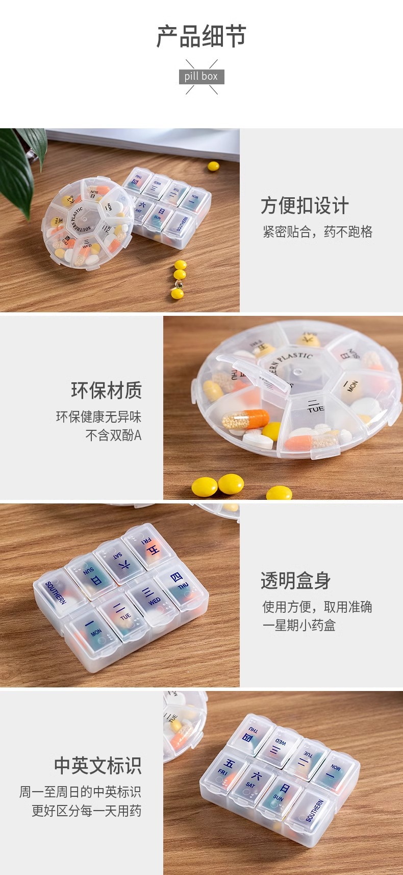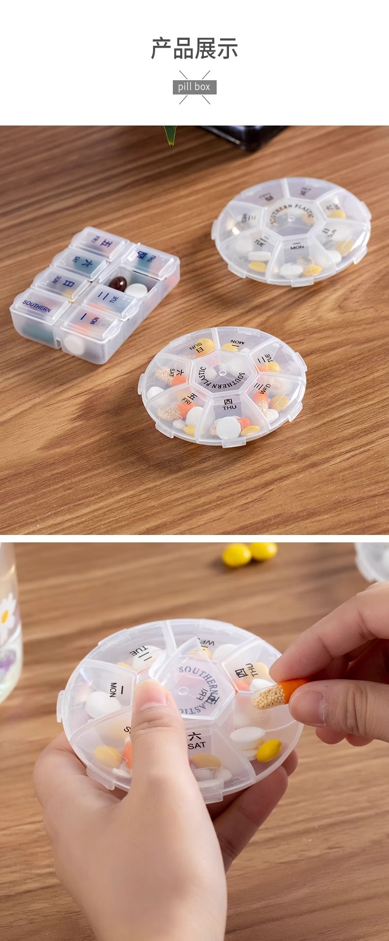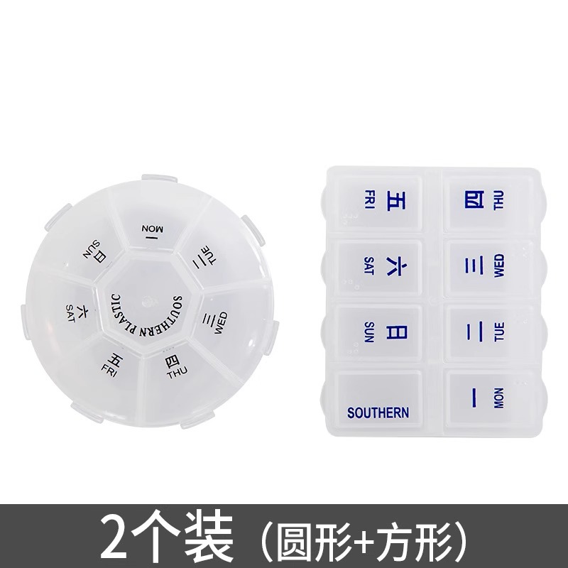 • [2 세트] 둥근 알약 상자 사각형 알약 상자