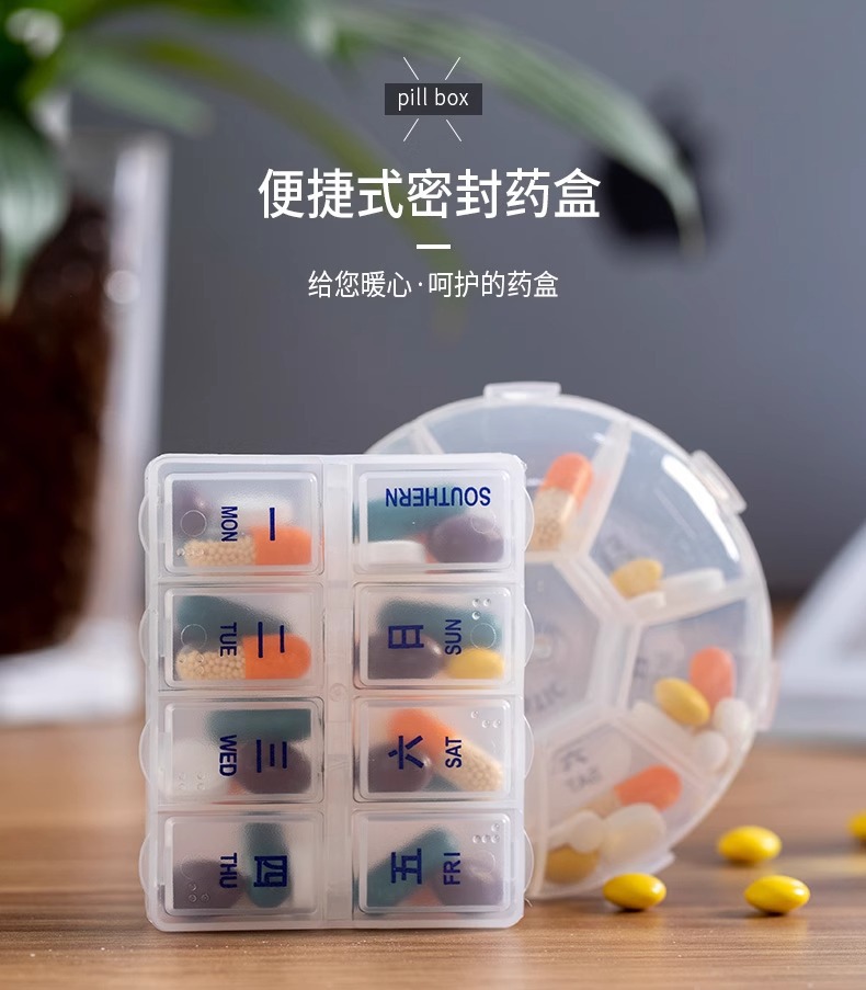 휴대용 서브 팩 약 상자 7 일 약 태블릿 작은 미니 여행 1 주 약 알약 저장 상자