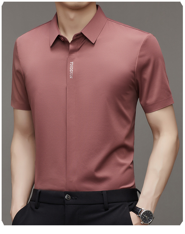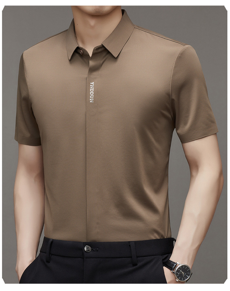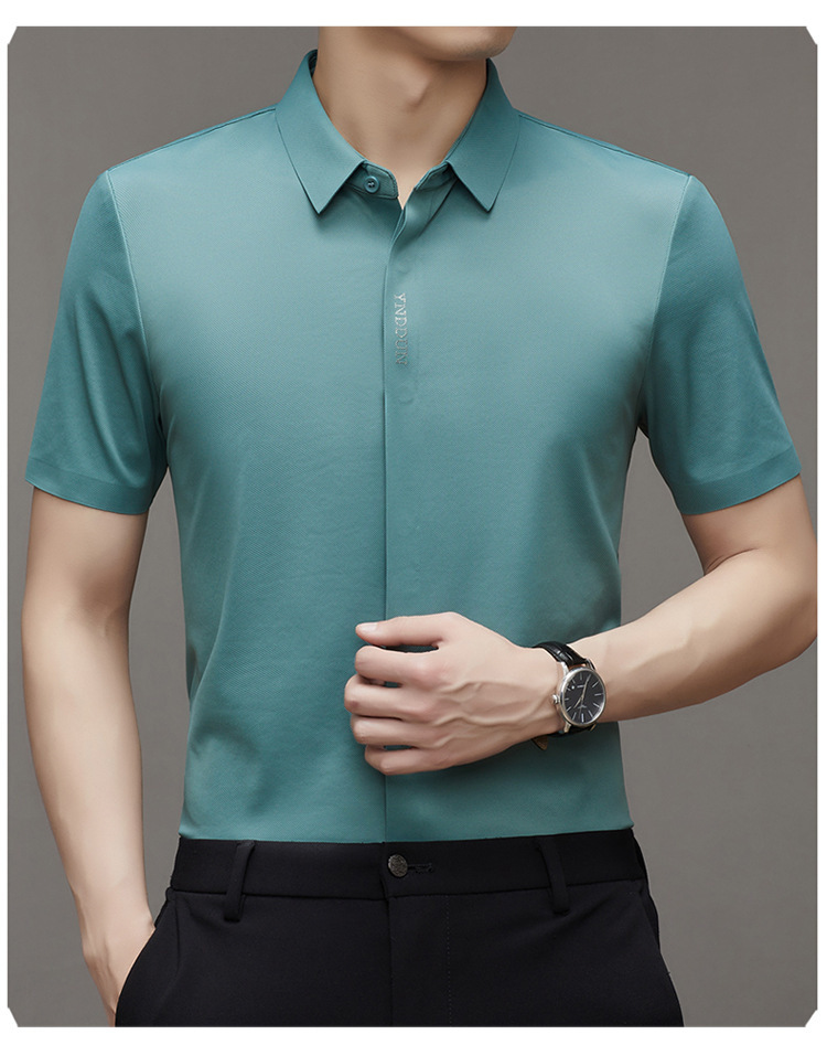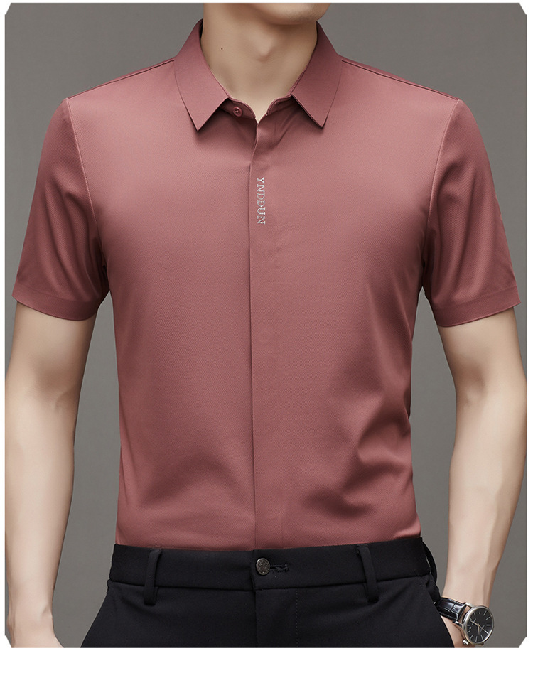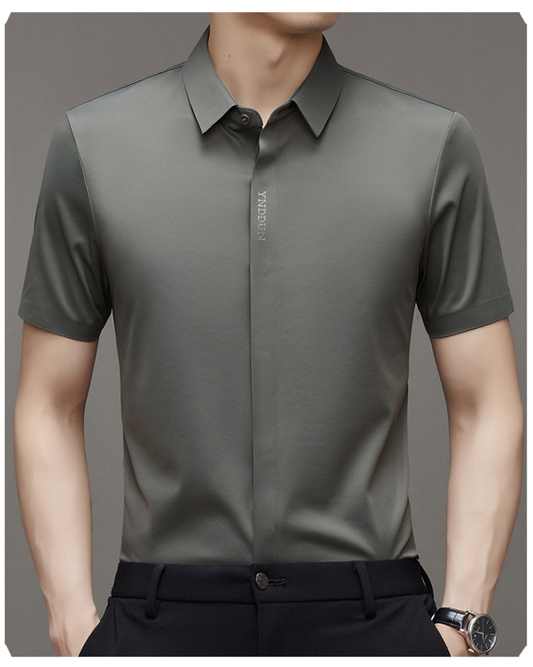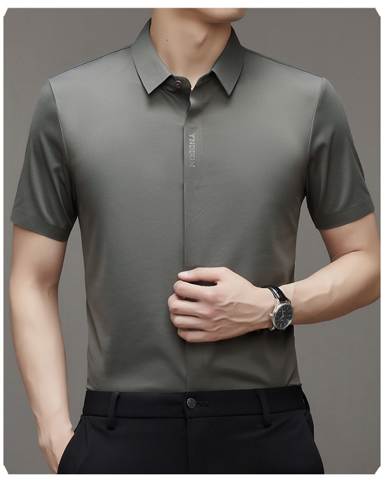 여름 원활한 아이스 실크 반팔 셔츠 남성용 얇은 새 셔츠 한국식 비즈니스 캐주얼 남성복