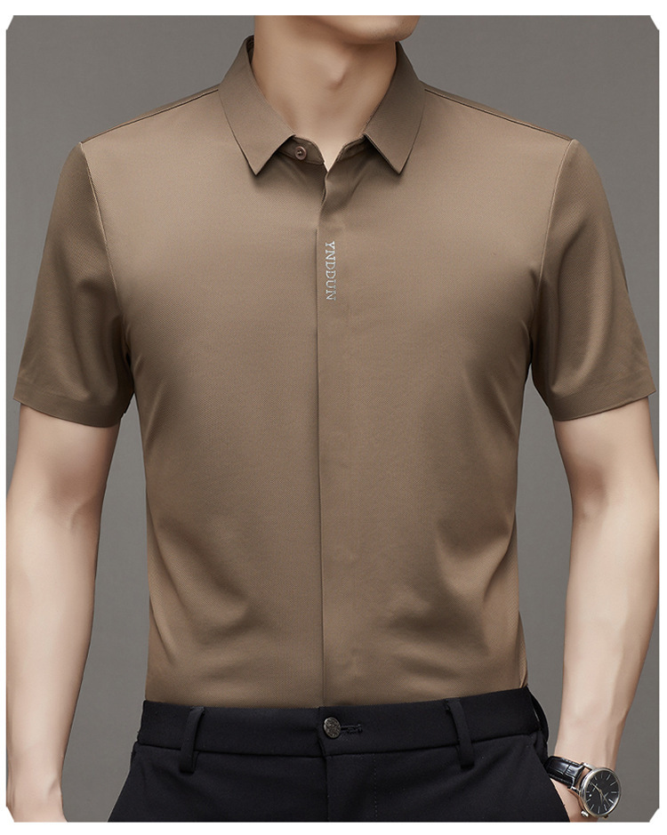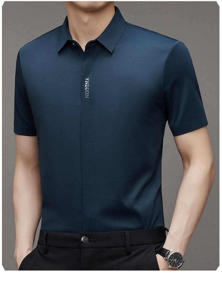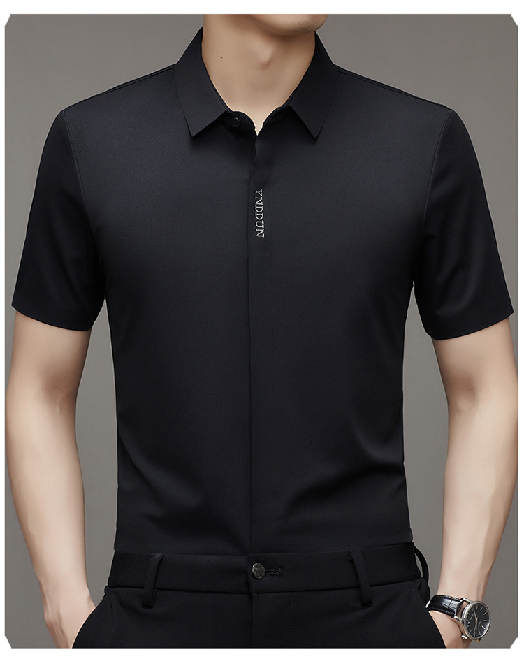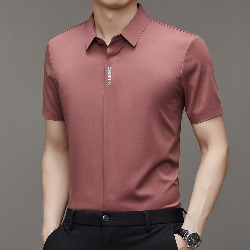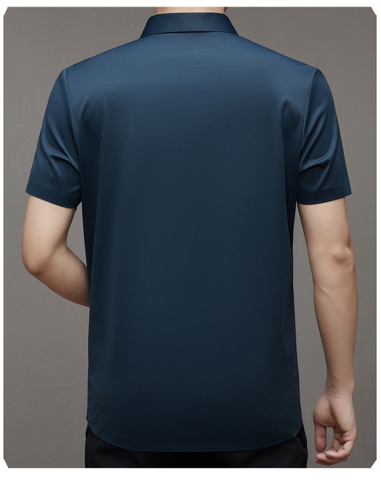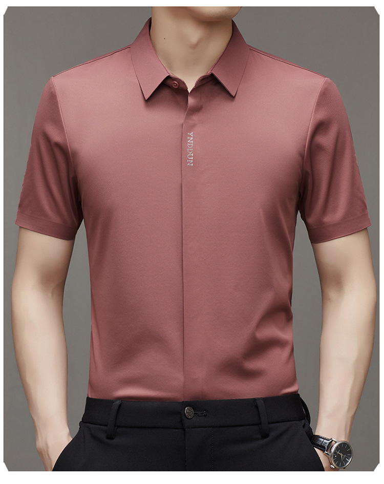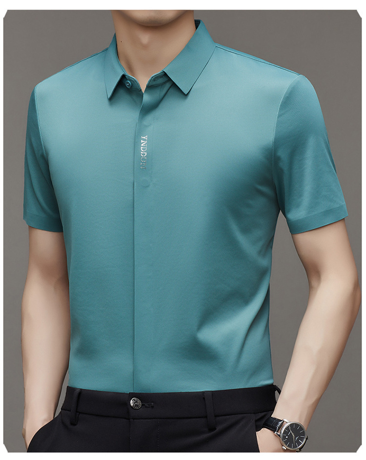 여름 원활한 아이스 실크 반팔 셔츠 남성용 얇은 새 셔츠 한국식 비즈니스 캐주얼 남성복