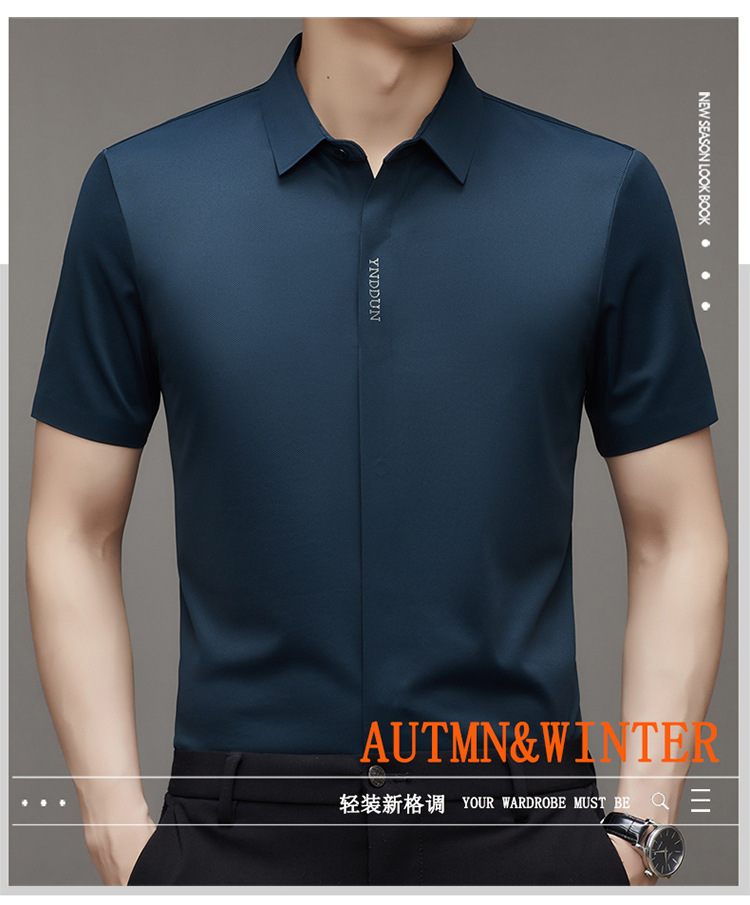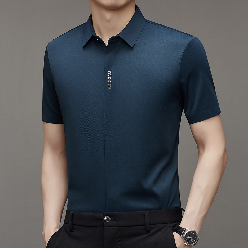 여름 원활한 아이스 실크 반팔 셔츠 남성용 얇은 새 셔츠 한국식 비즈니스 캐주얼 남성복스토어 가기