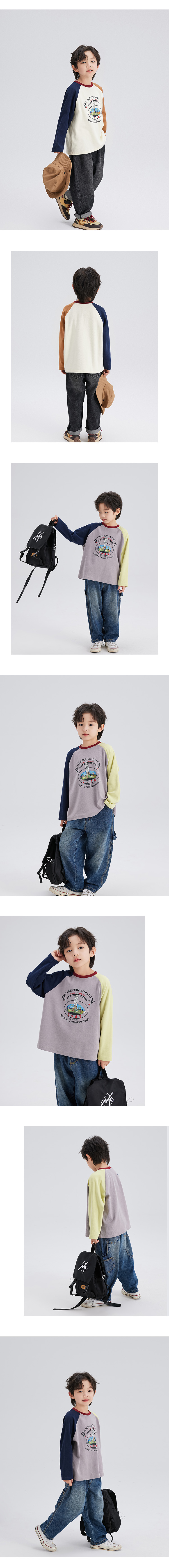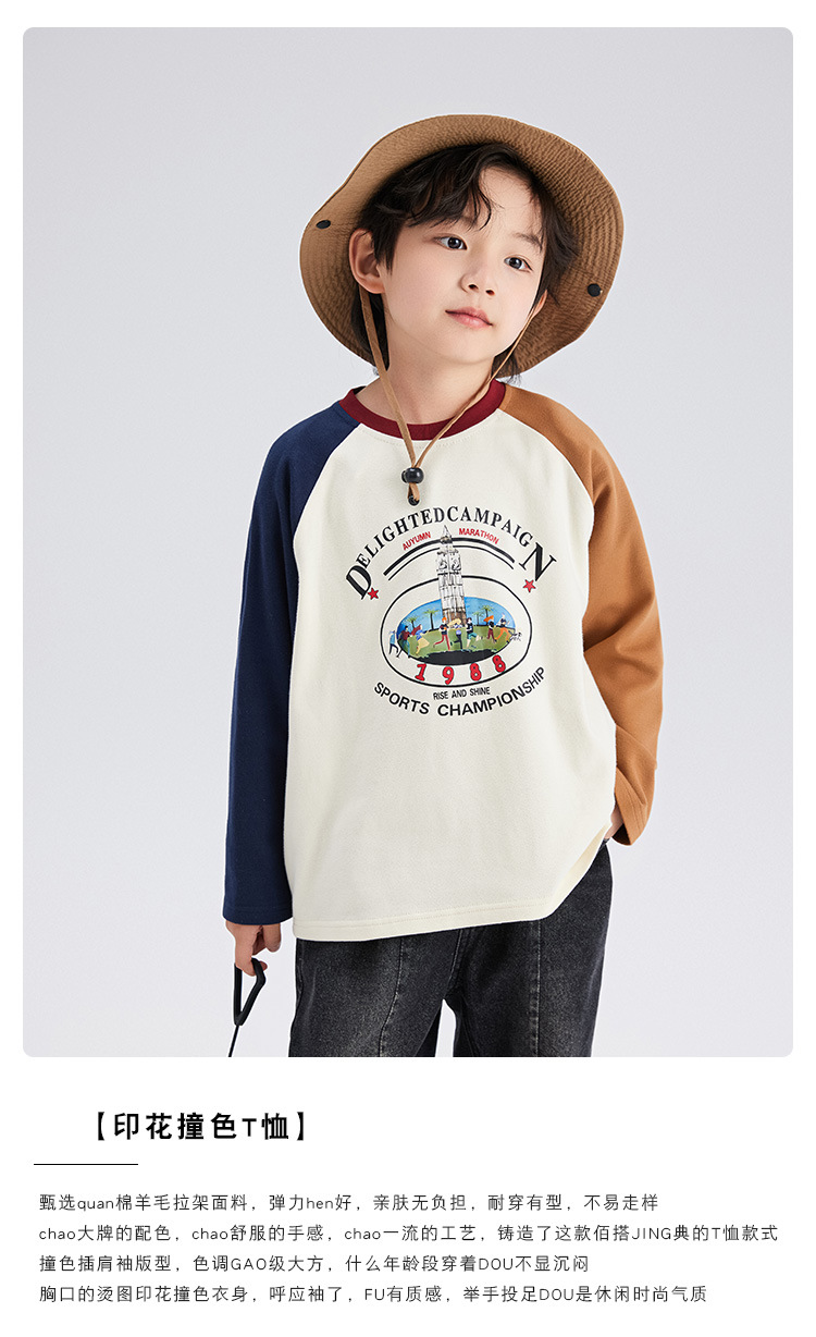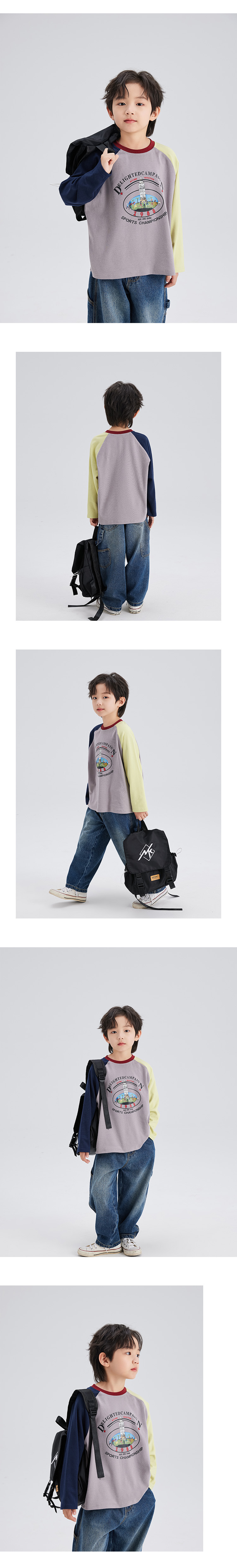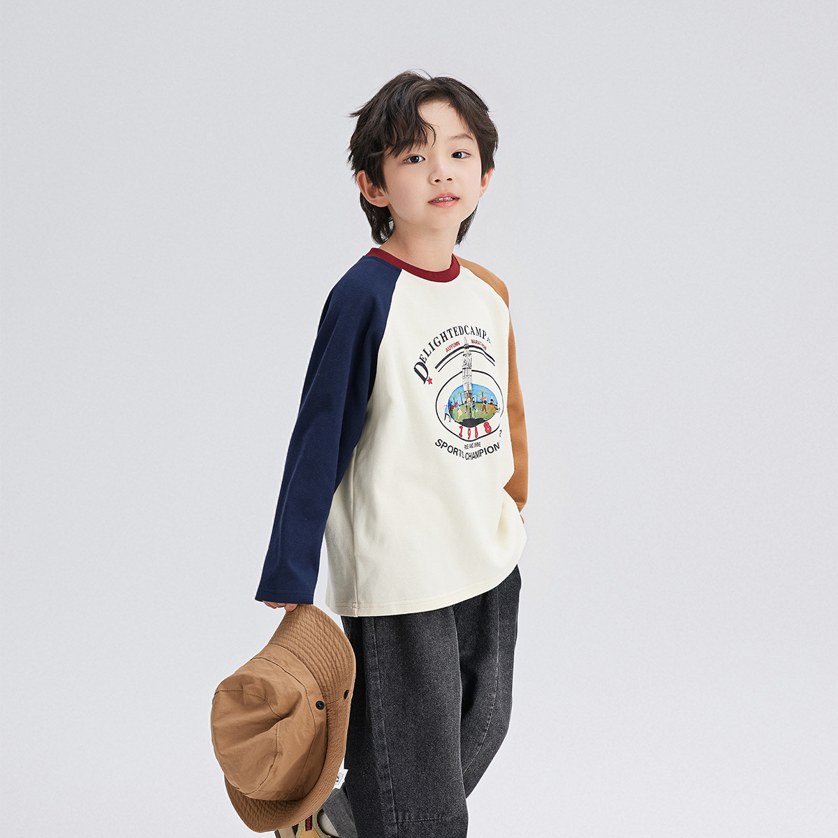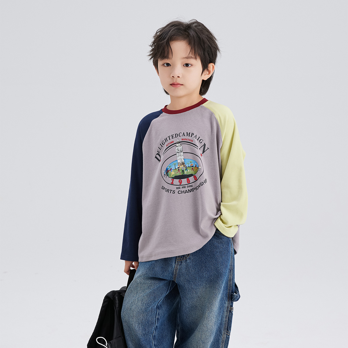 둥근 목 미국 긴팔 어린이 티셔츠 2024 봄 새로운 명암 컬러 레서리스 소년의 티셔츠 피부 친화적 인 부드럽고 편안한스토어 가기
