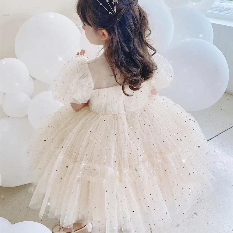 소녀 원피스 2023 봄과 여름 새로운 어린이 서양식 버블 슬리브 스퀸 스커트 아기 우아한 공주 스커트