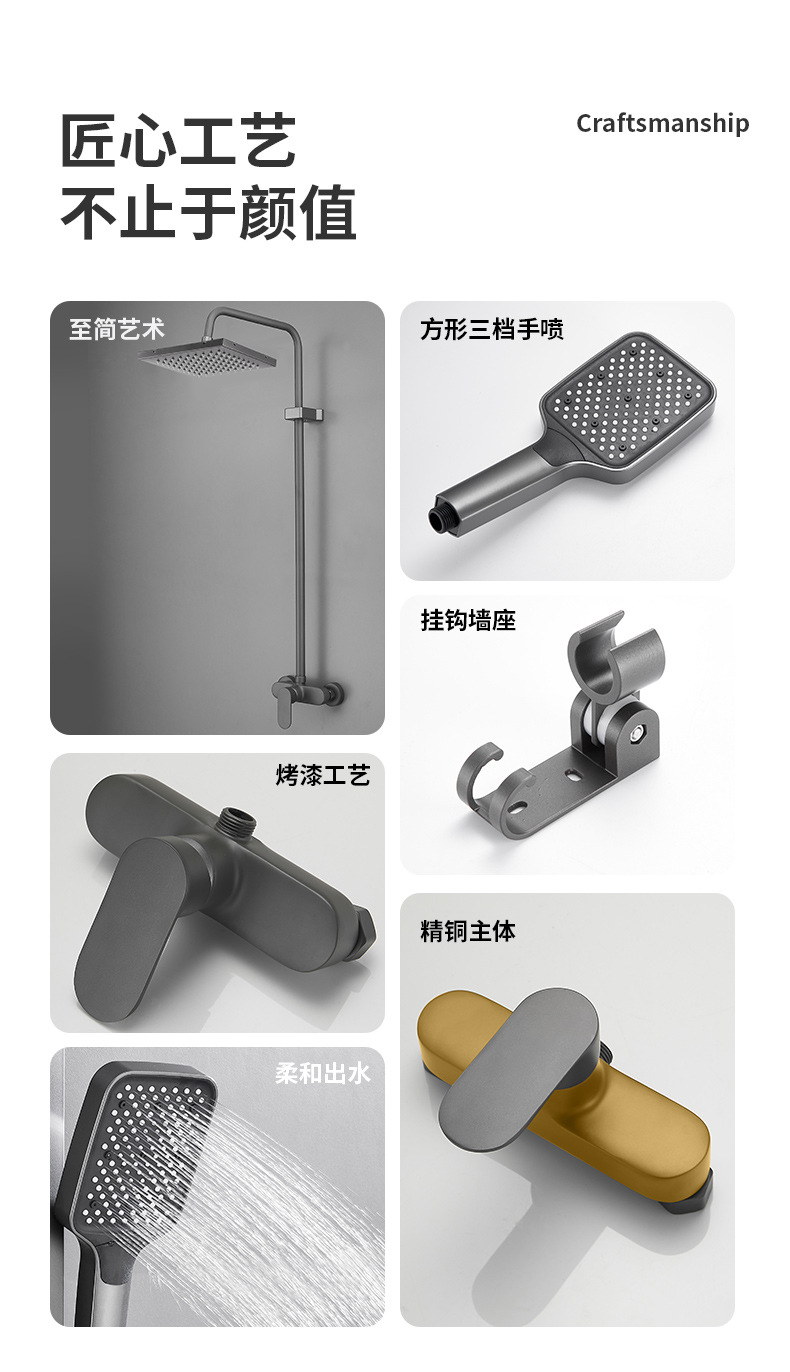 총 회색 욕실 샤워 리프팅 샤워 욕조 프로젝트 차갑고 뜨거운 비 샤워 세트 모든 구리 수도꼭지스토어 가기