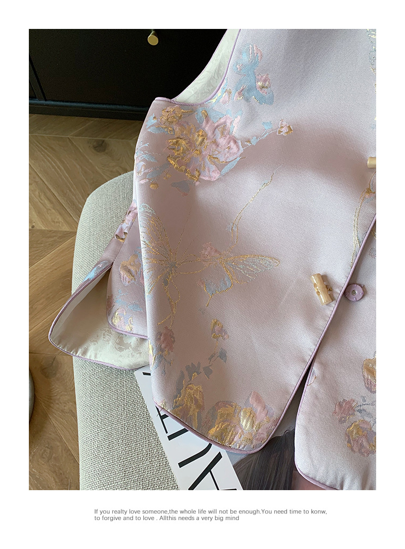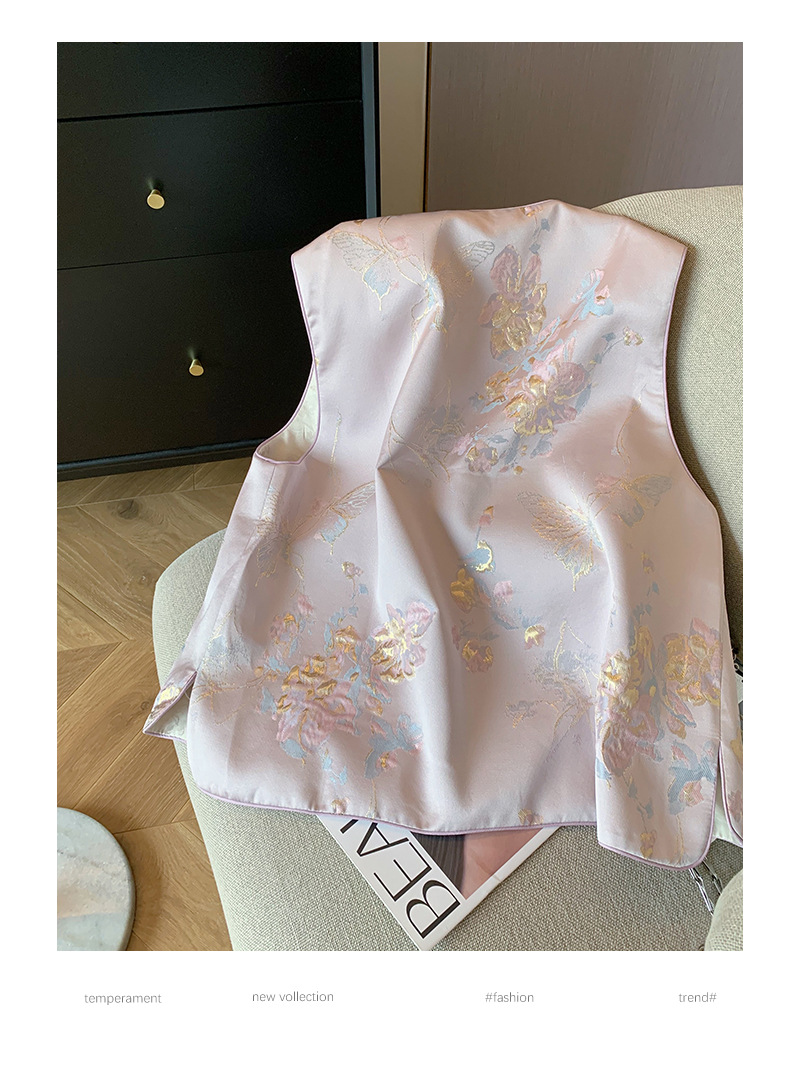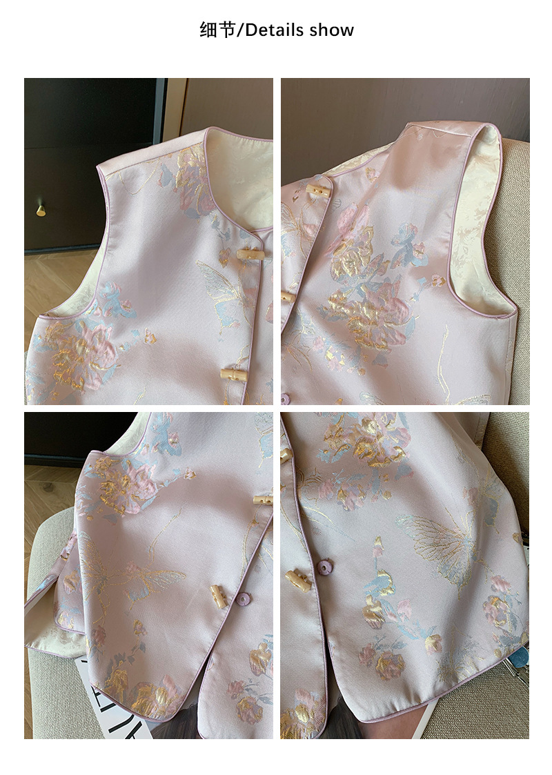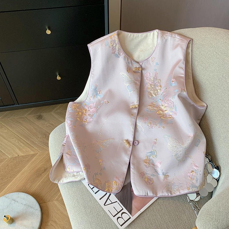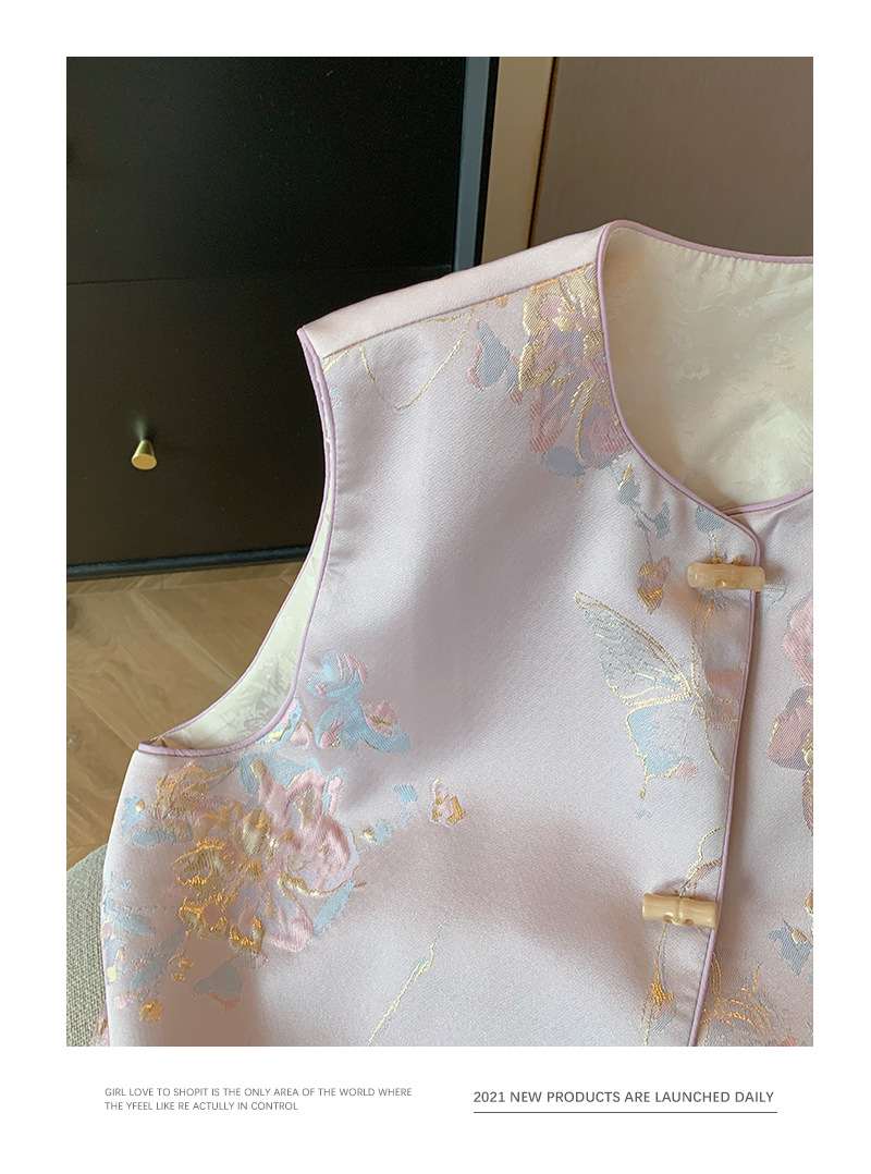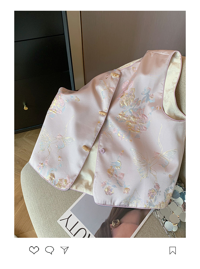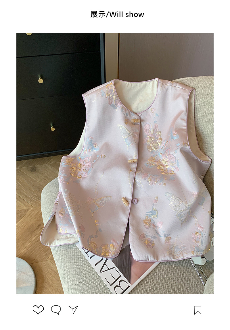 핑크색 신중국풍 자수 라운드넥 단추 조끼 2025 여성 봄여름 고급스러운 여성스러운 무소매 조끼스토어 가기
